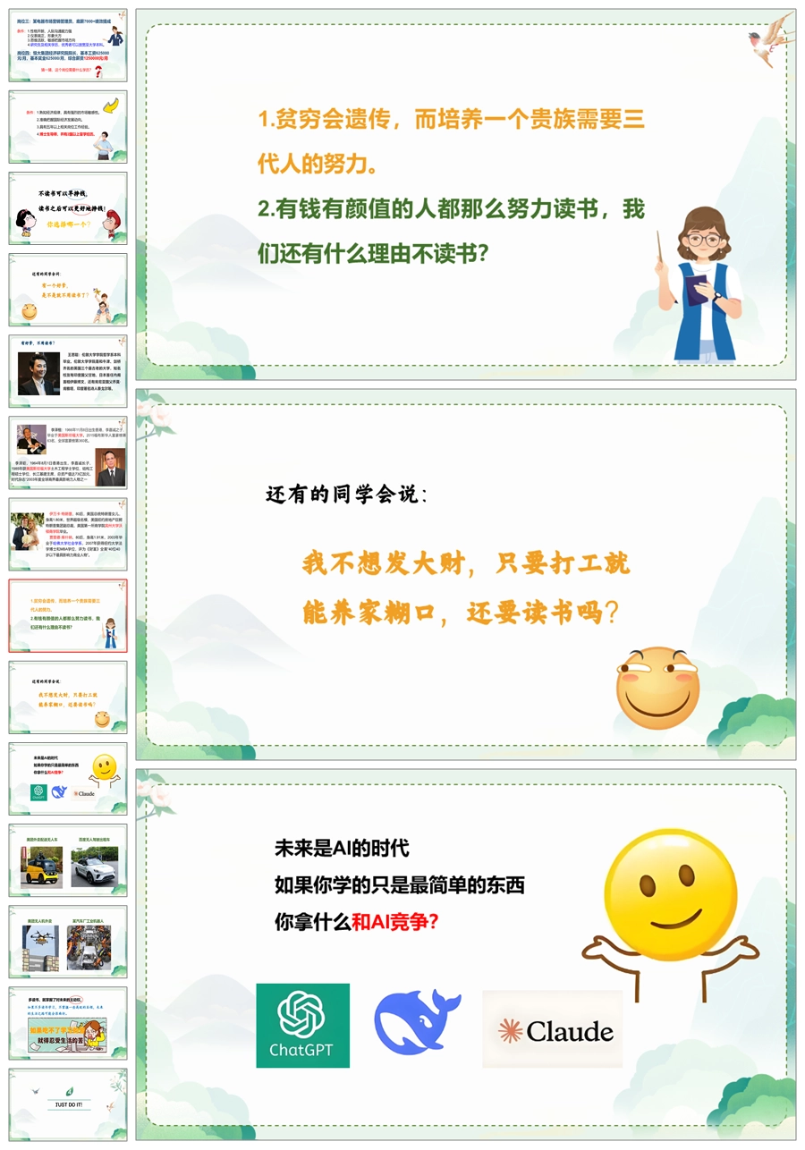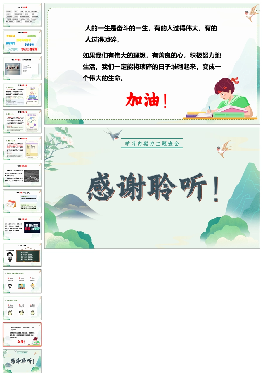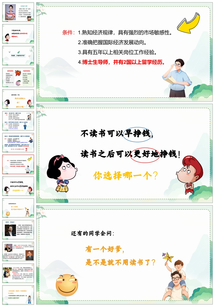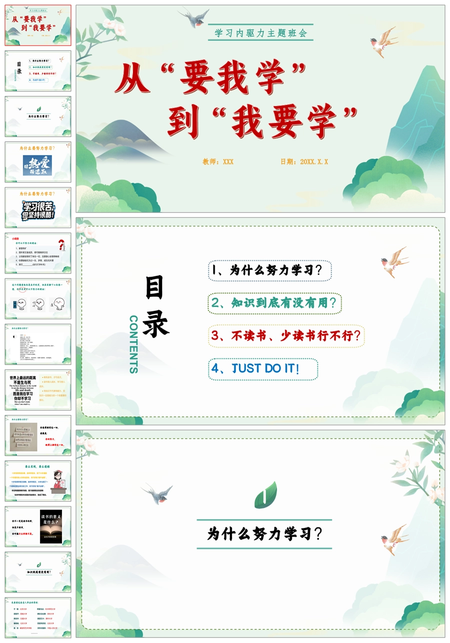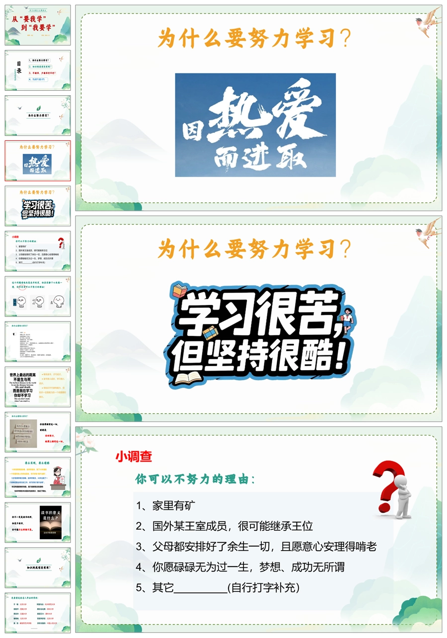 【5541】《读书的意义-从要我学到我要学》励志教育主题班会PPT课件+发言稿