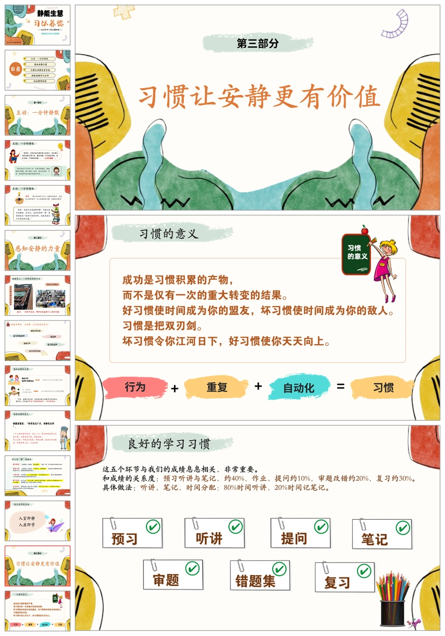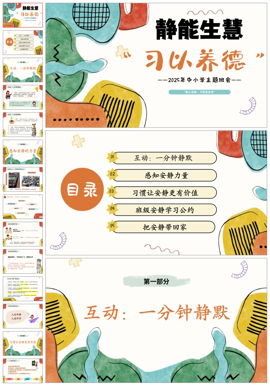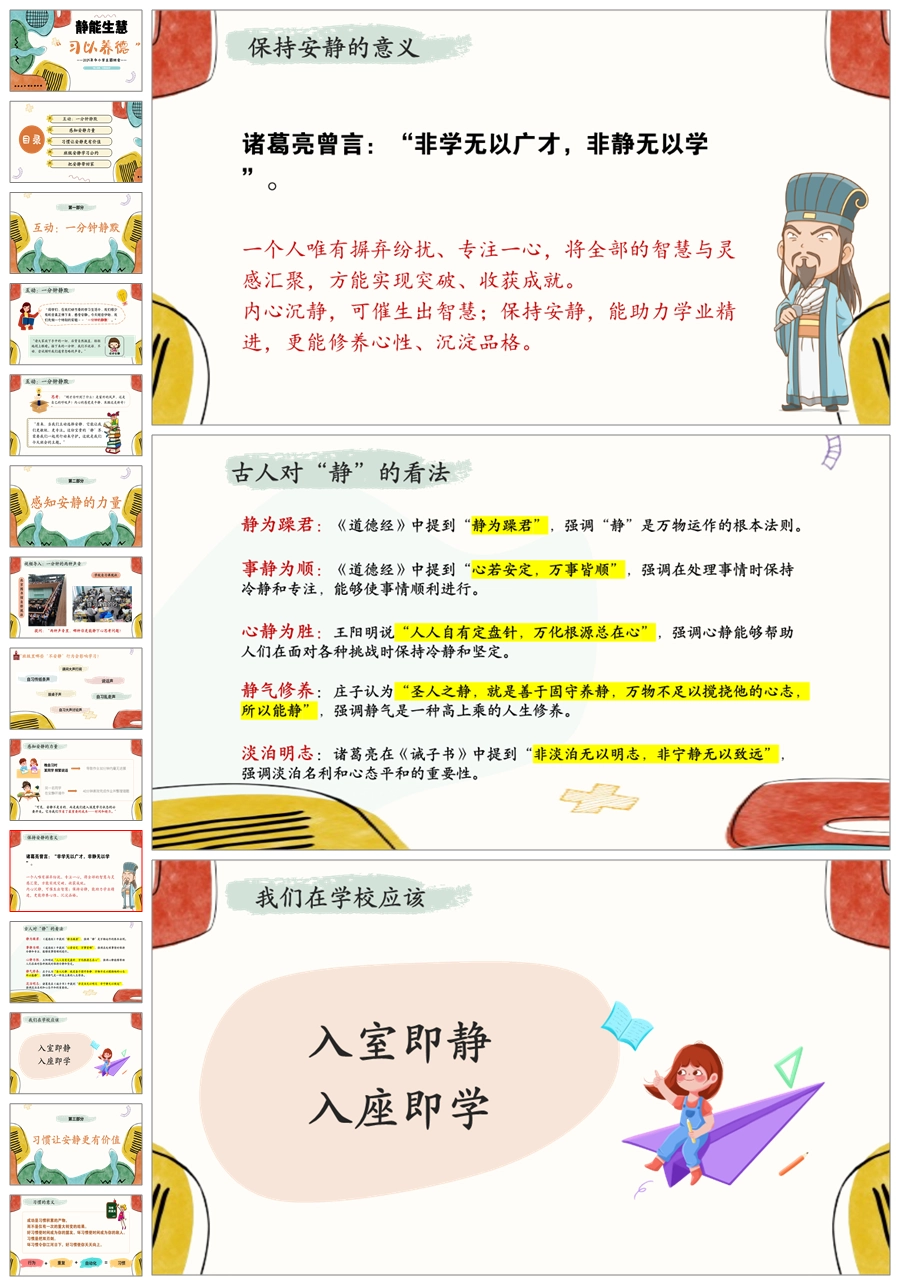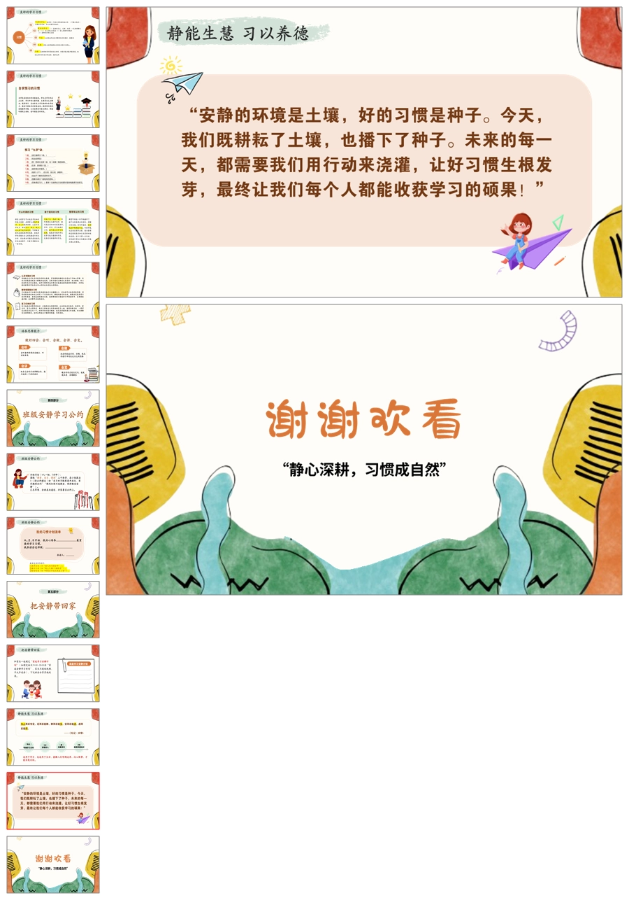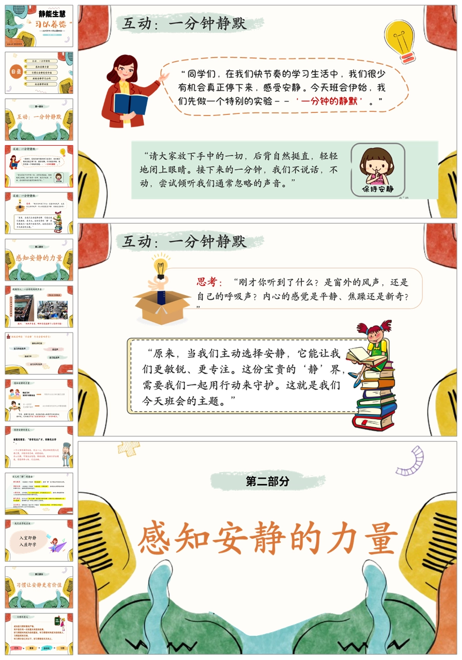 【5550】《静能生慧 习以养德 安静的力量》中小学习惯培养主题班会PPT课件+教案