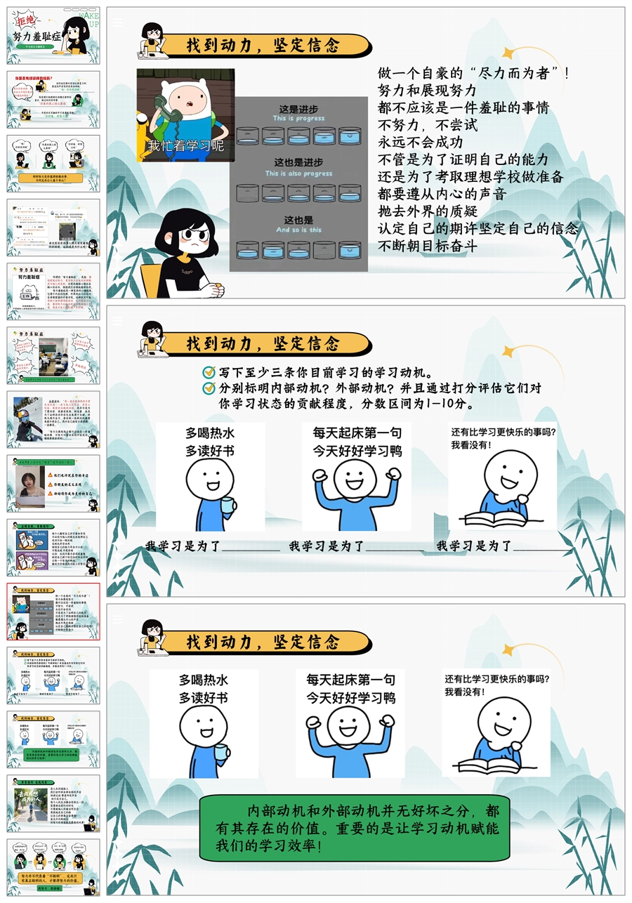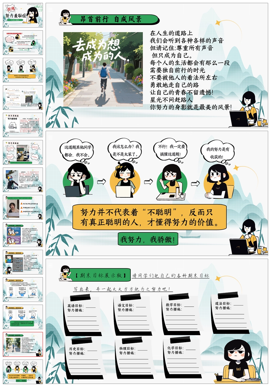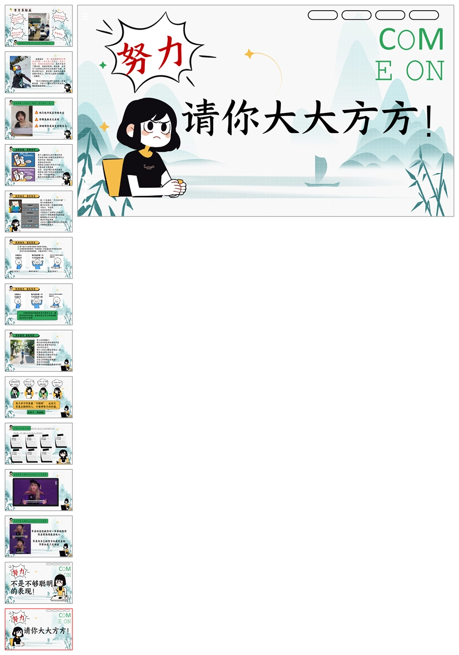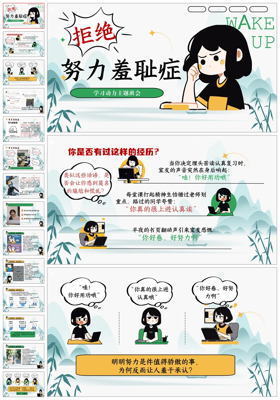 【5553】《拒绝努力羞耻症(卡通绿)》学习动力主题班会PPT课件+教案+视频