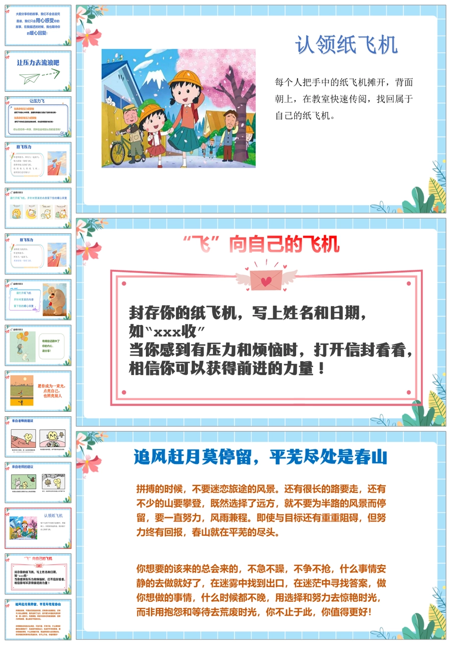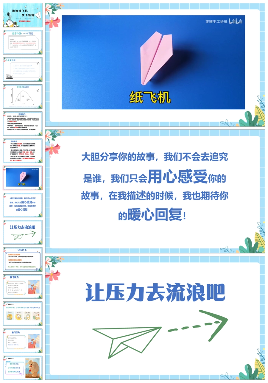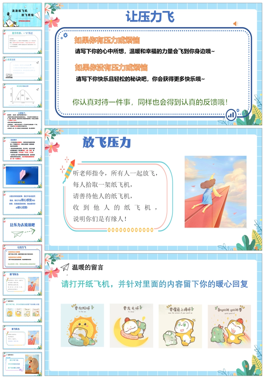 【5556】《流浪纸飞机 放飞烦恼》心理健康PPT课件+视频+发言稿