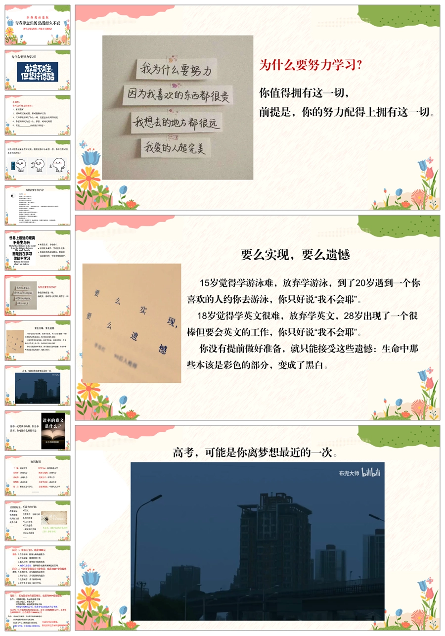 【5559】《青春肆意张扬,热爱经久不衰》励志教育主题班会PPT课件+发言稿