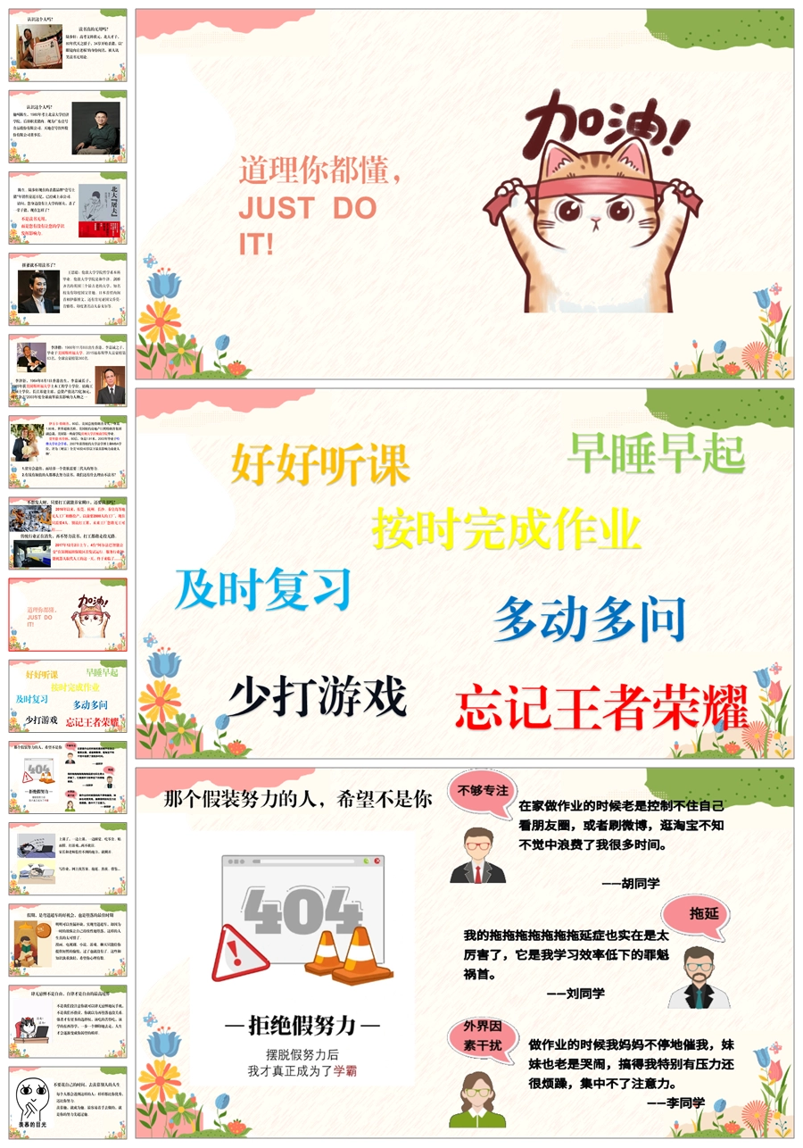 【5583】《自习的静成长的劲》竹子定律班会励志主题班会PPT课件+发言稿