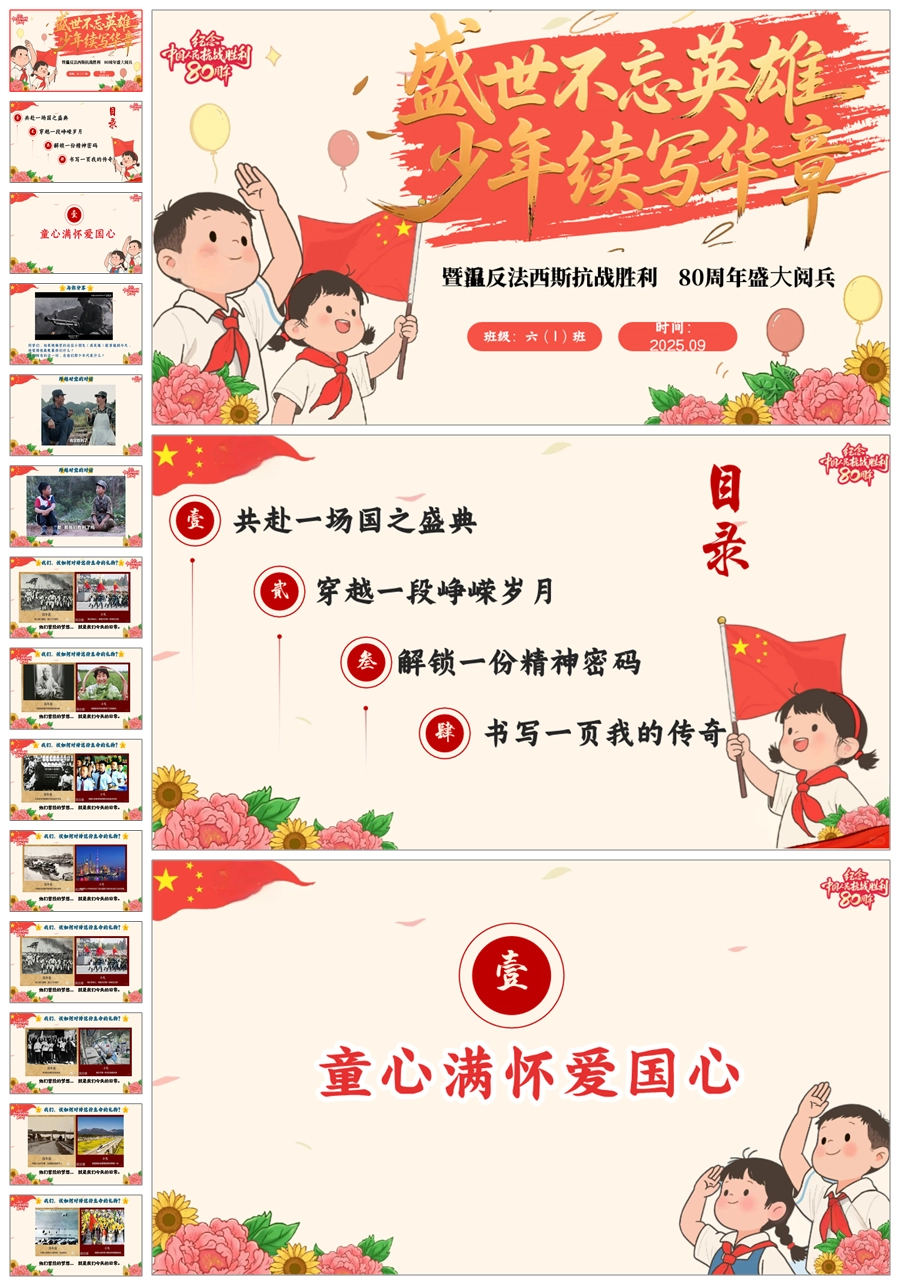 【5560】《盛世不忘英雄》爱国主义教育主题班会PPT课件+教案+视频
