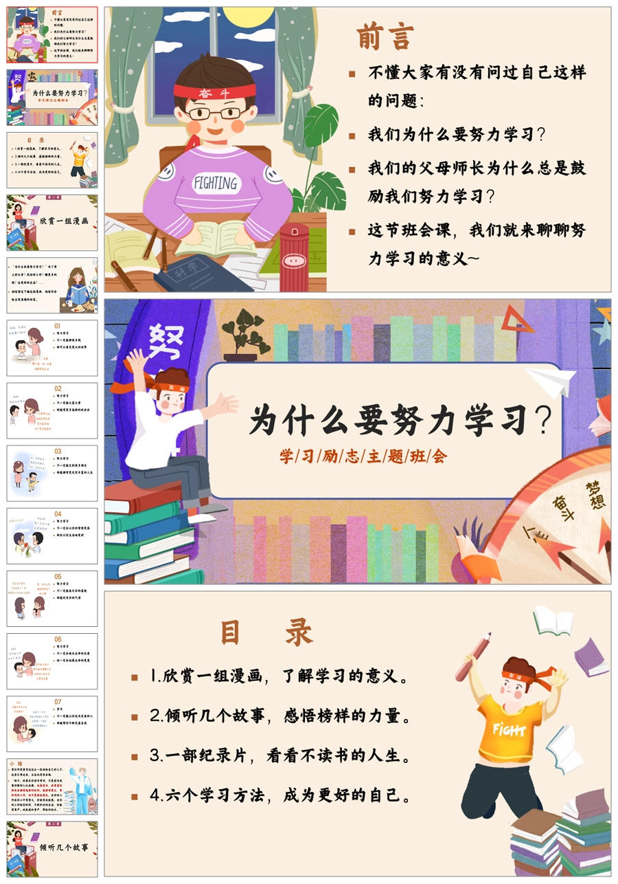 【5562】《为什么要努力学习》学习励志主题班会PPT课件+视频+发言稿