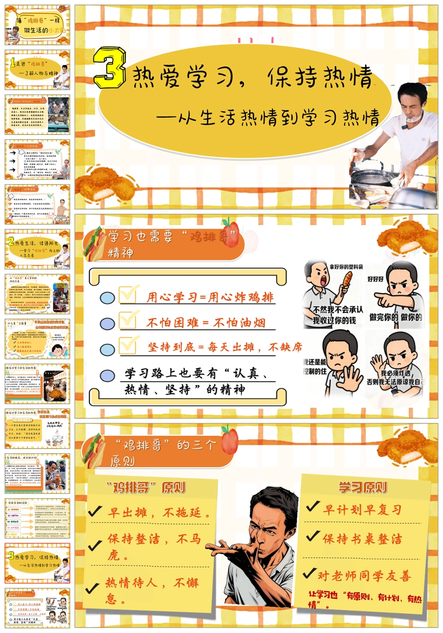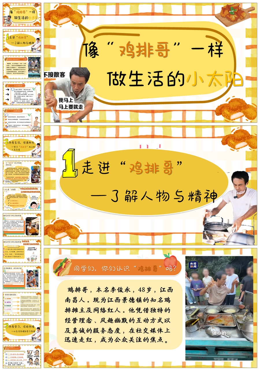 【5565】《像鸡排哥一样,做生活的小太阳》励志主题班会PPT课件+教案+发言稿