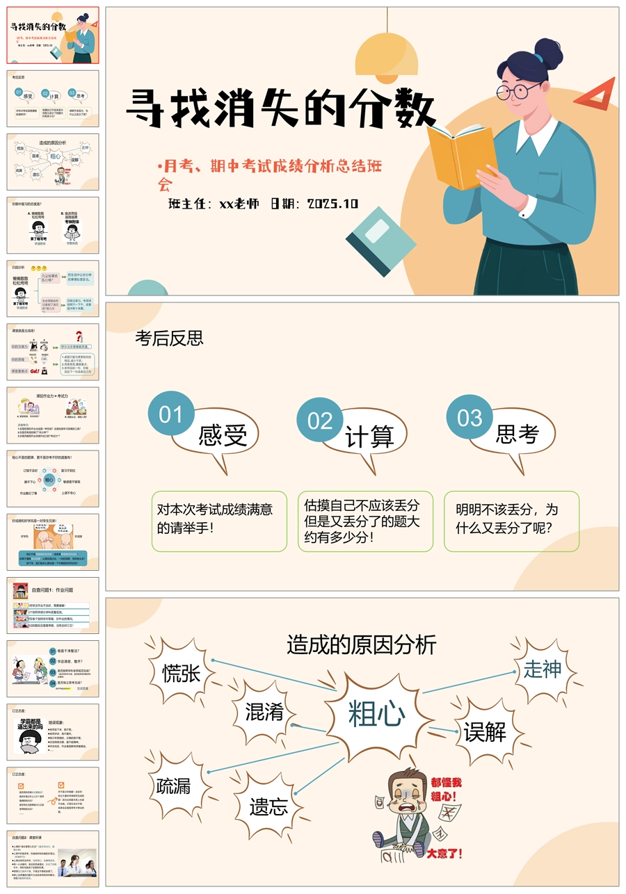 【5569】《寻找消失的分数》月考期中考试成绩分析总结班会PPT课件+发言稿