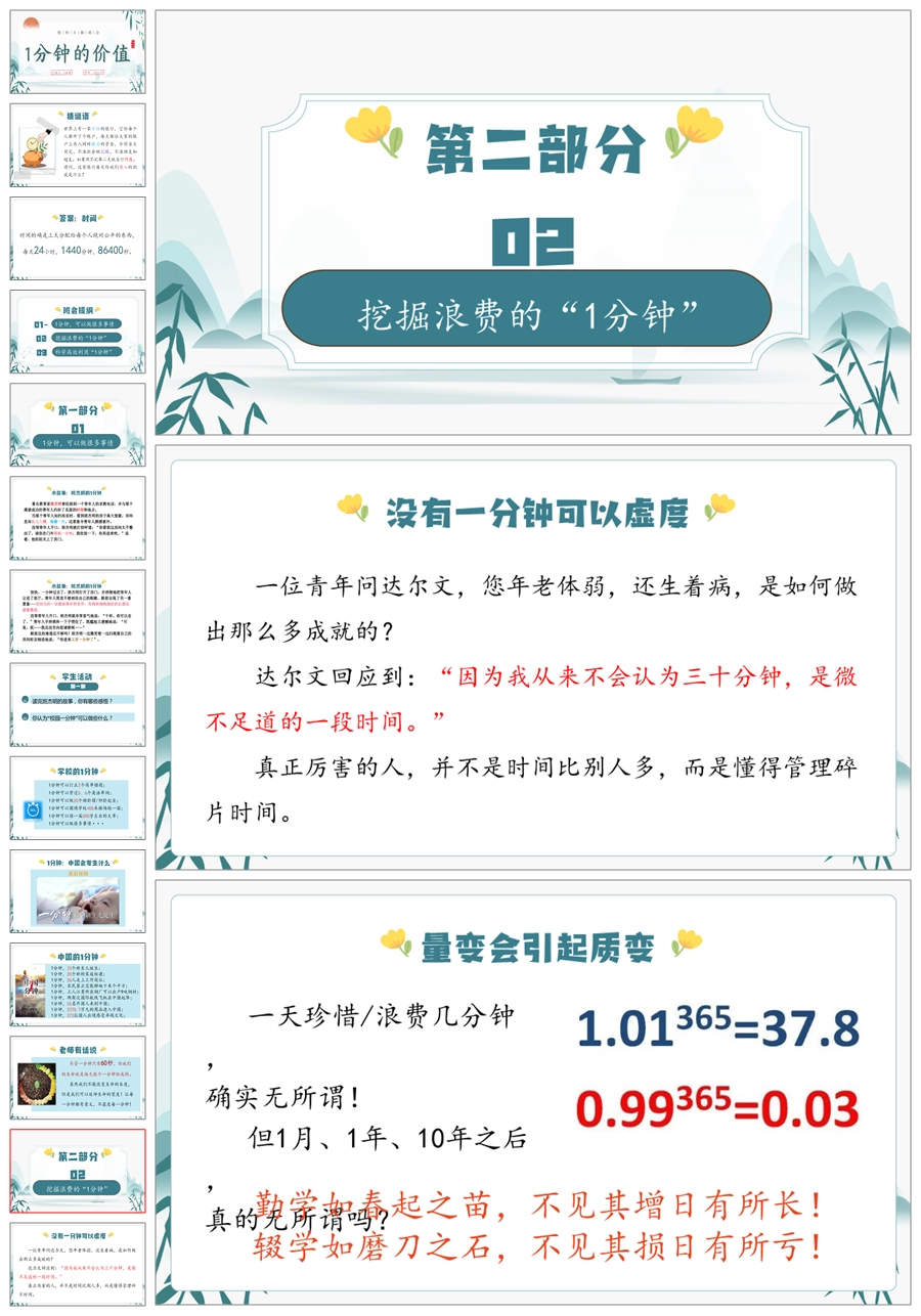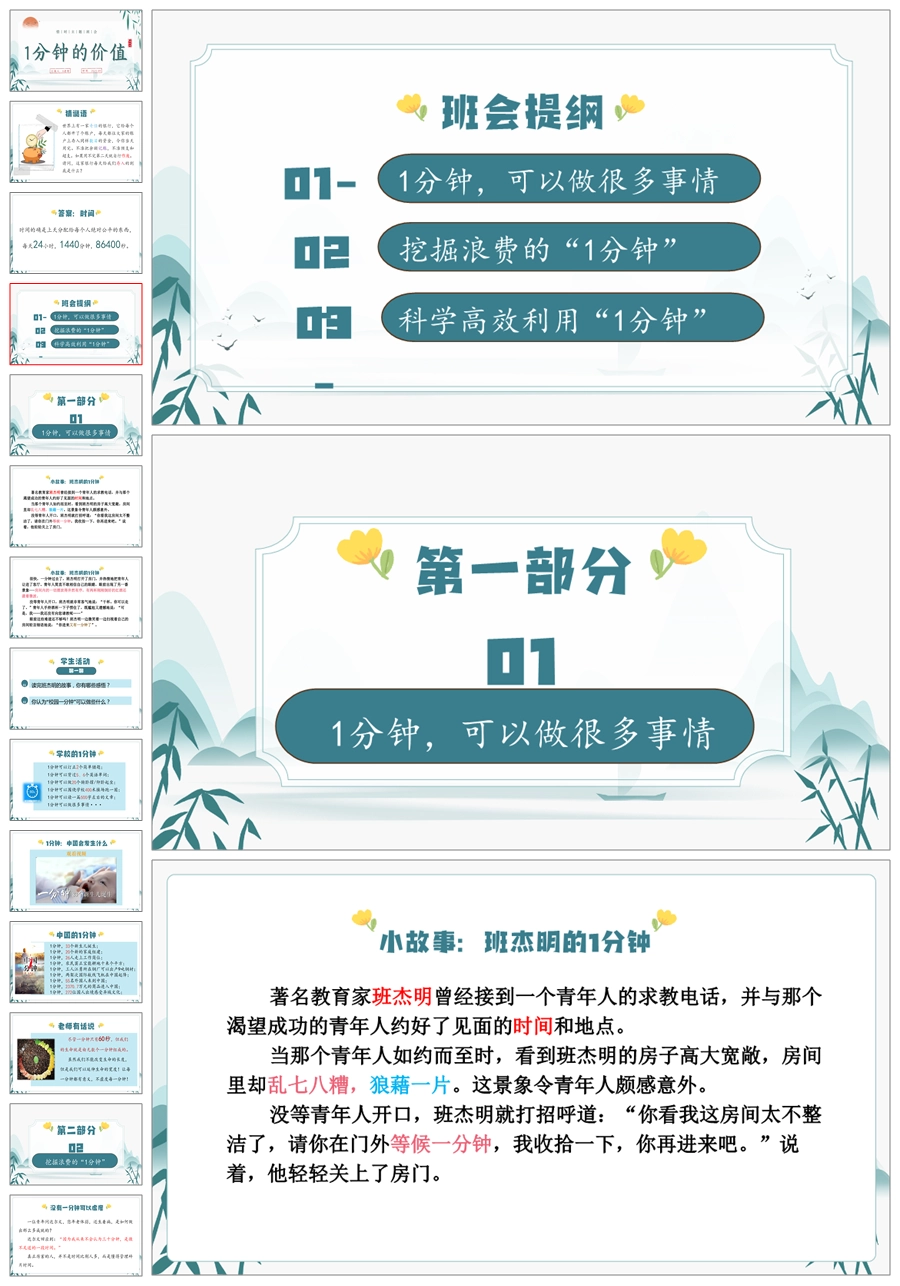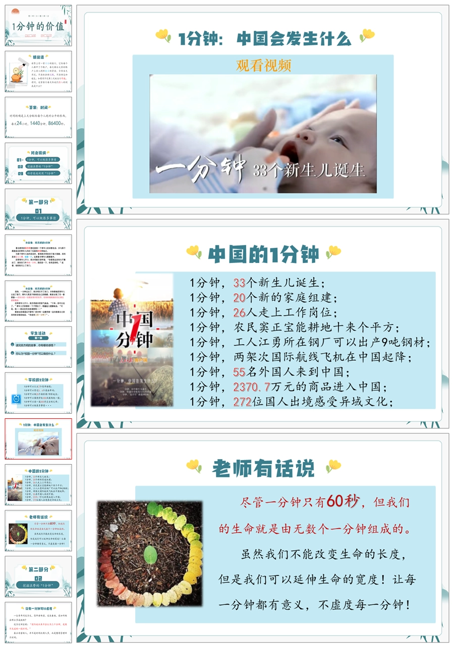 【5571】《一分钟的价值》惜时班会珍惜时间PPT课件+教案+视频