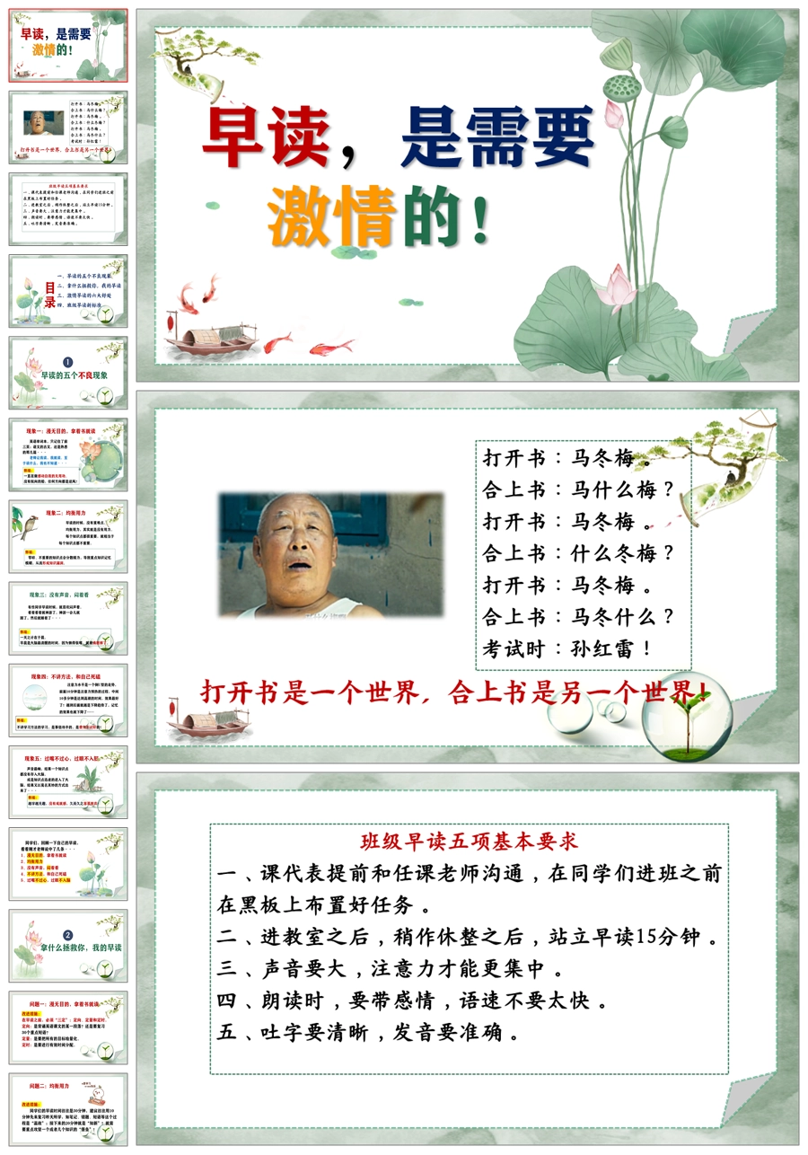 【5575】《早读是需要激情的》主题班会PPT课件+教案