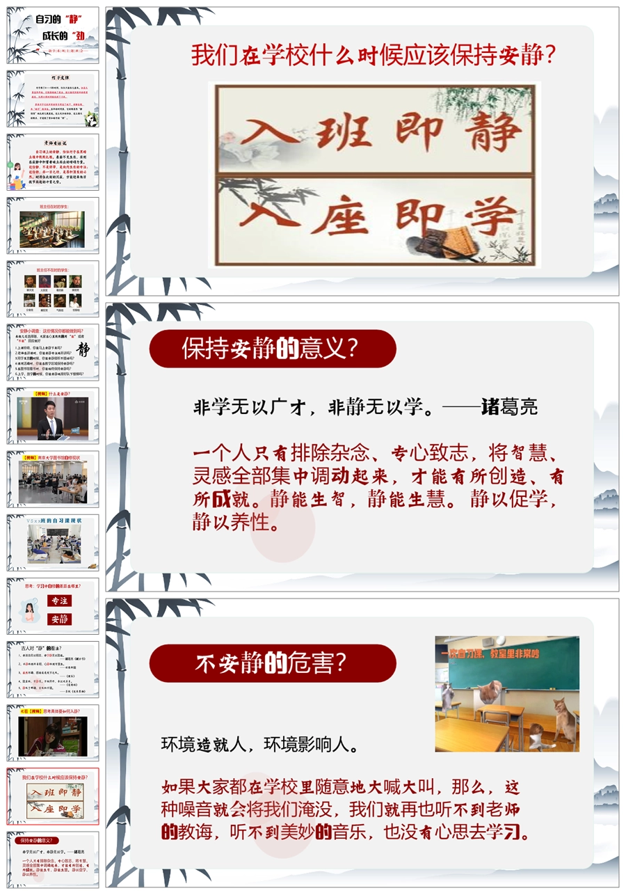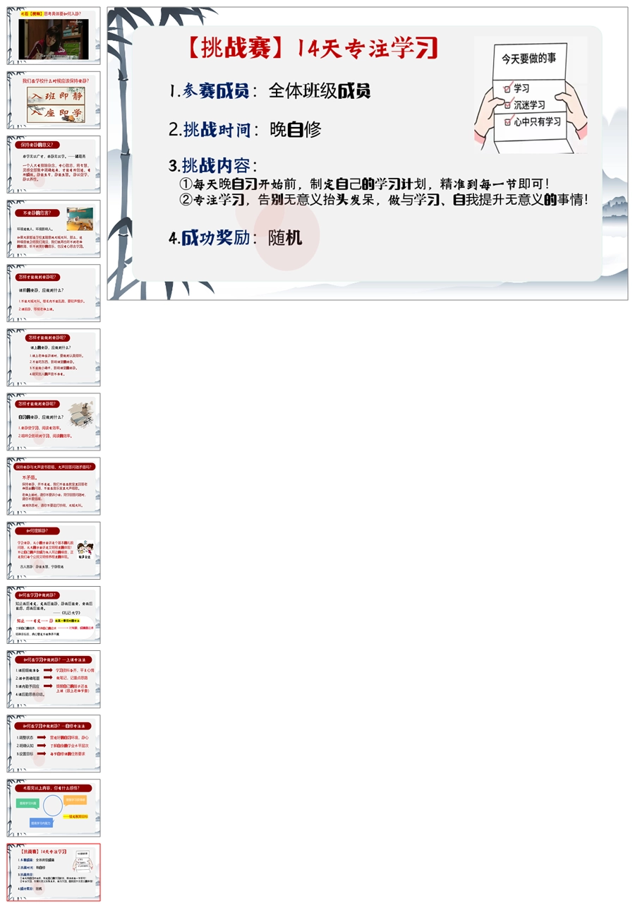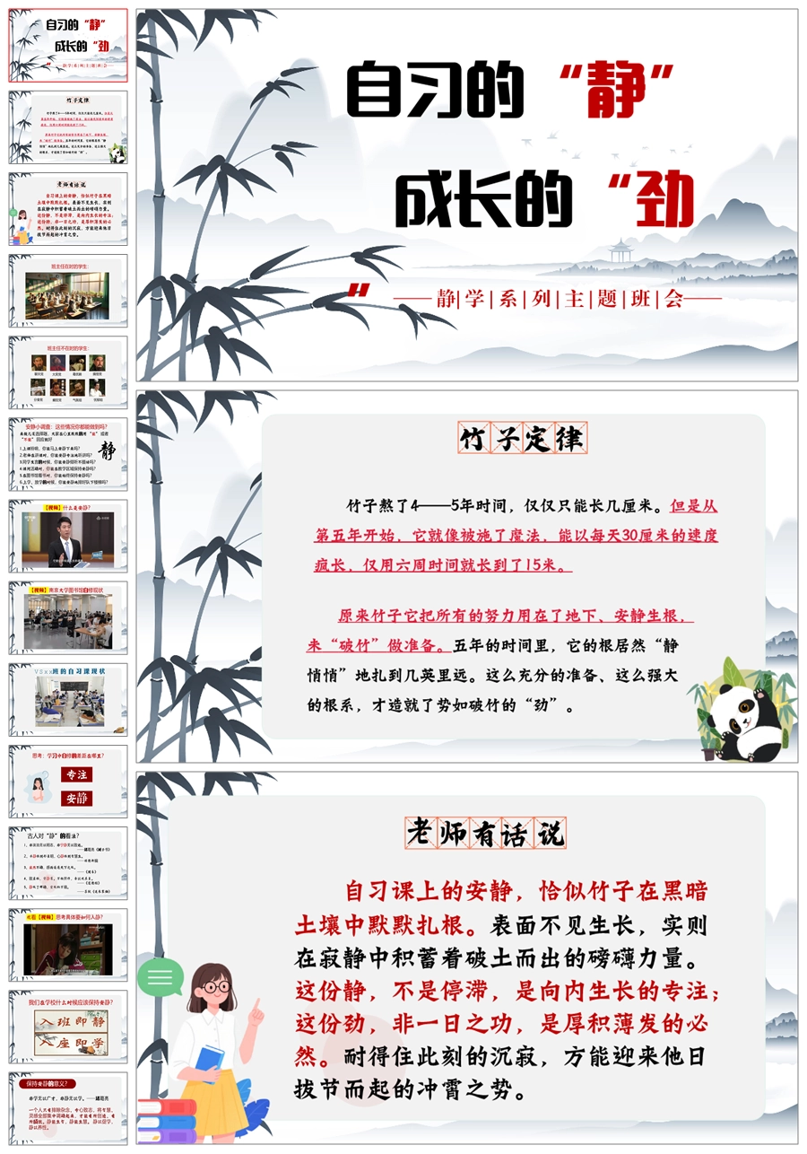 【5583】《自习的静成长的劲》竹子定律班会励志主题班会PPT课件+发言稿