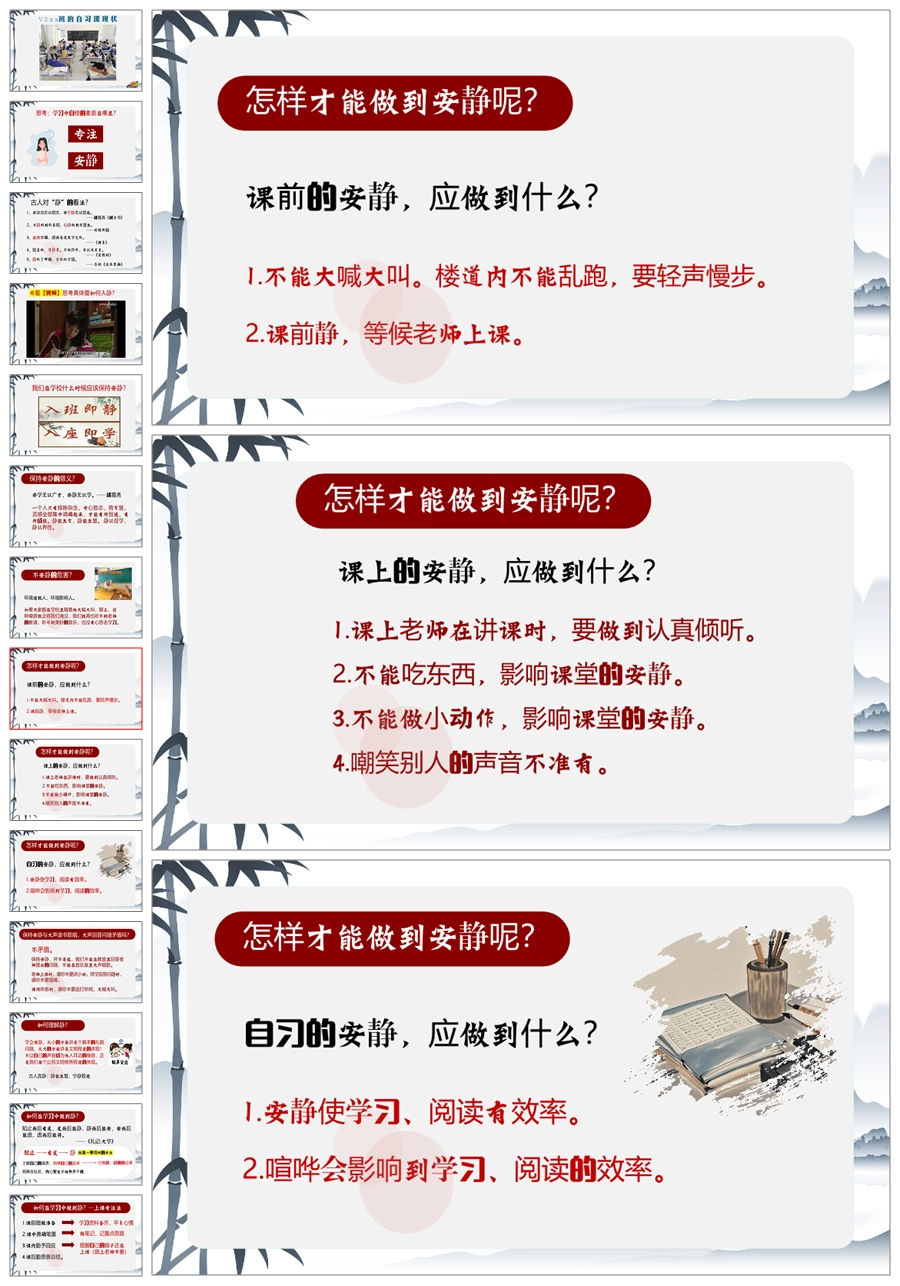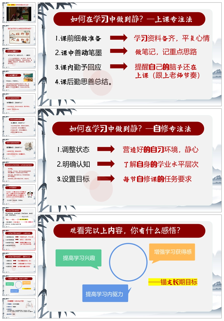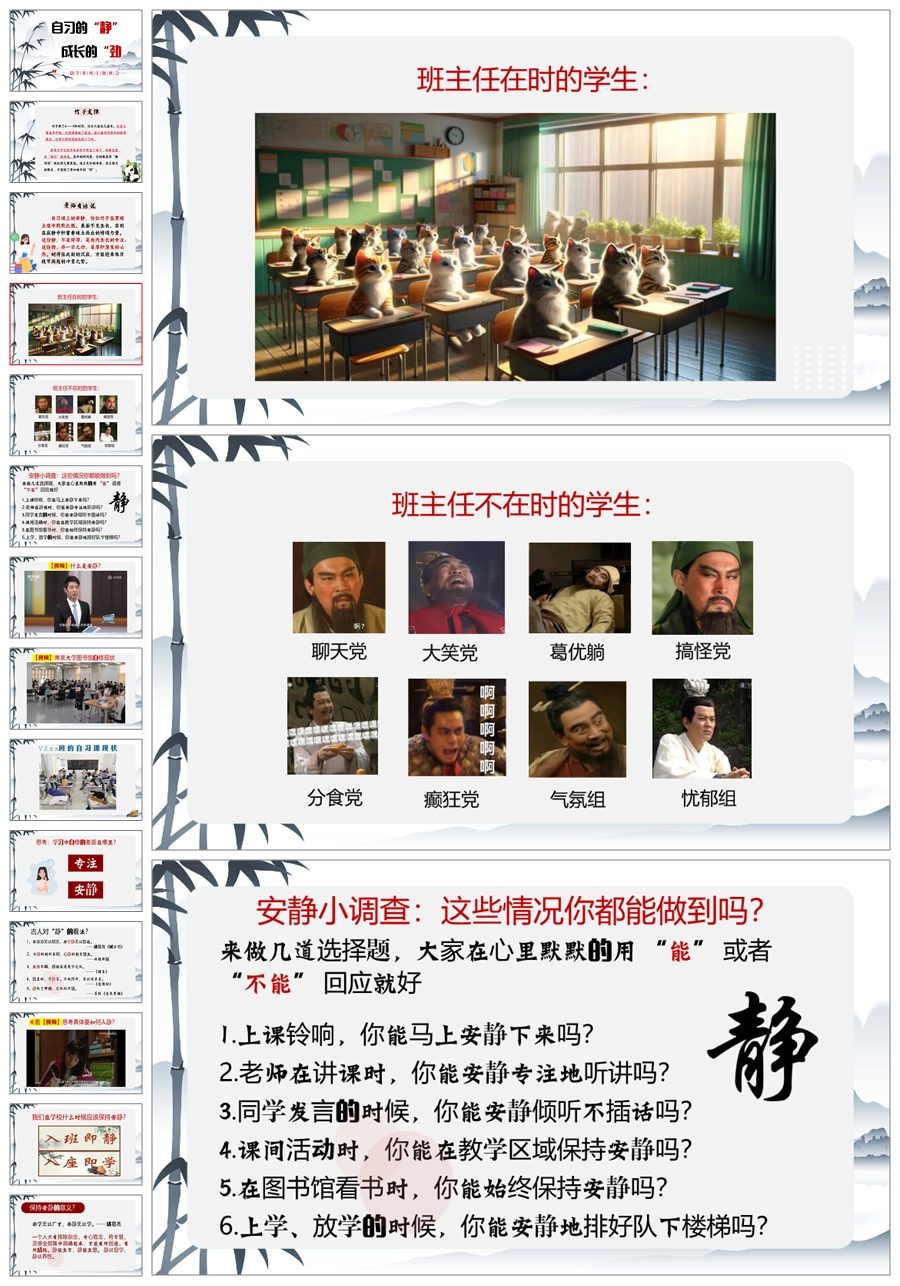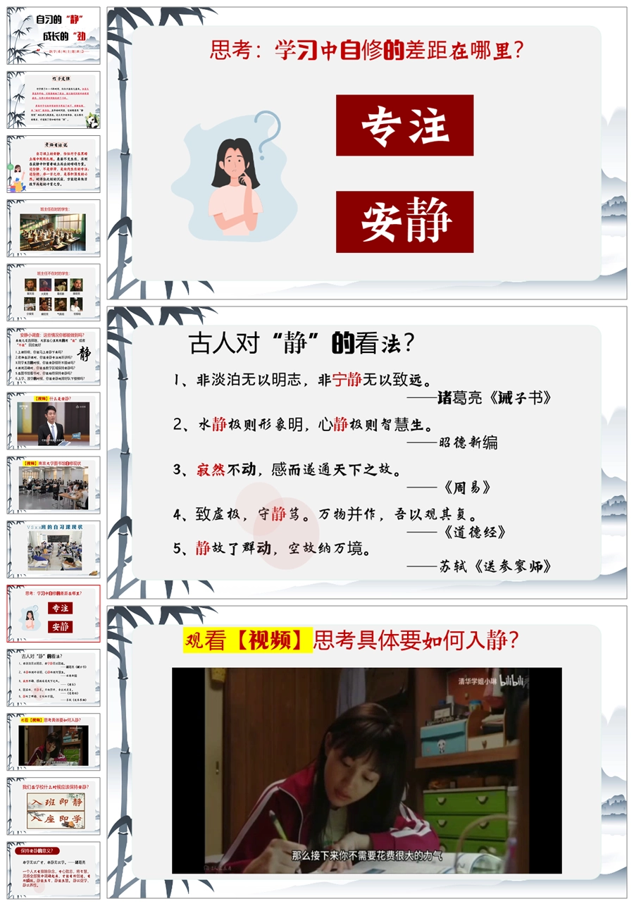 【5583】《自习的静成长的劲》竹子定律班会励志主题班会PPT课件+发言稿