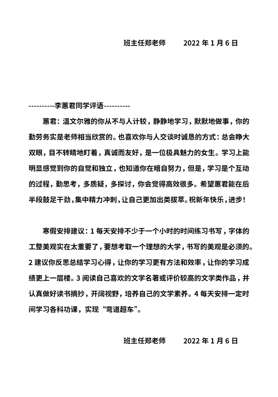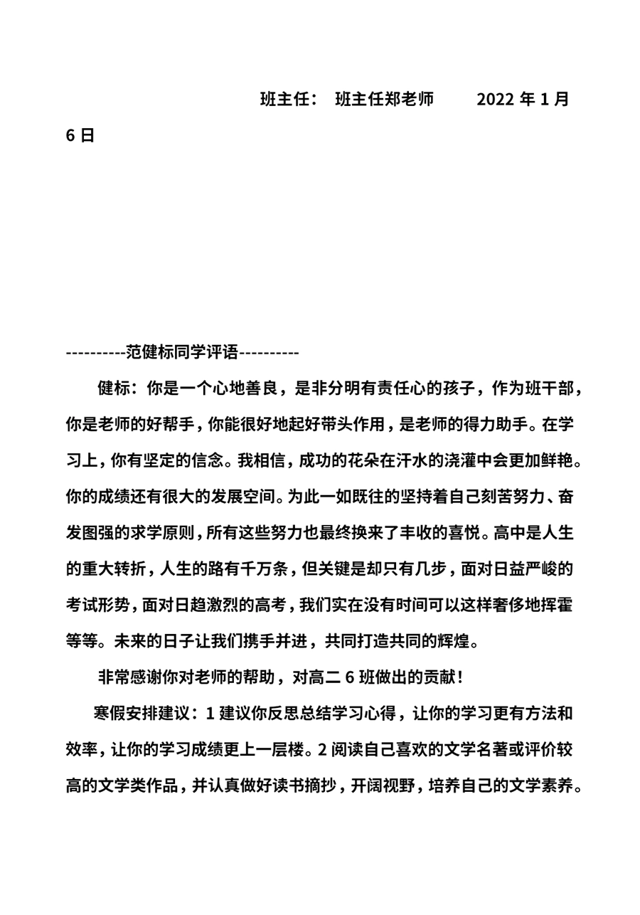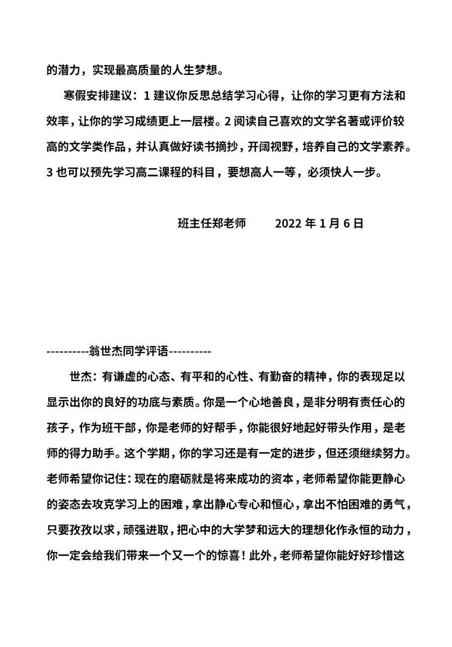【1007】高中学生期末评语高二学生评语文采版(54页)