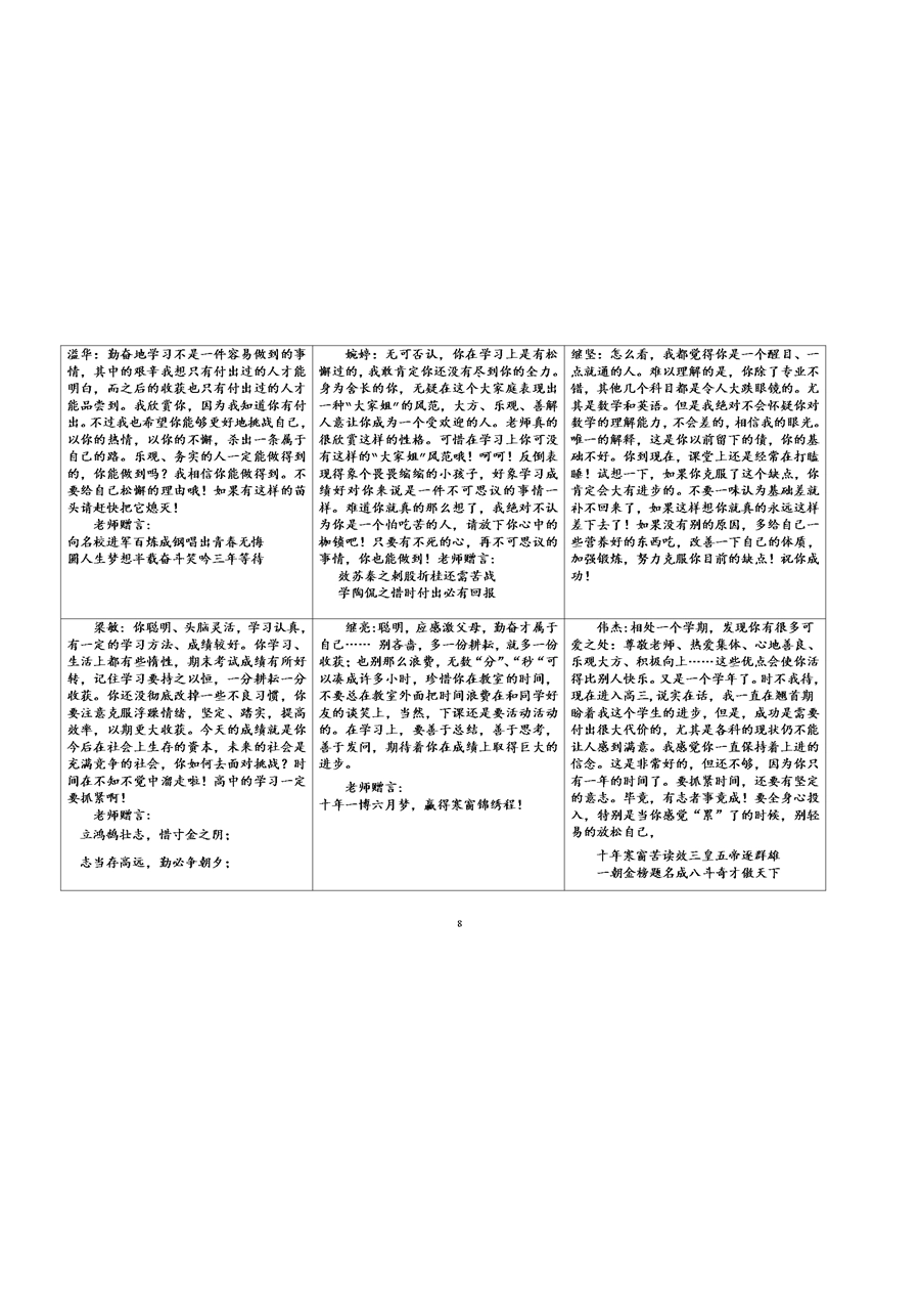 【1009】高中学生期末评语高三学生评语 文采版含赠言(9页)