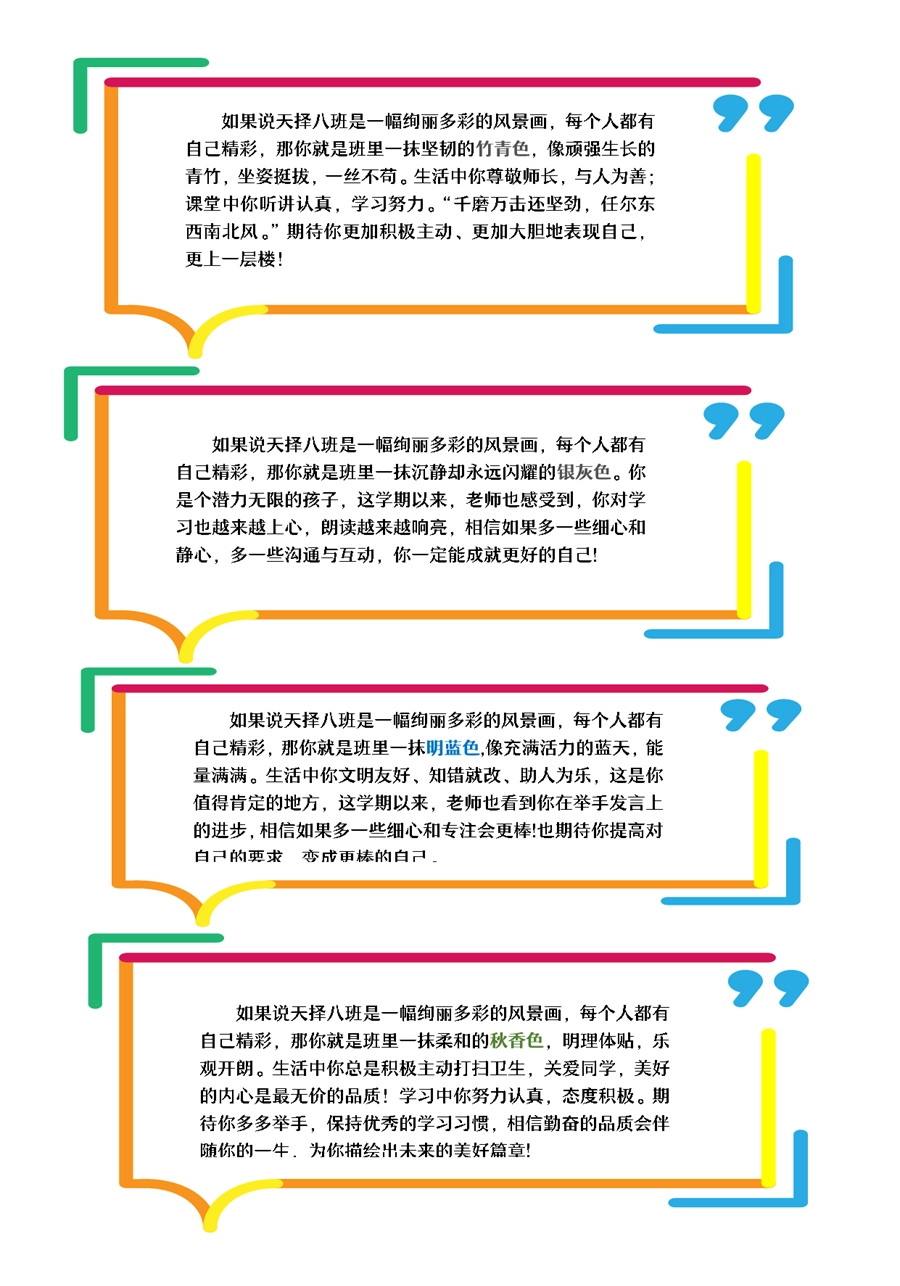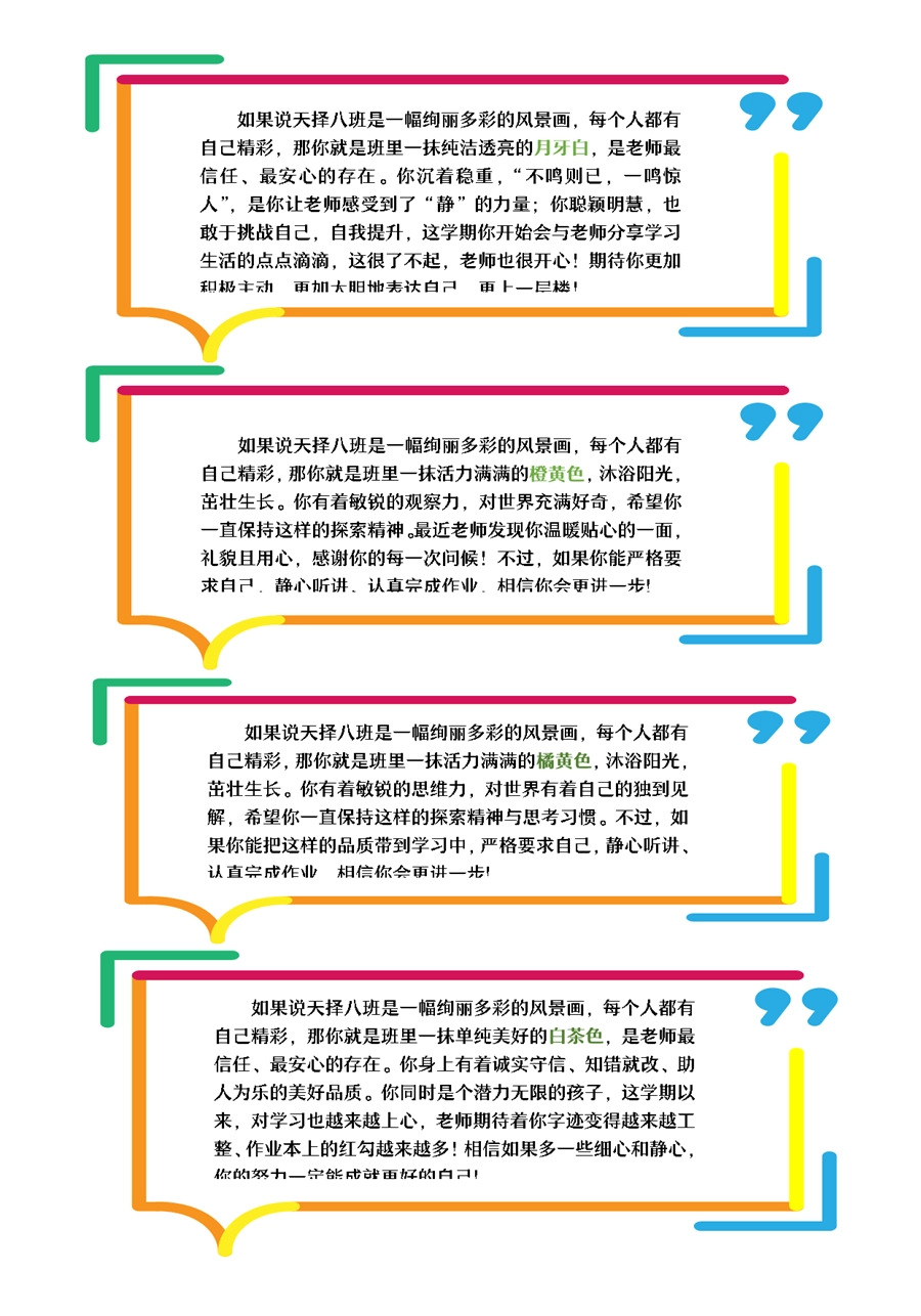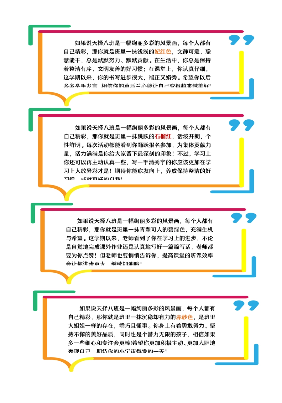 【1021】期末学生评语【期末评语3】中国传统颜色第二弹