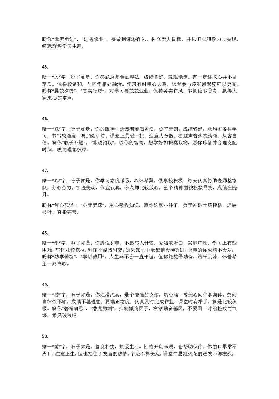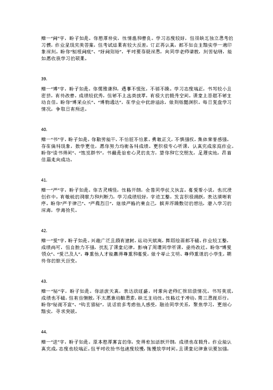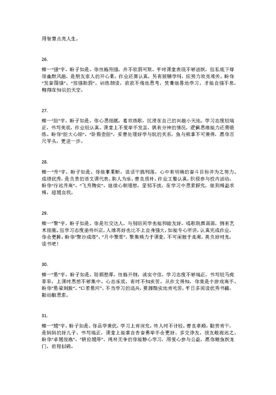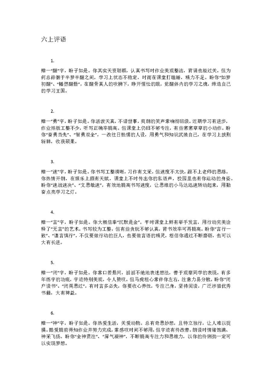 【1026】小学六年级学生期末评语六上评语 赠字系列(网上原版)
