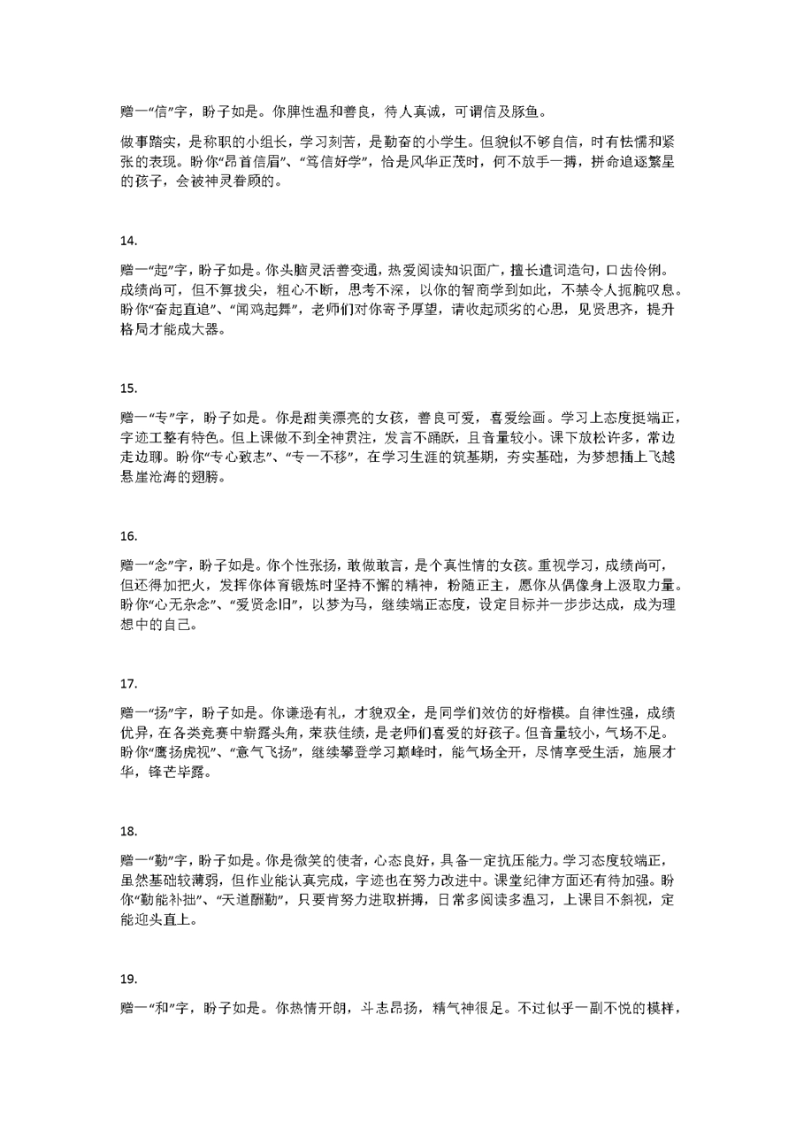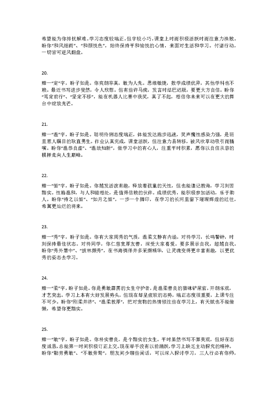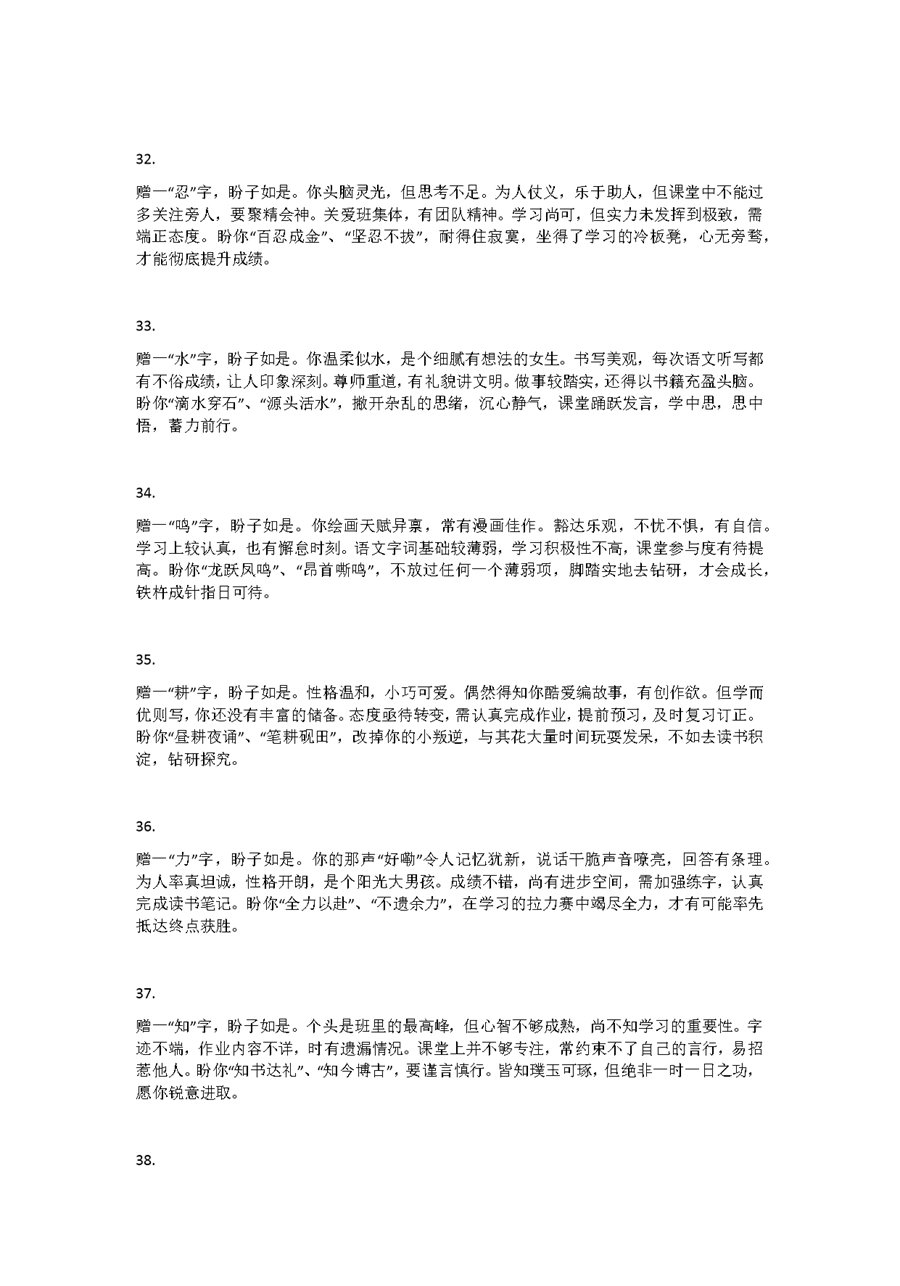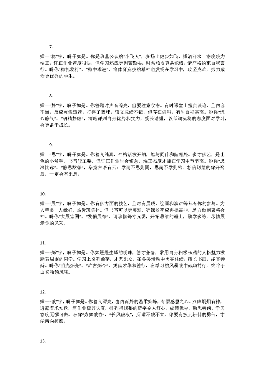 【1026】小学六年级学生期末评语六上评语 赠字系列(网上原版)
