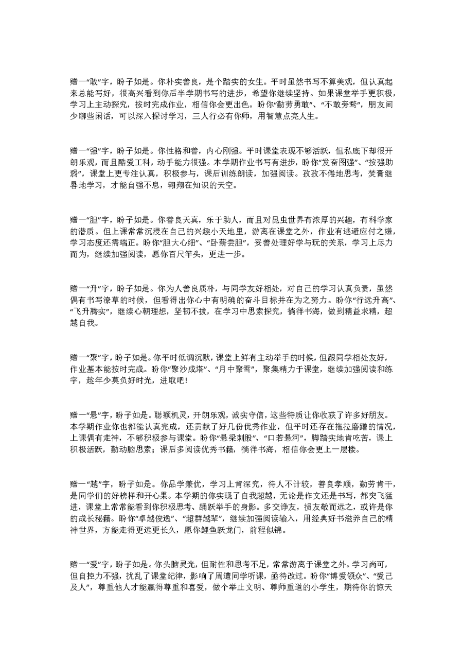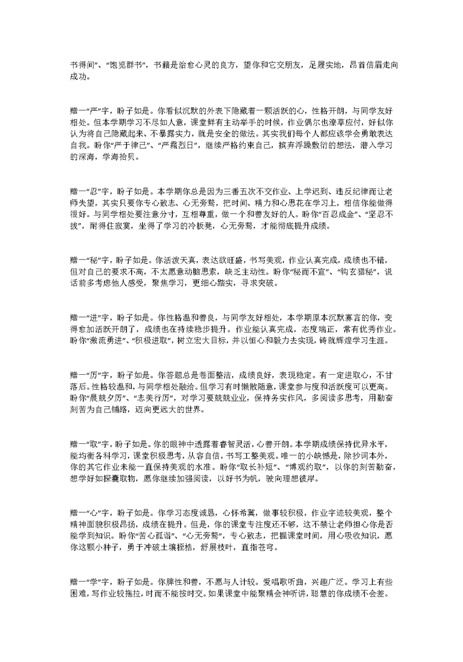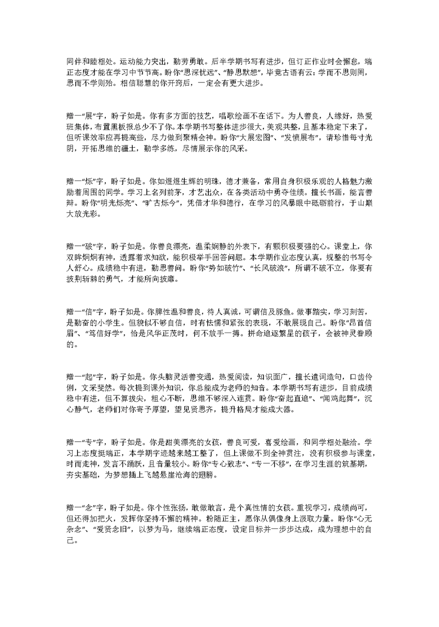 【1027】小学六年级学生期末评语六上评语 赠字系列(我的修改版)