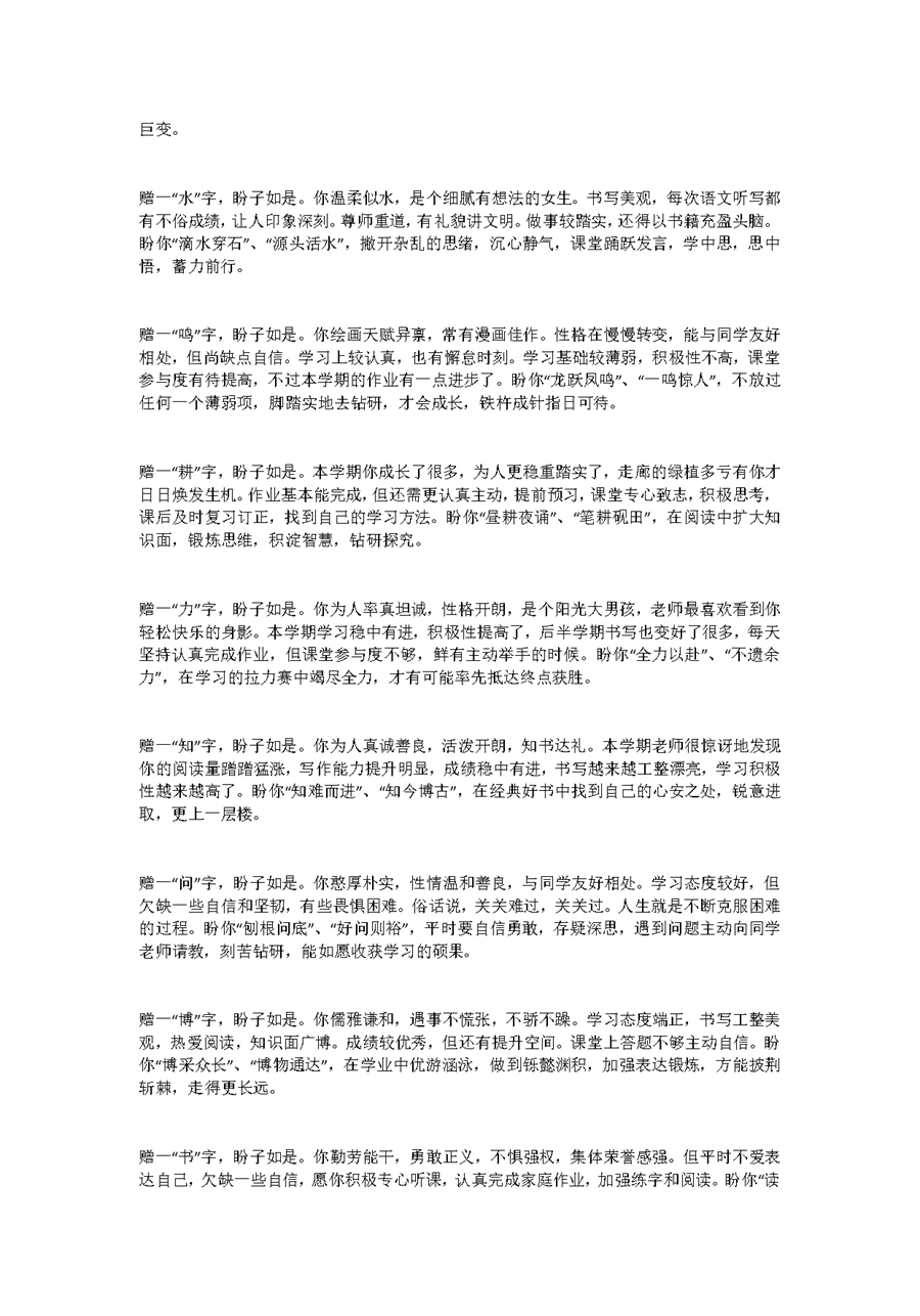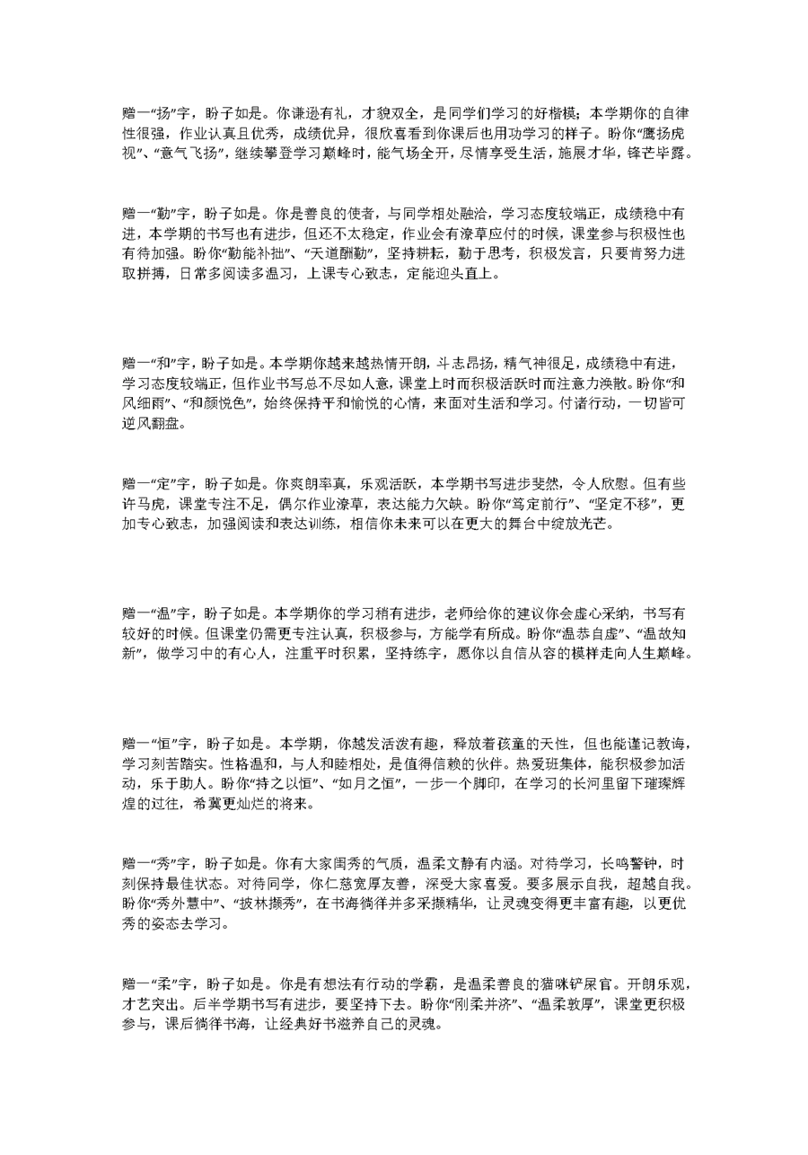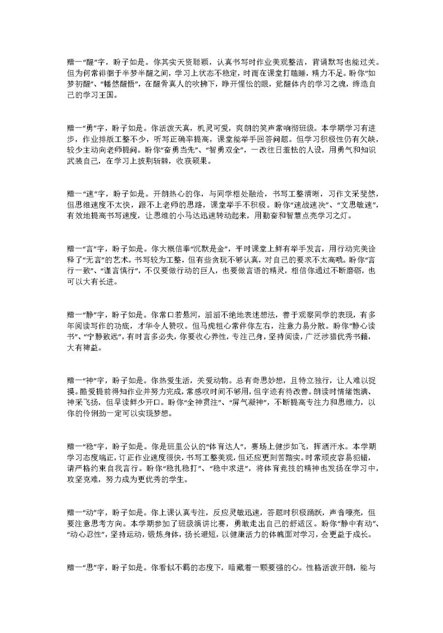 【1027】小学六年级学生期末评语六上评语 赠字系列(我的修改版)