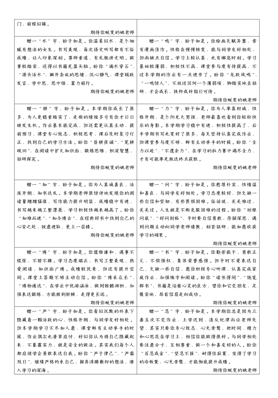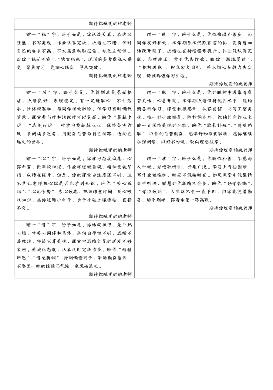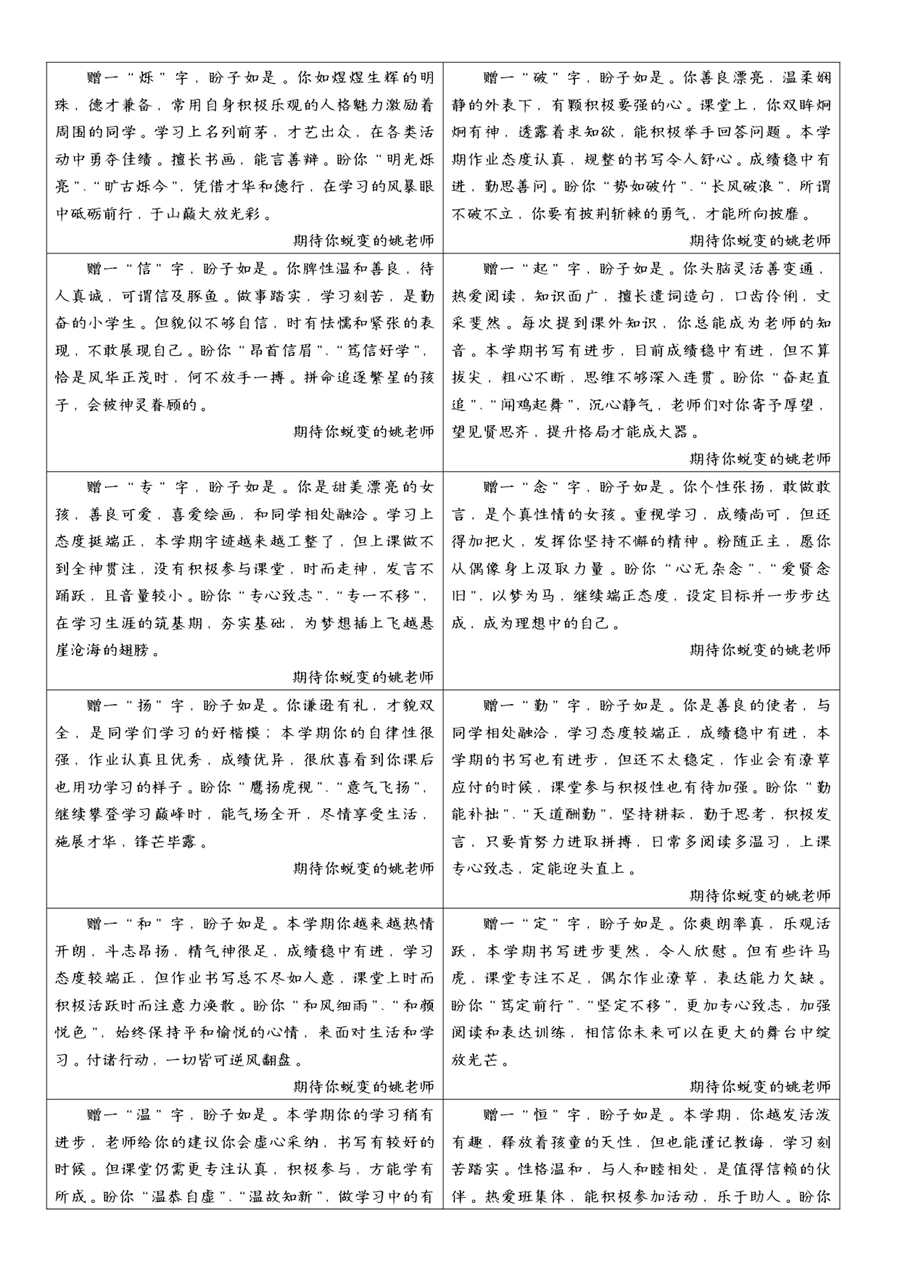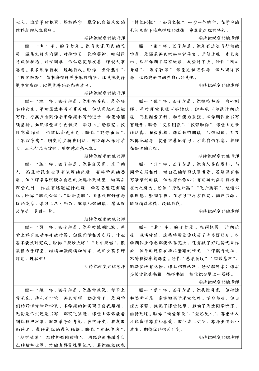 【1028】小学六年级学生期末评语我的评语(六上 鲁迅行书)