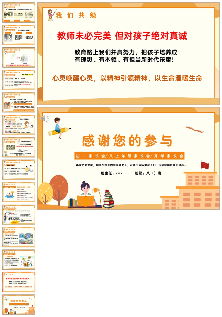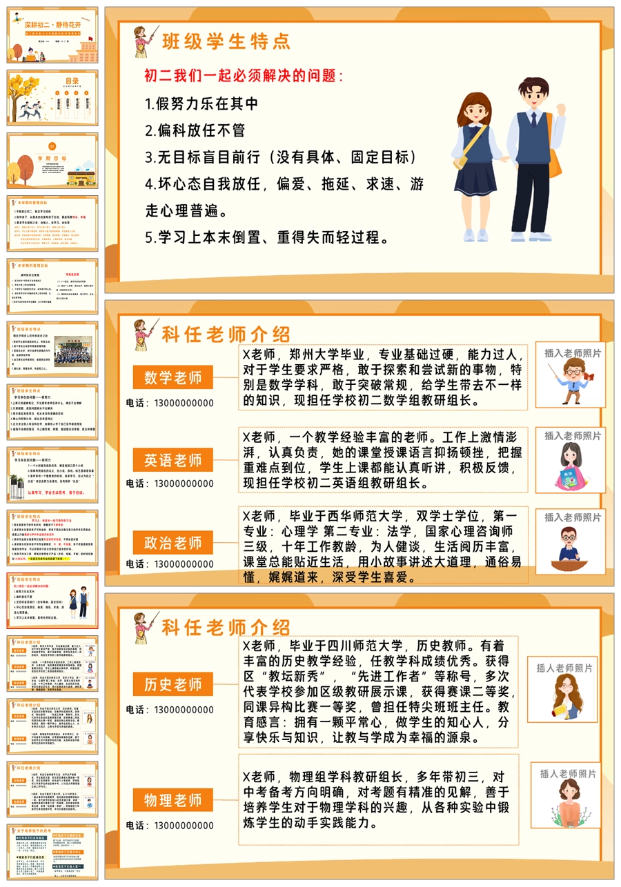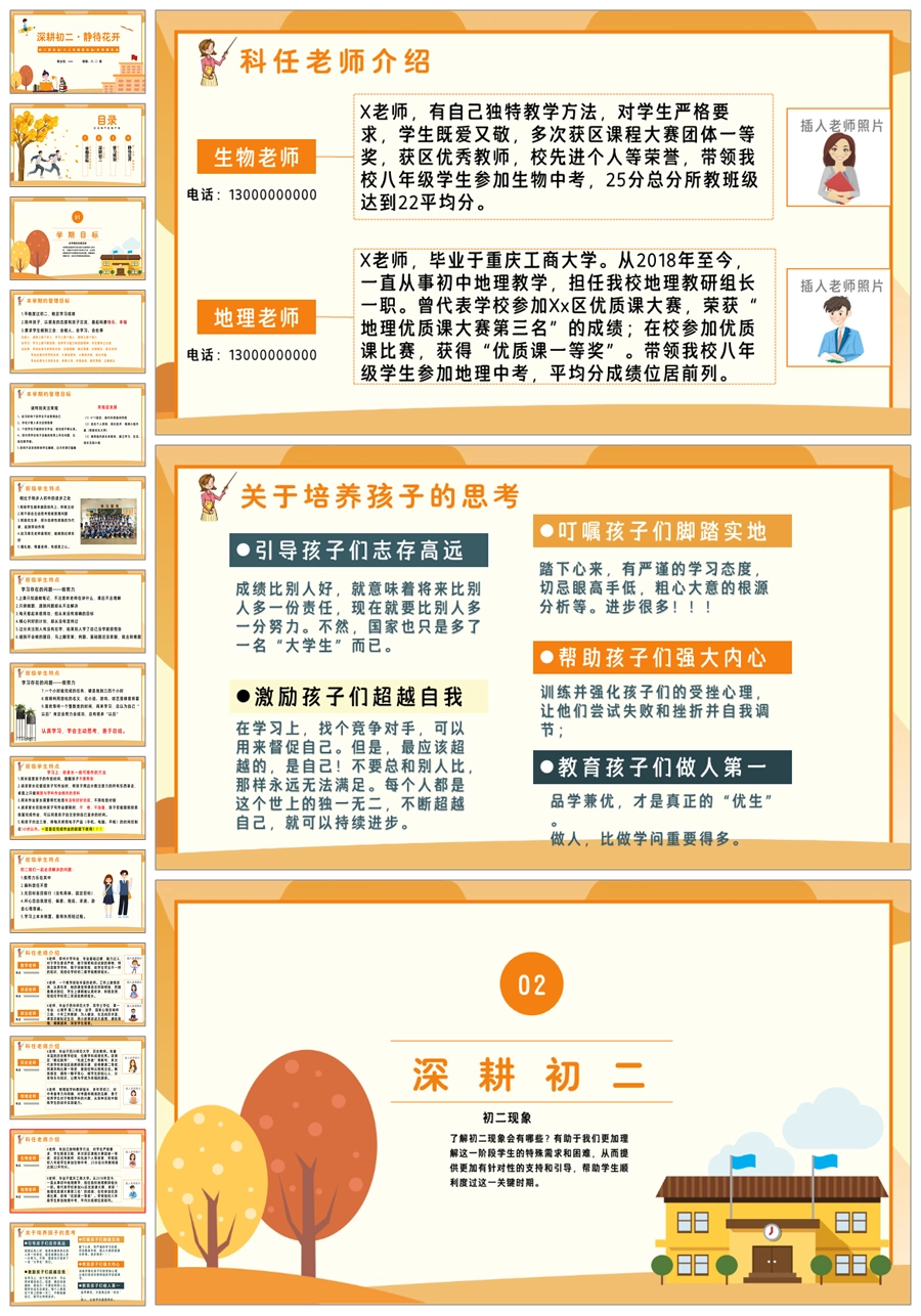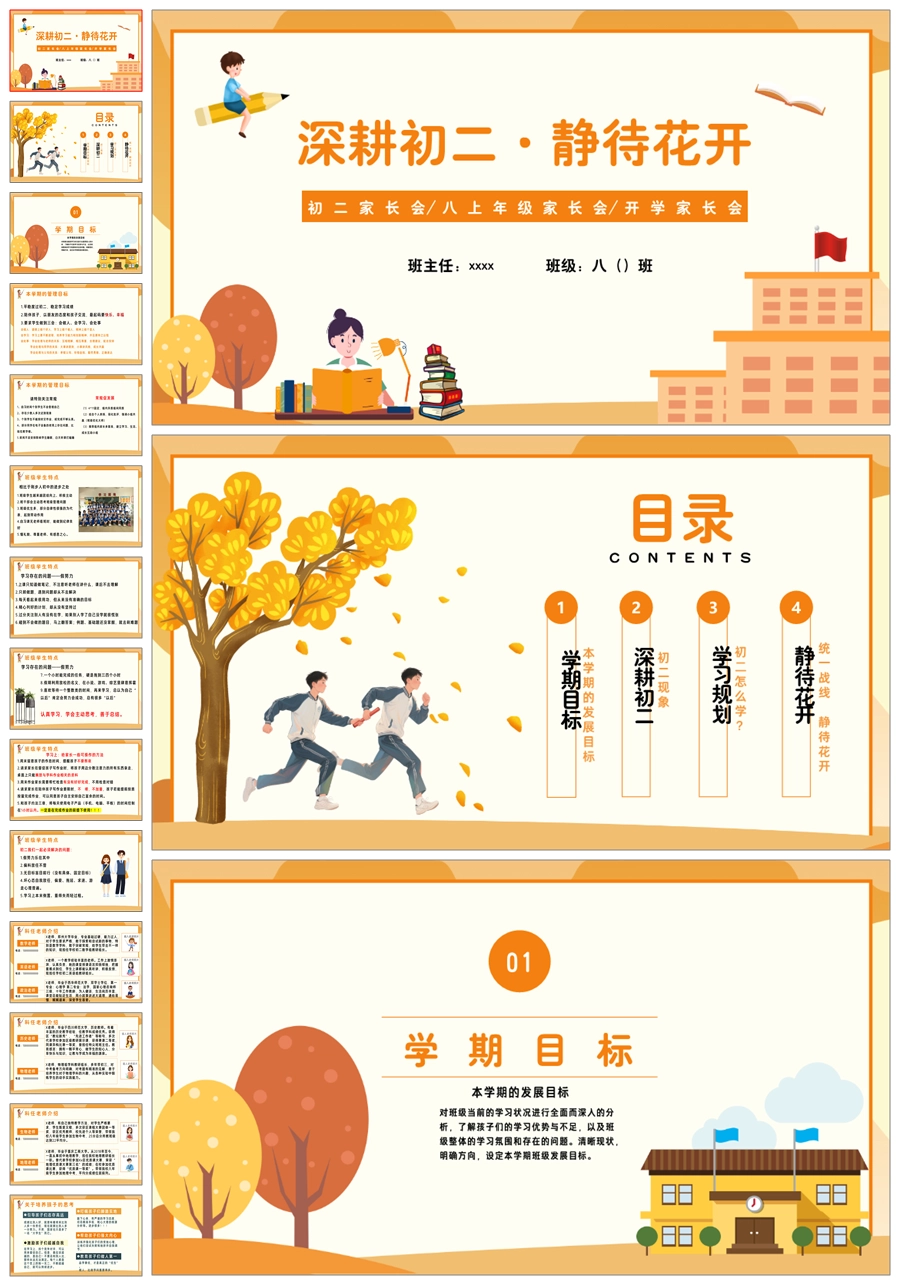 【5644】【深耕初二 静待花开】初二上学期家长会八年级上学期开学家长会ppt课件+发言稿