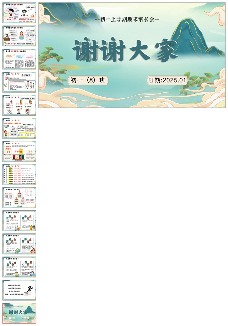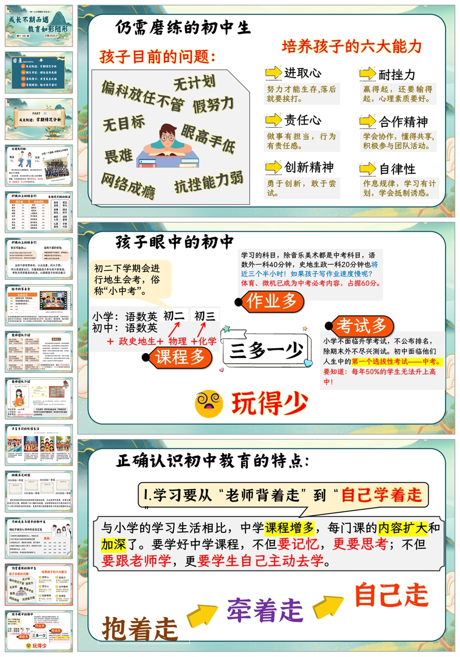 【5649】【初一上家长会】【成长不期而遇 教育如影随形】期末家长会ppt课件+发言稿