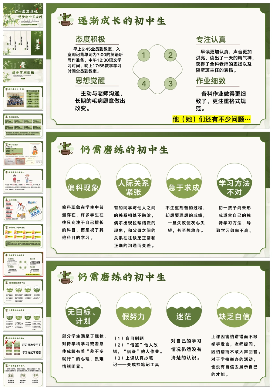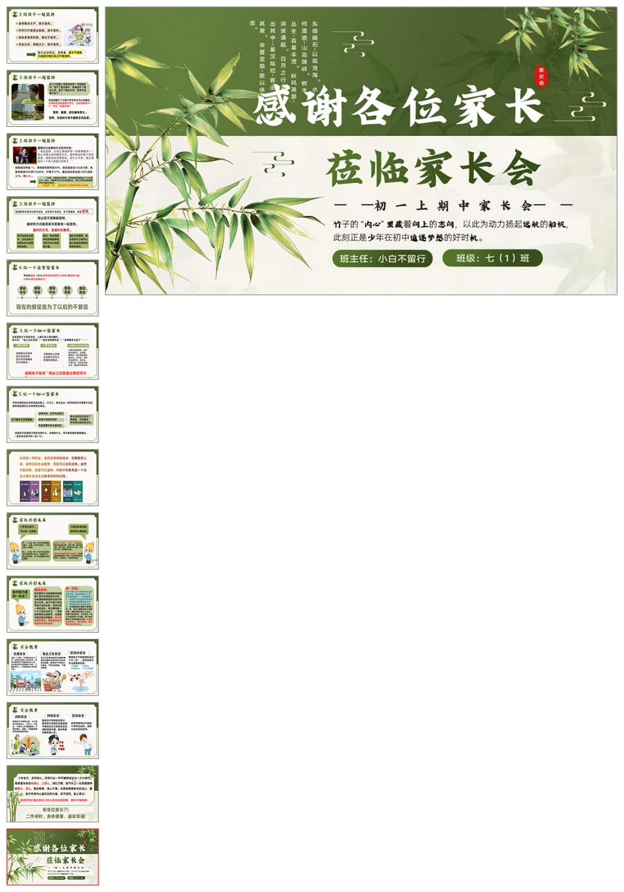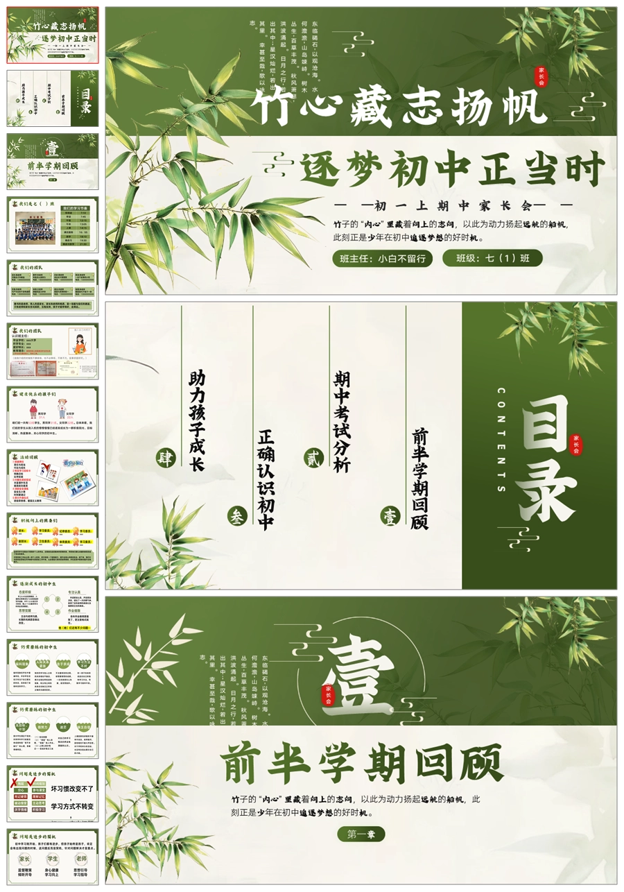【5653】【初一家长会】【上学期】【竹心藏志扬帆,逐梦初中正当时】期中家长会ppt课件+发言稿