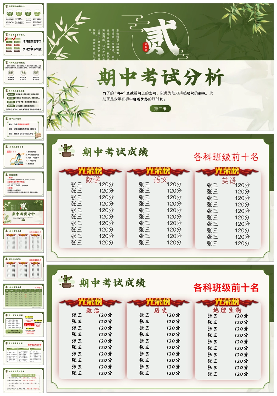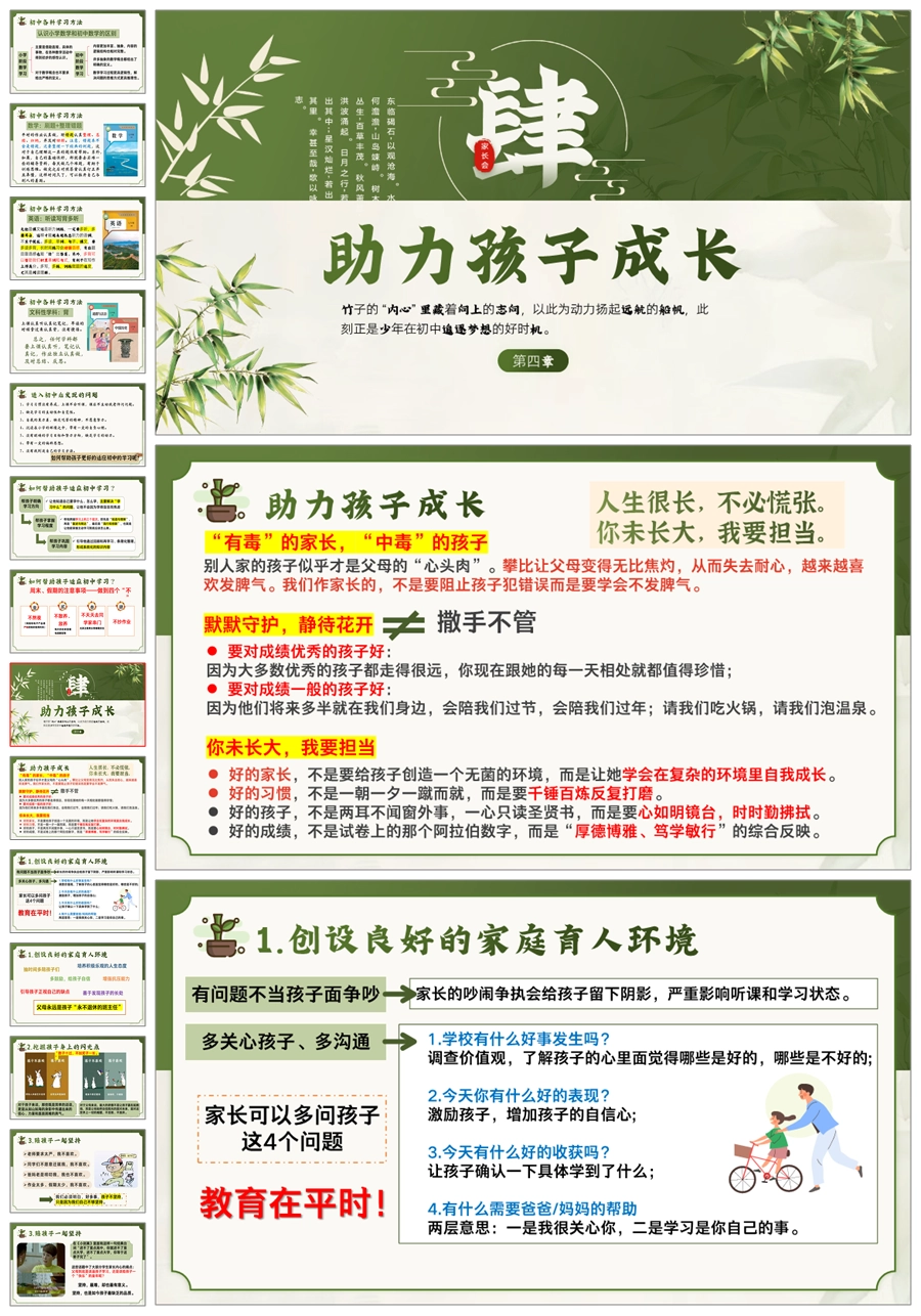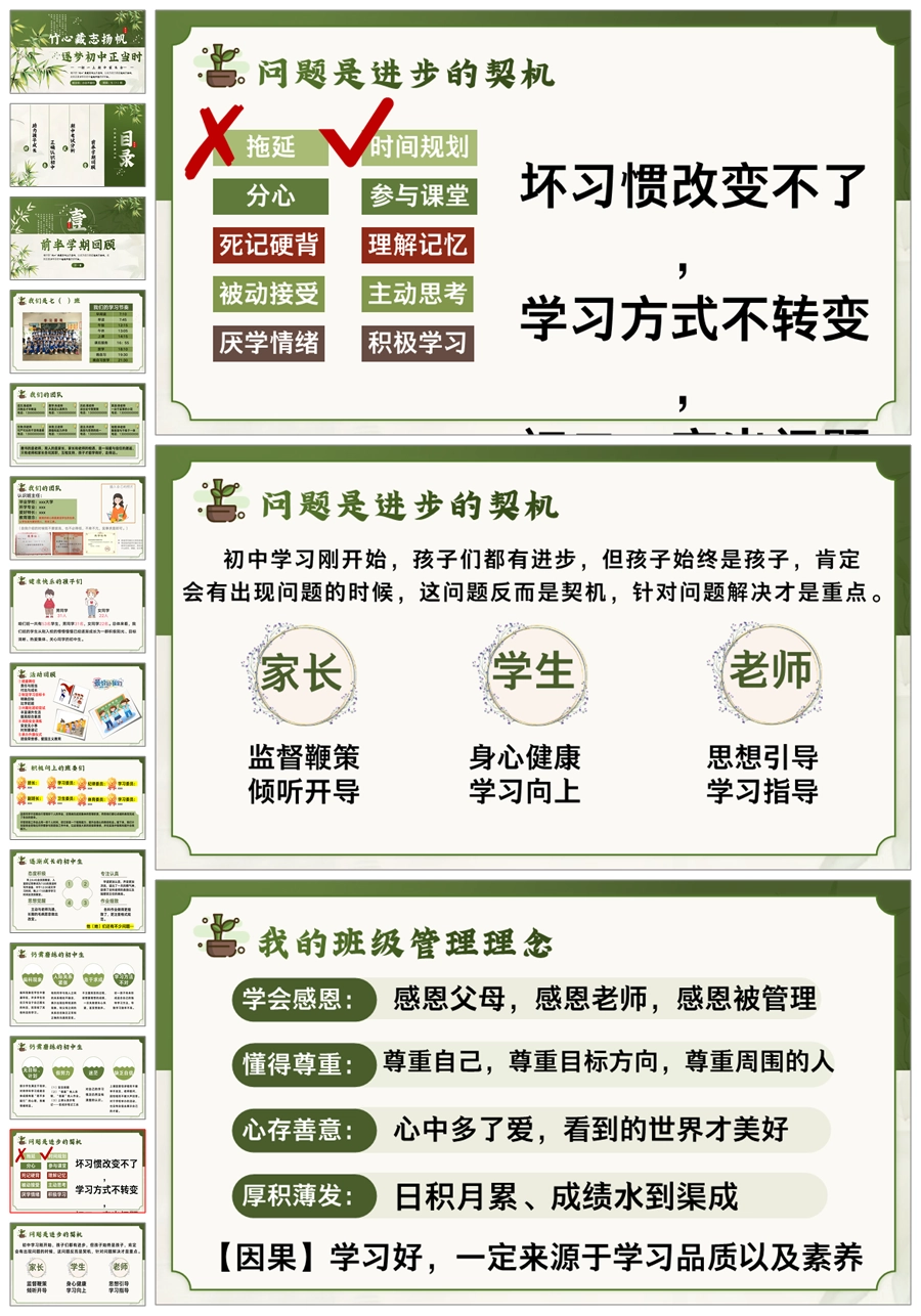 【5653】【初一家长会】【上学期】【竹心藏志扬帆,逐梦初中正当时】期中家长会ppt课件+发言稿