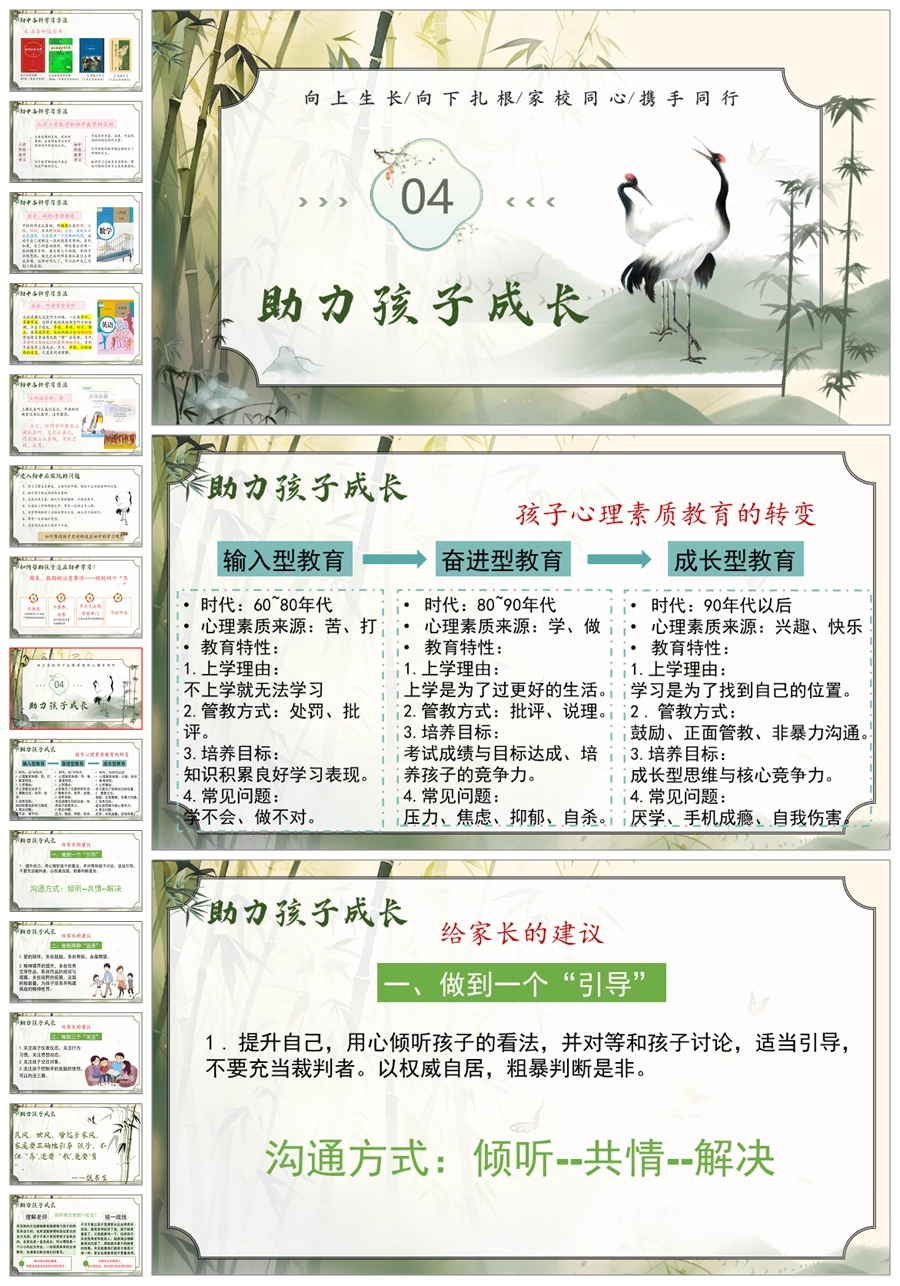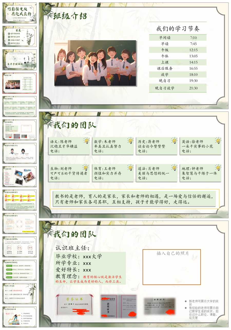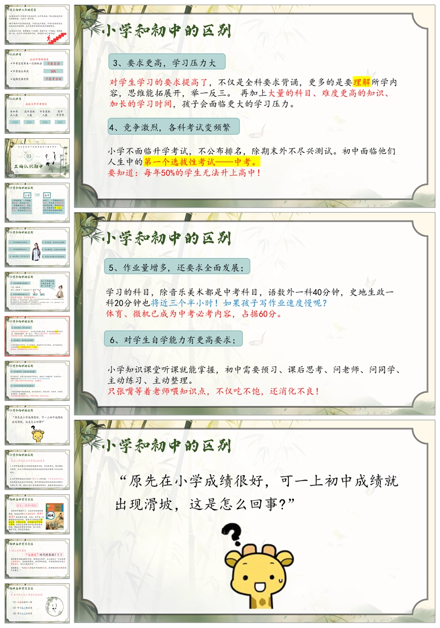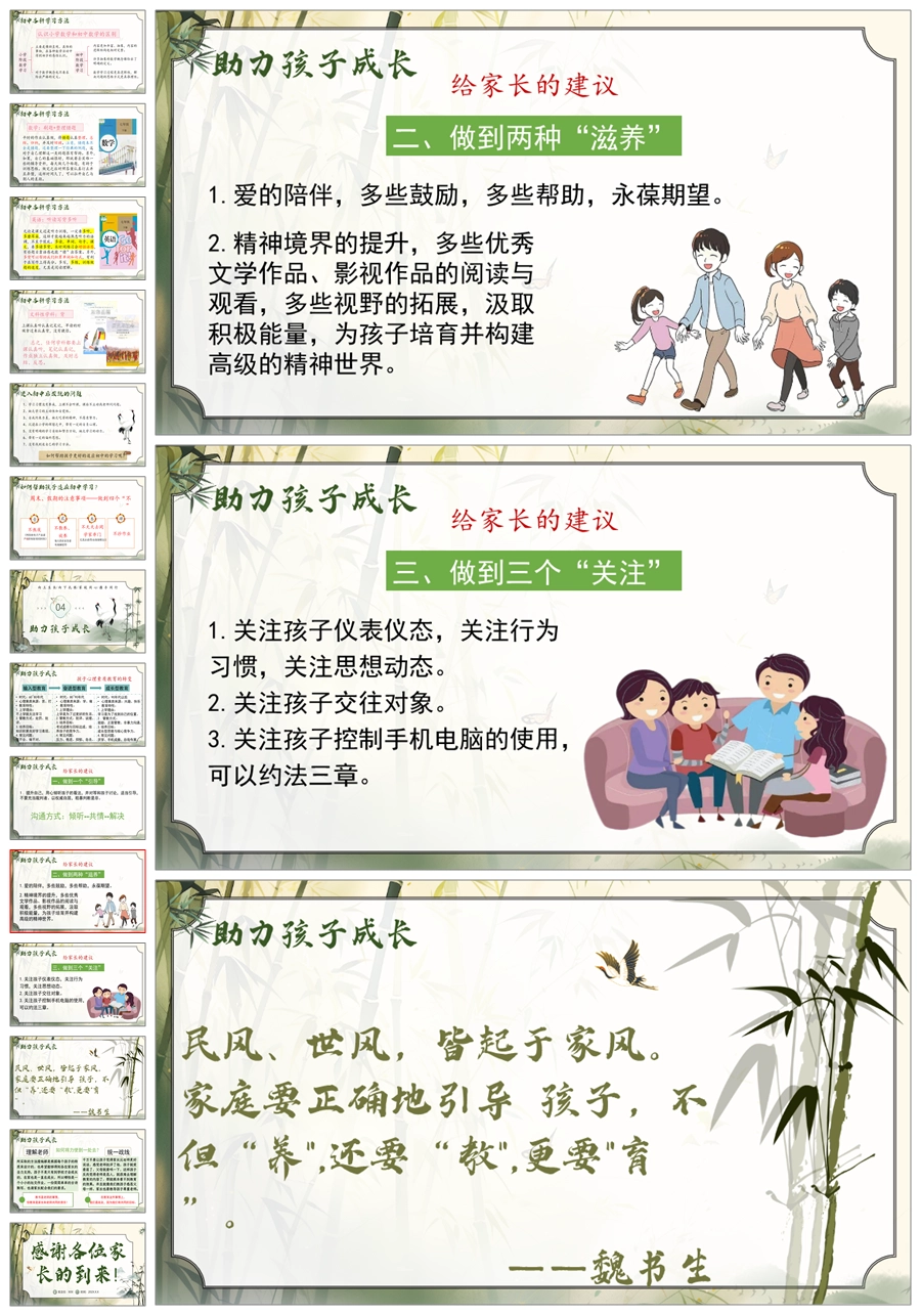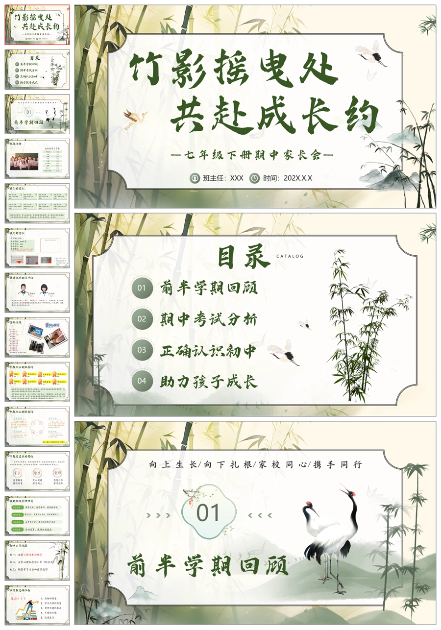 【5658】《竹影摇曳处,共赴成长约》七年级下册期中家长会ppt课件+发言稿