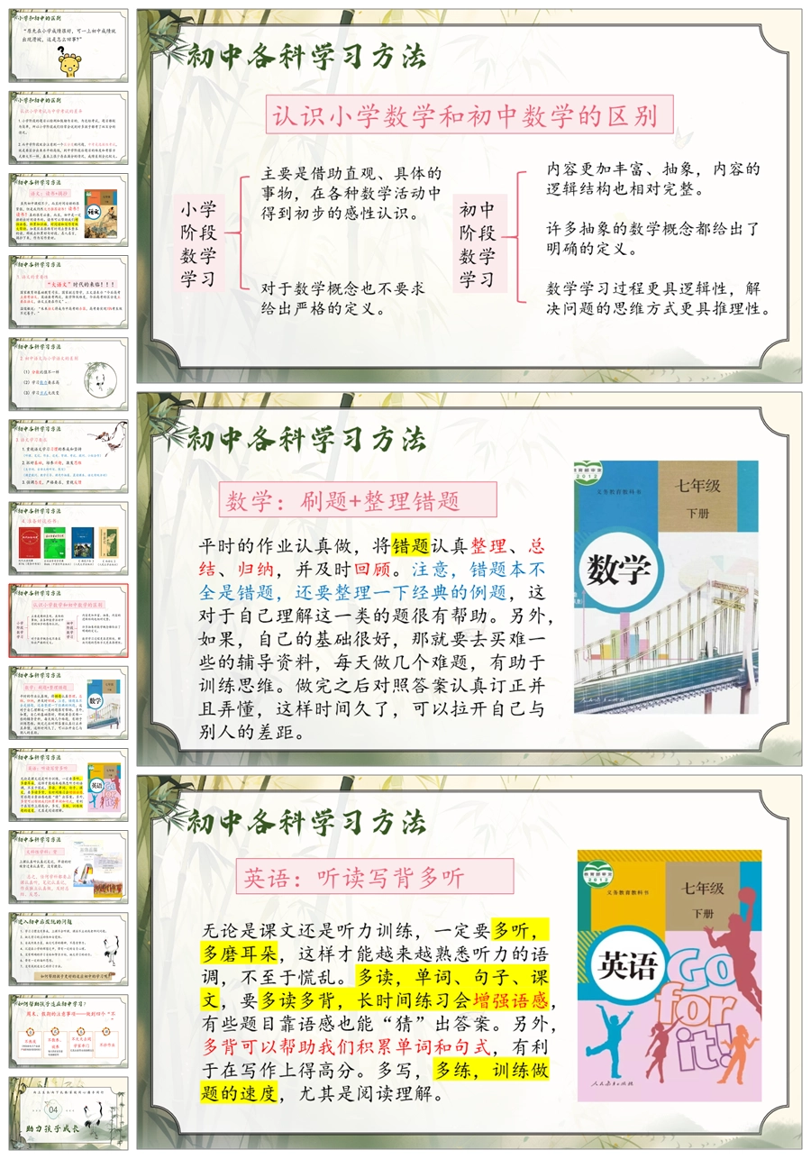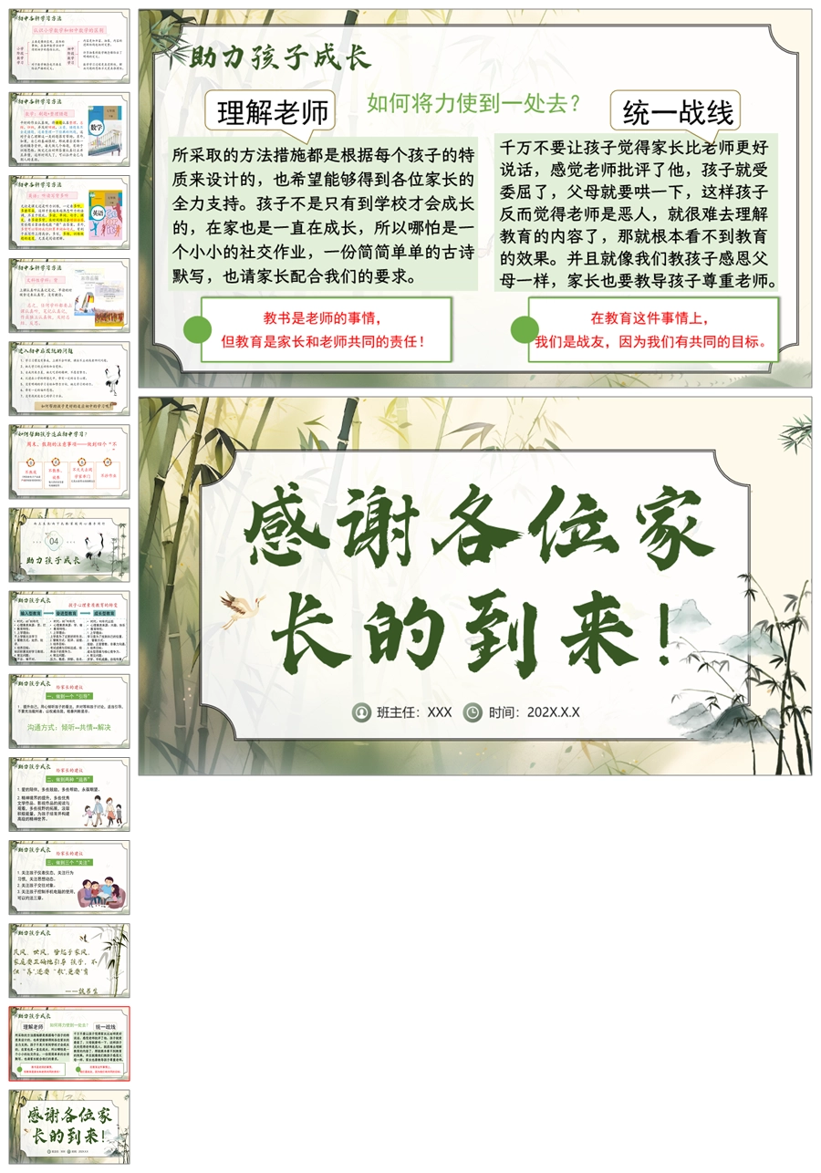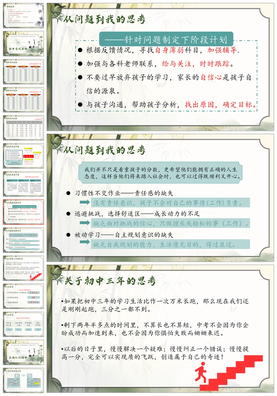 首页 中学家长会 【5658】《竹影摇曳处,共赴成长约》七年级下册期中家长会ppt课件+发言稿