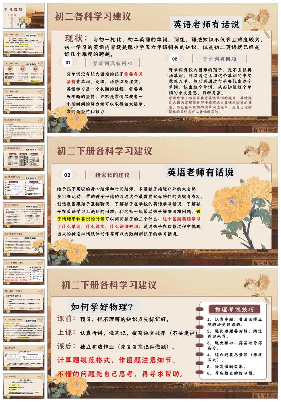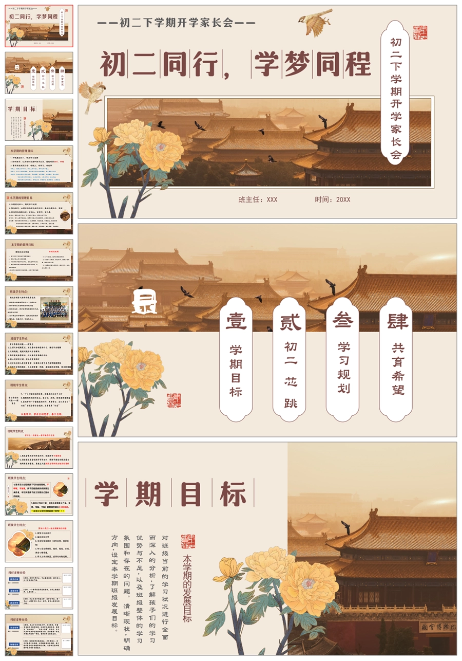 【5661】《初二同行,学梦同城》开学家长会八年级下学期开学家长会ppt课件+发言稿