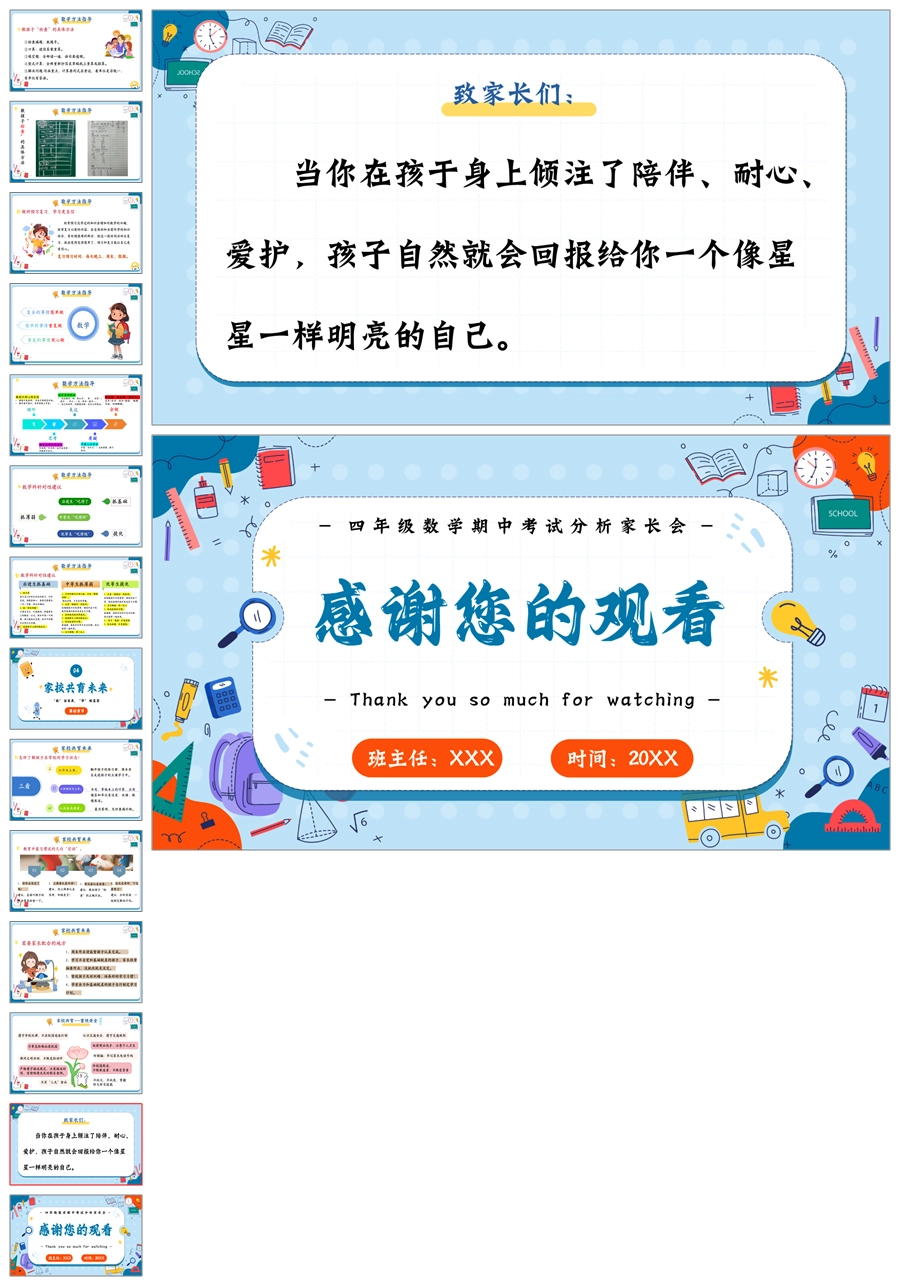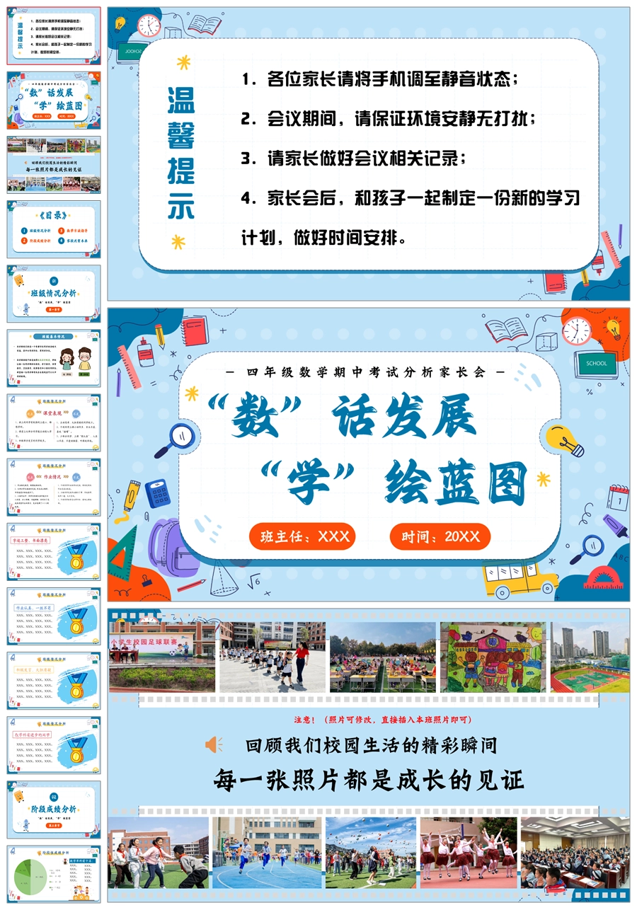 【5588】《“数” 话发展,“学” 绘蓝图 》四年级数学期中考试分析家长ppt课件+发言稿
