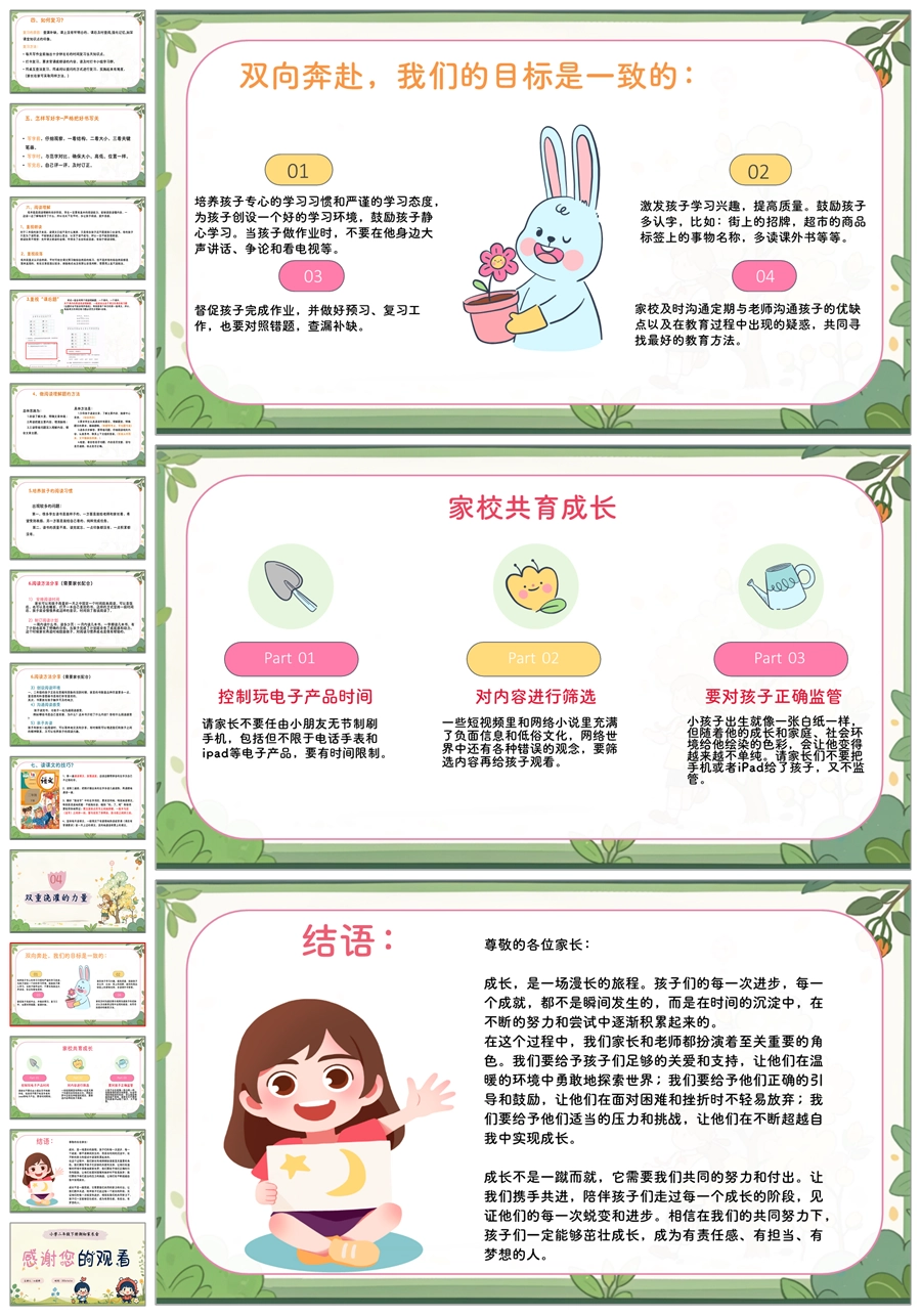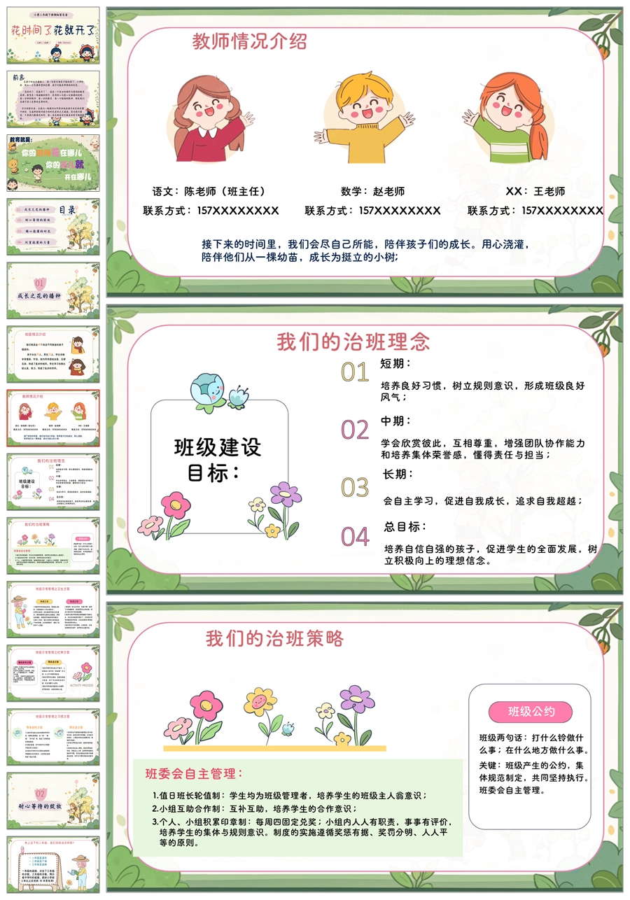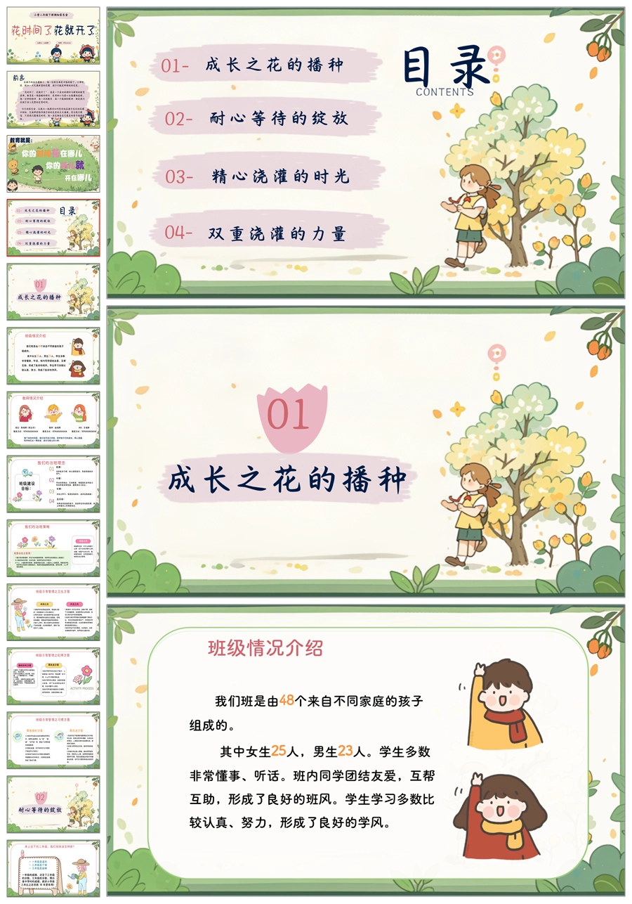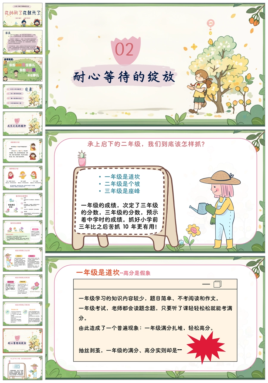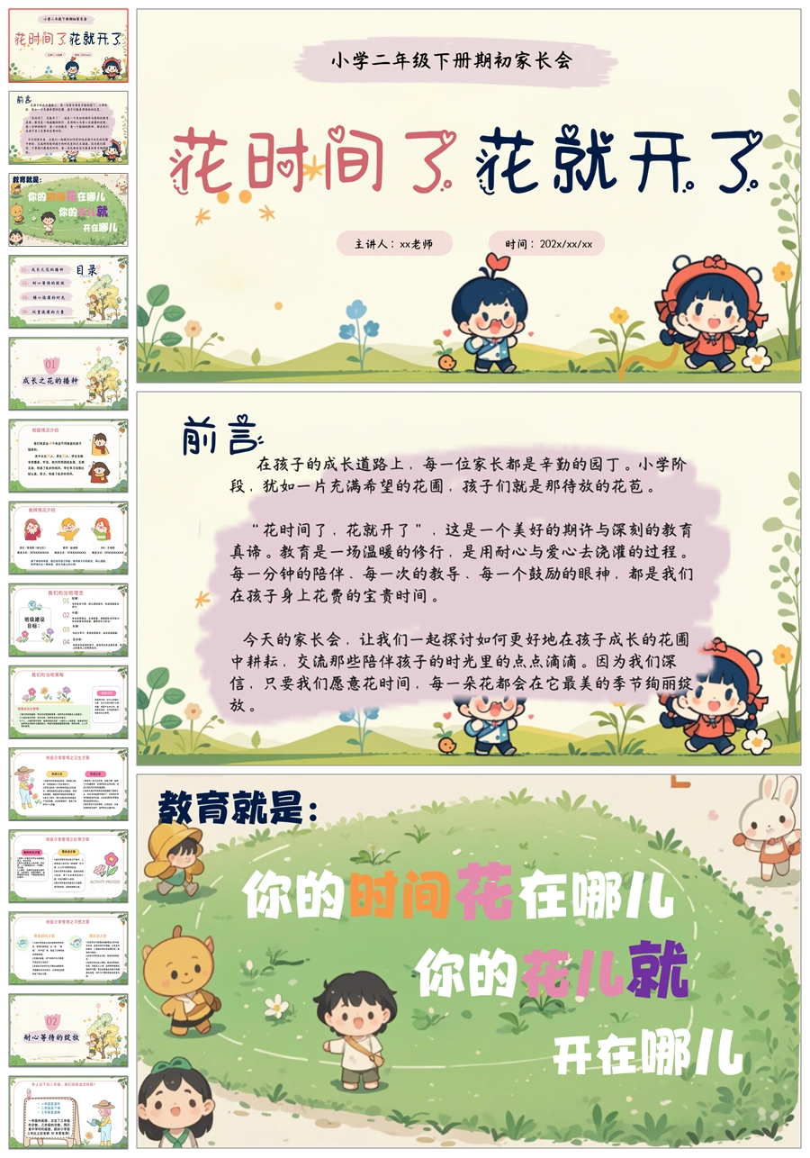 【5595】《花时间了,花就开了》二年级家长会ppt课件+发言稿