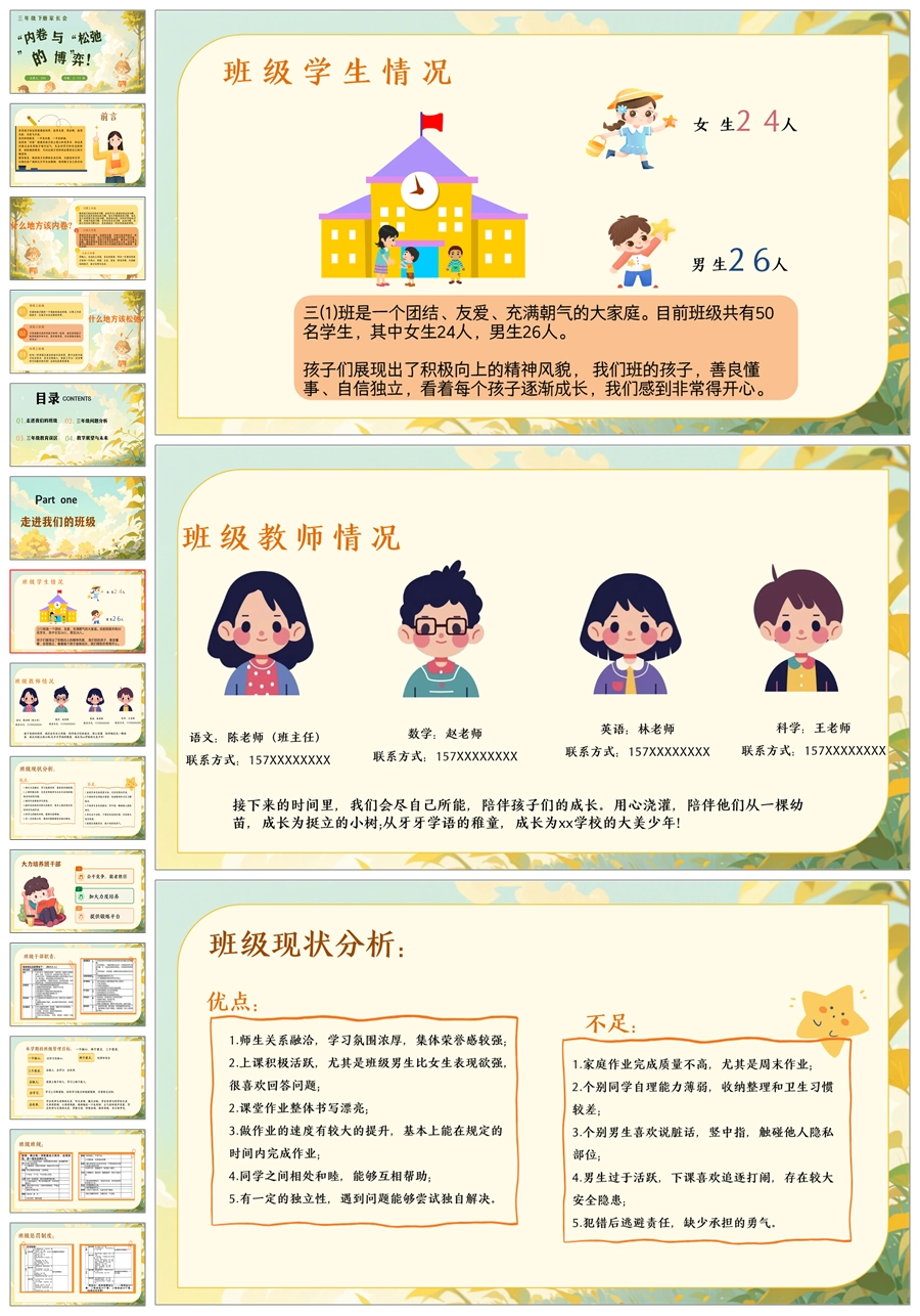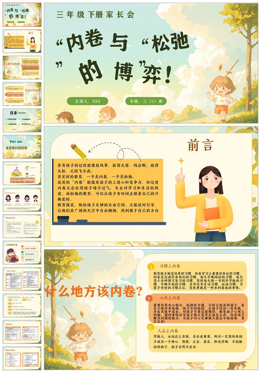 【5597】《内卷与松弛的博弈》小学三年级下册家长会ppt课件+发言稿