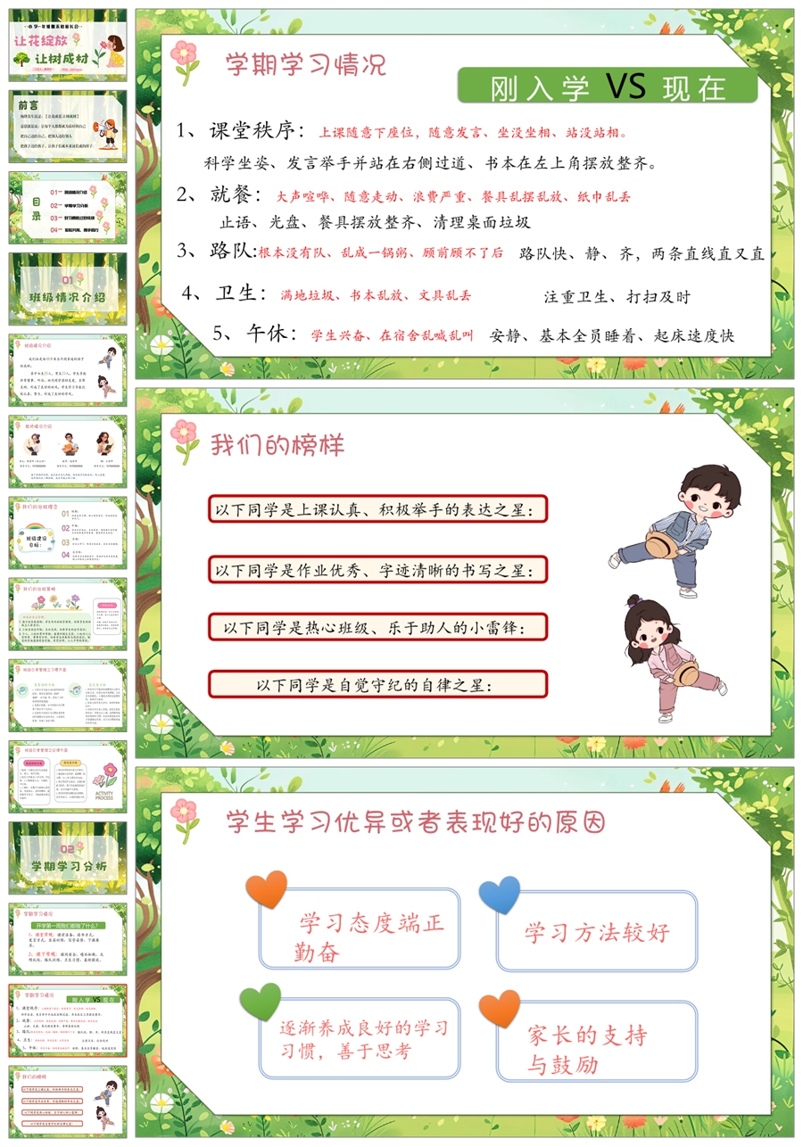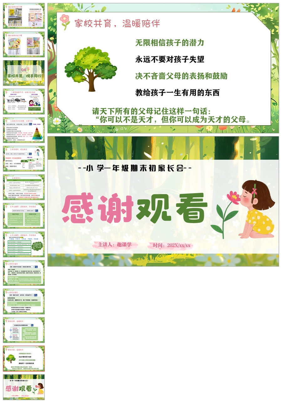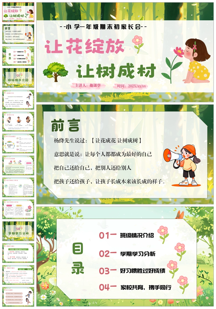 【5598】《让花绽放,让树成材》小学一年级期末家长会ppt课件+发言稿