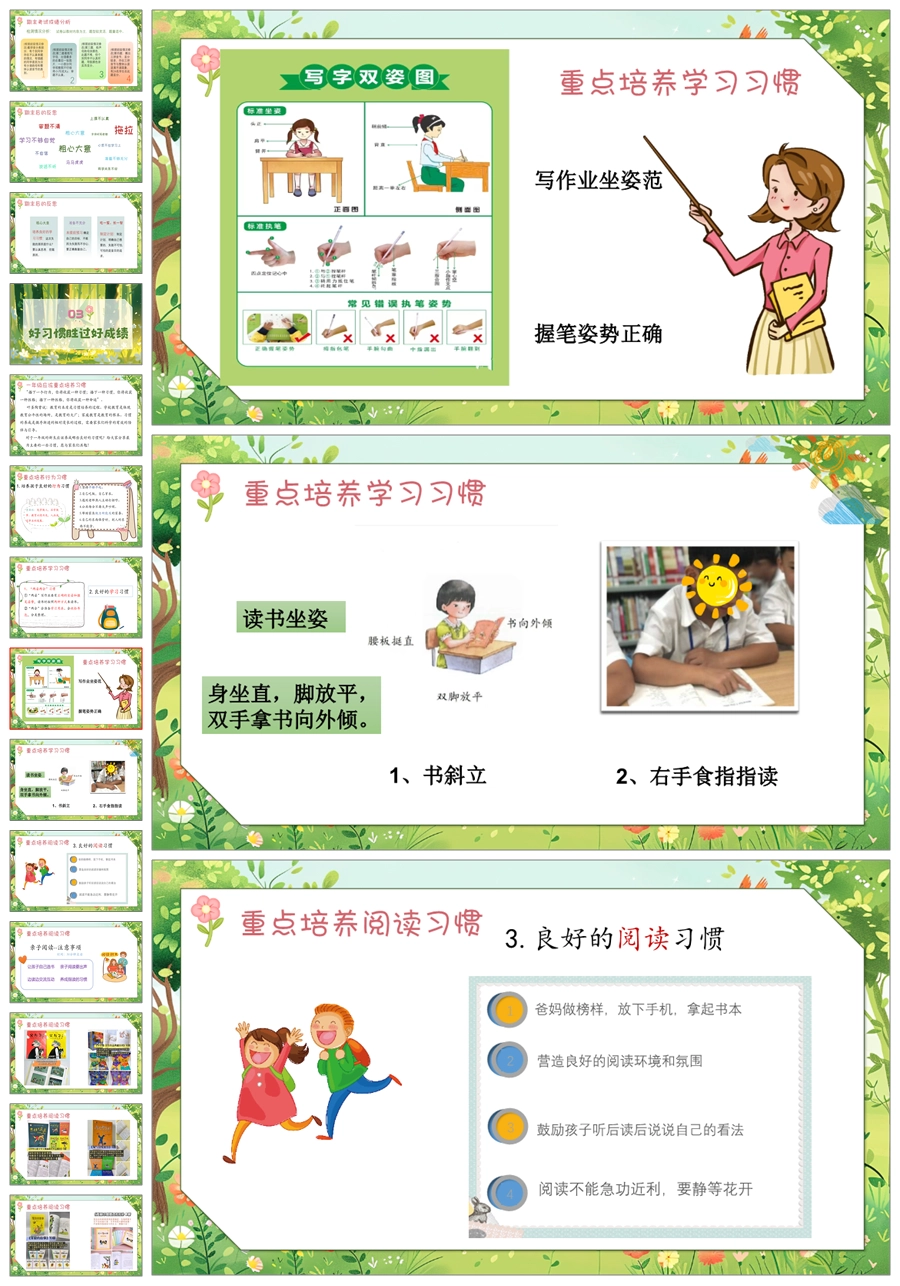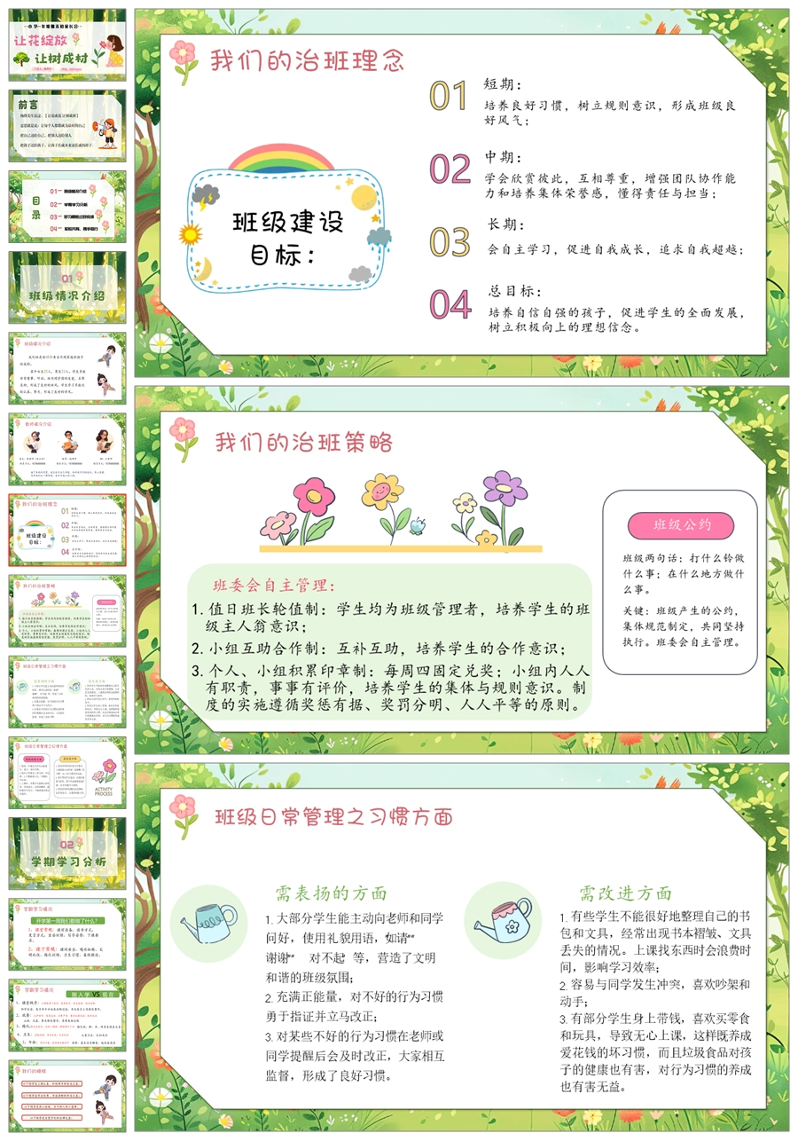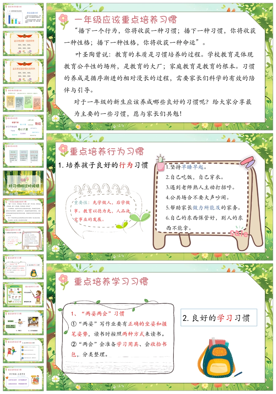 【5598】《让花绽放,让树成材》小学一年级期末家长会ppt课件+发言稿