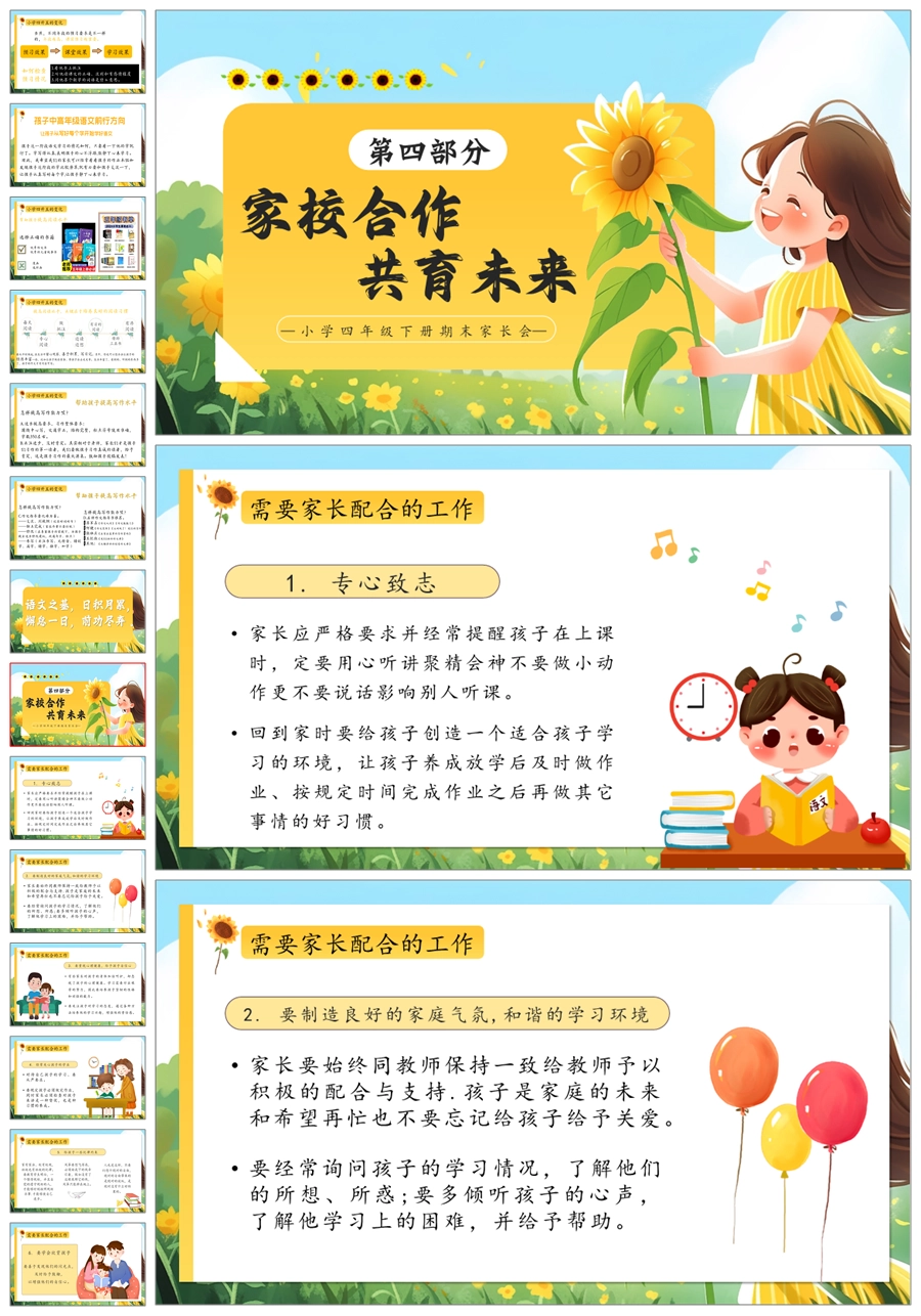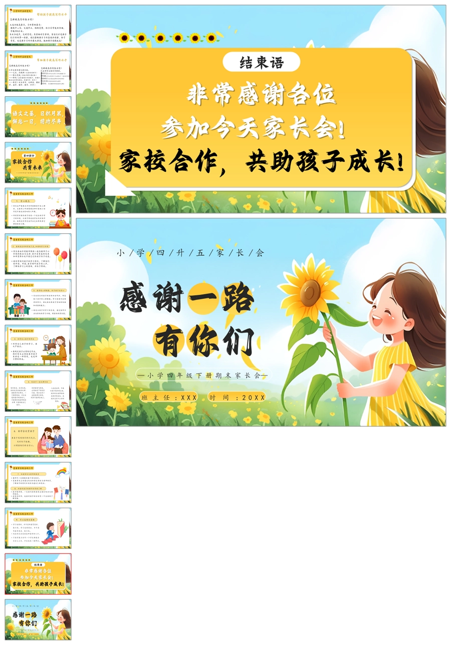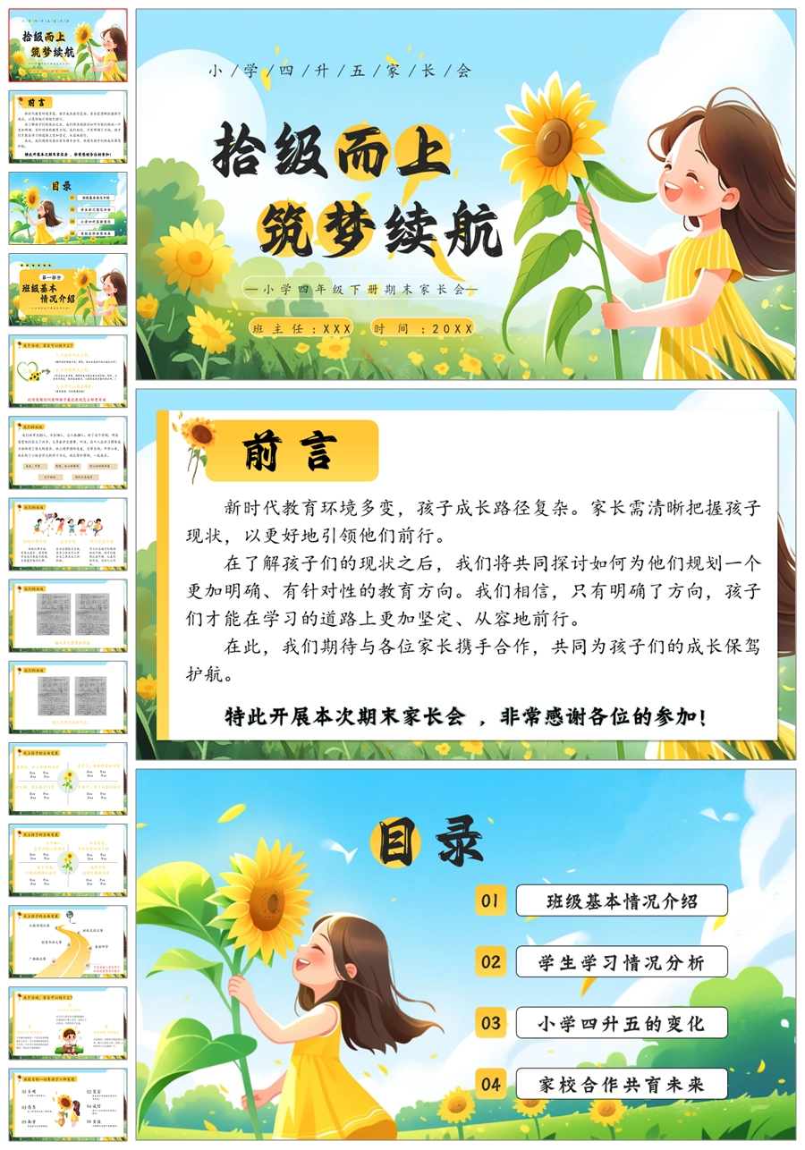 【5600】《拾级而上, 筑梦续航小学》四年级下册期末家长会ppt课件+发言稿