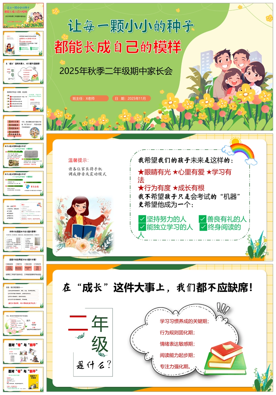 【5609】【二年级】2025年【秋季】【期中】家长会:让每一颗小小的种子ppt课件+发言稿