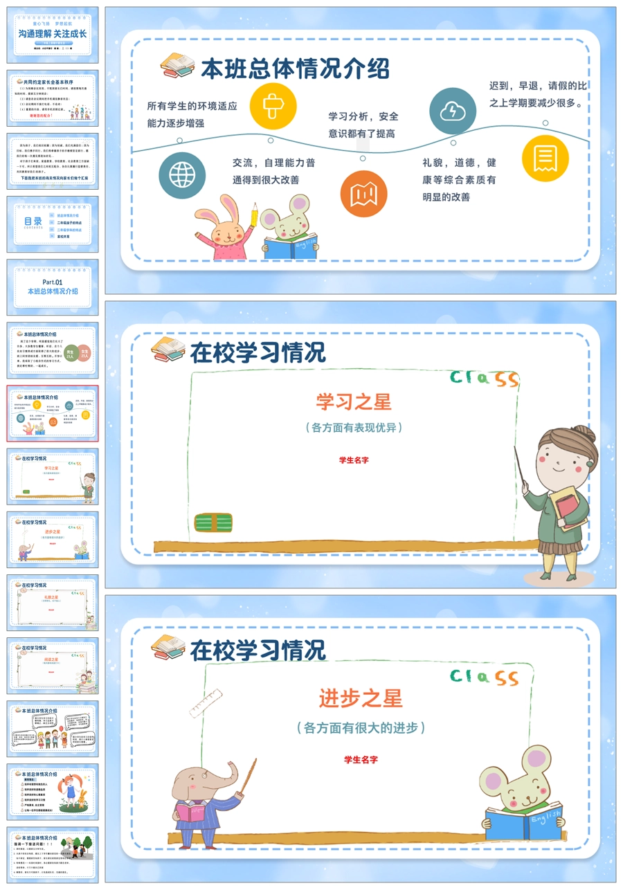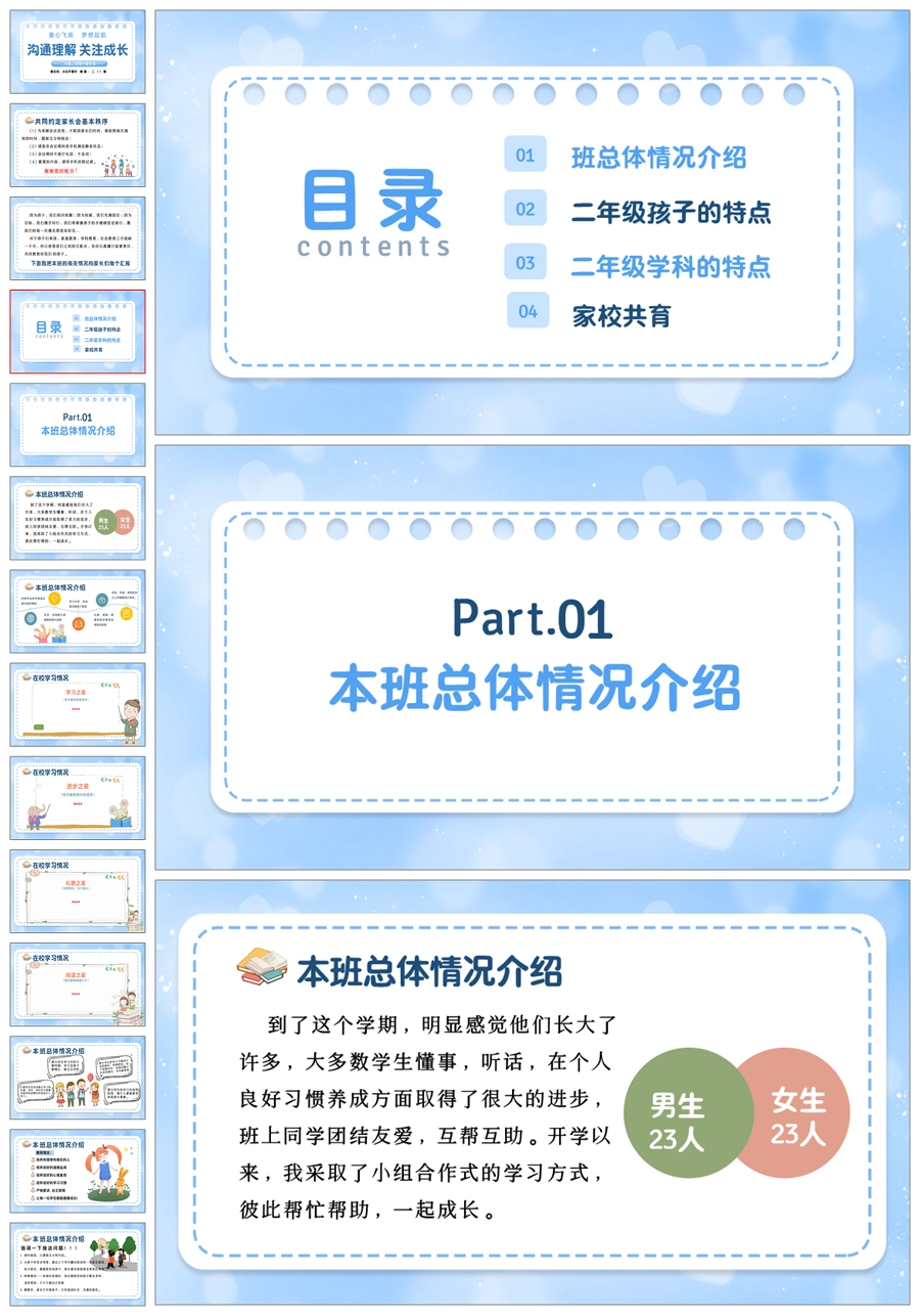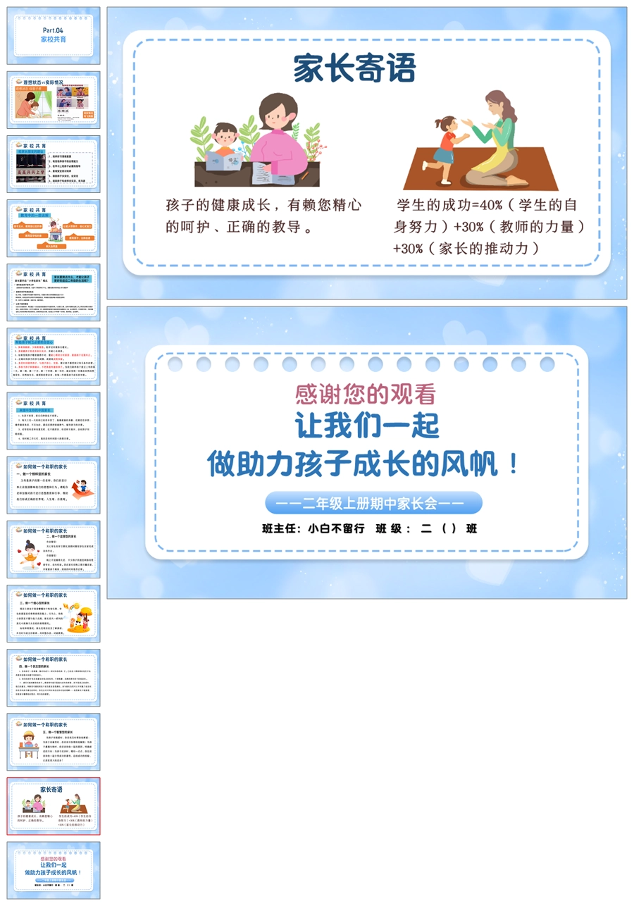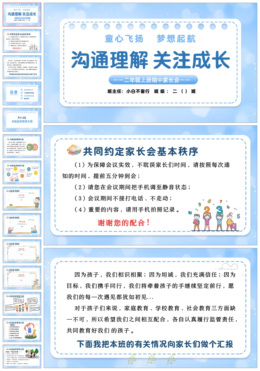 【5611】【二年级上】语文期中家长会《沟通理解 关注成长》ppt课件+发言稿