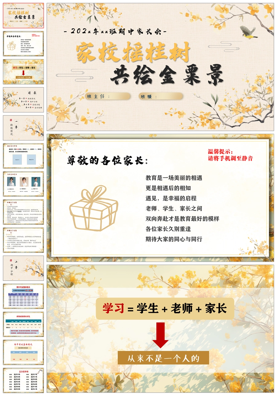 【5620】【通用】《家校摇桂树,共绘金粟景》小学期中家长会ppt课件+发言稿
