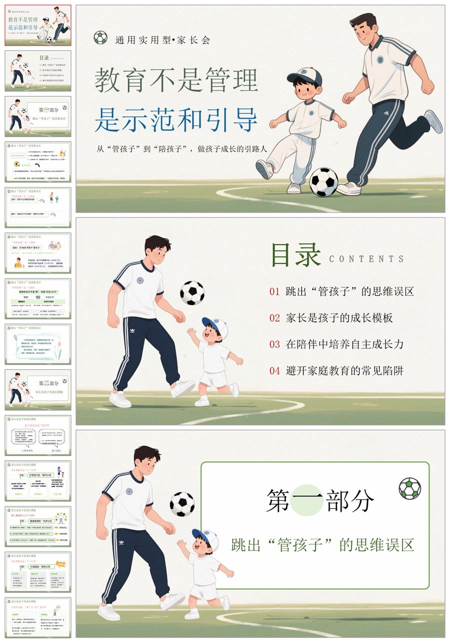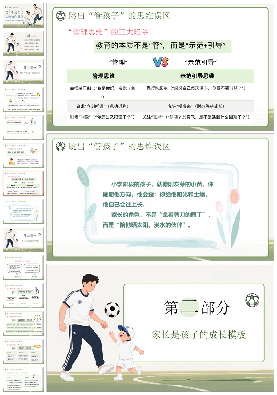 【5625】【通用】家长会《教育不是管理,是示范和引导》家长会讲座ppt课件+发言稿