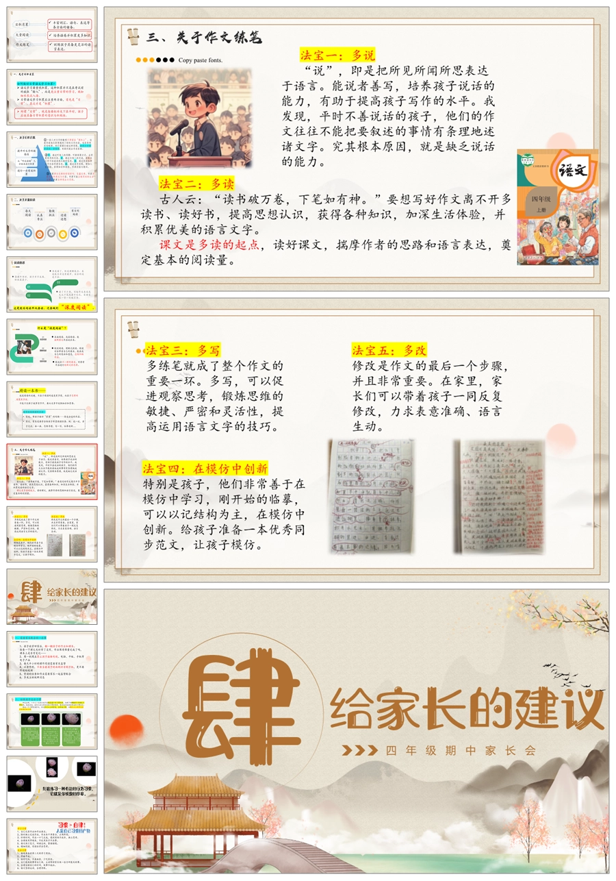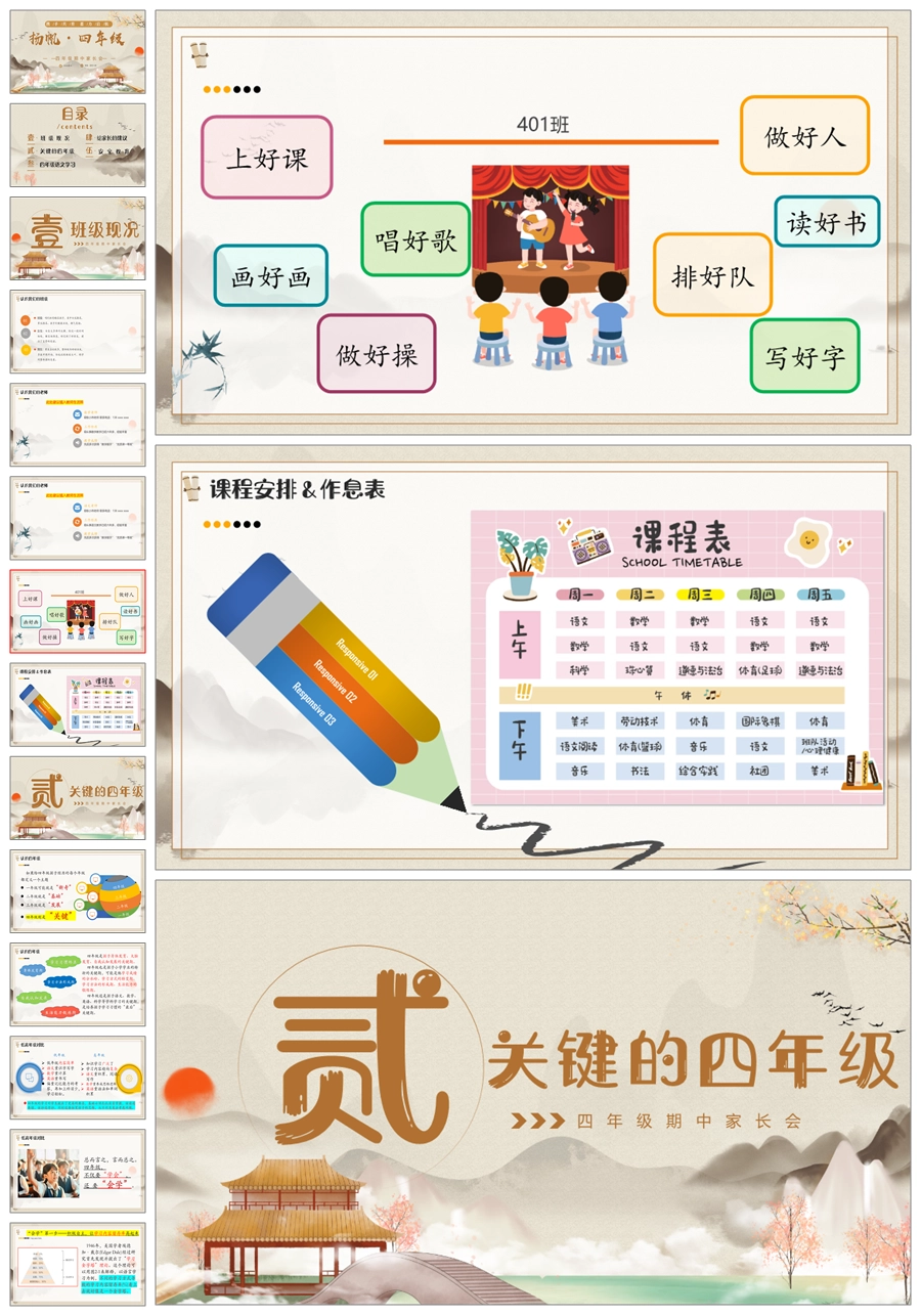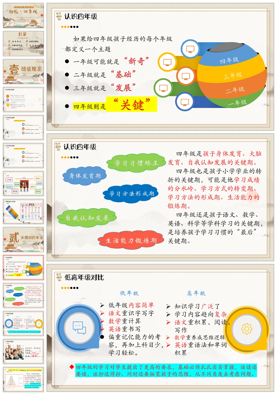 【5606】《扬帆四年级》四年级期中家长会ppt课件+发言稿