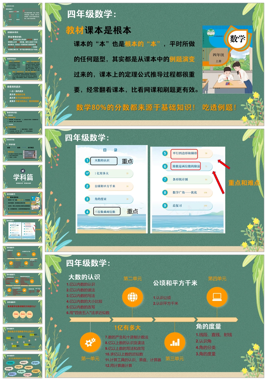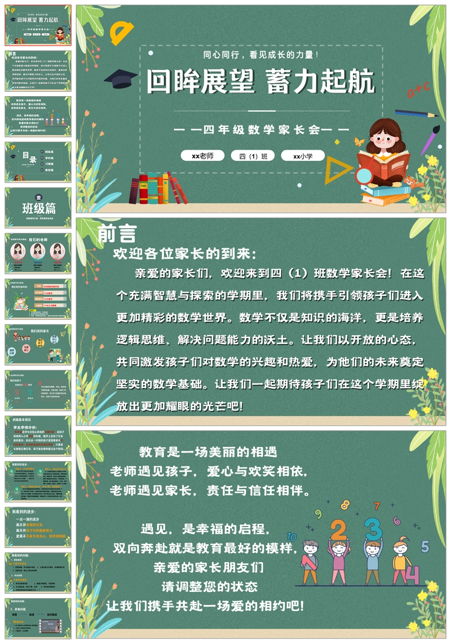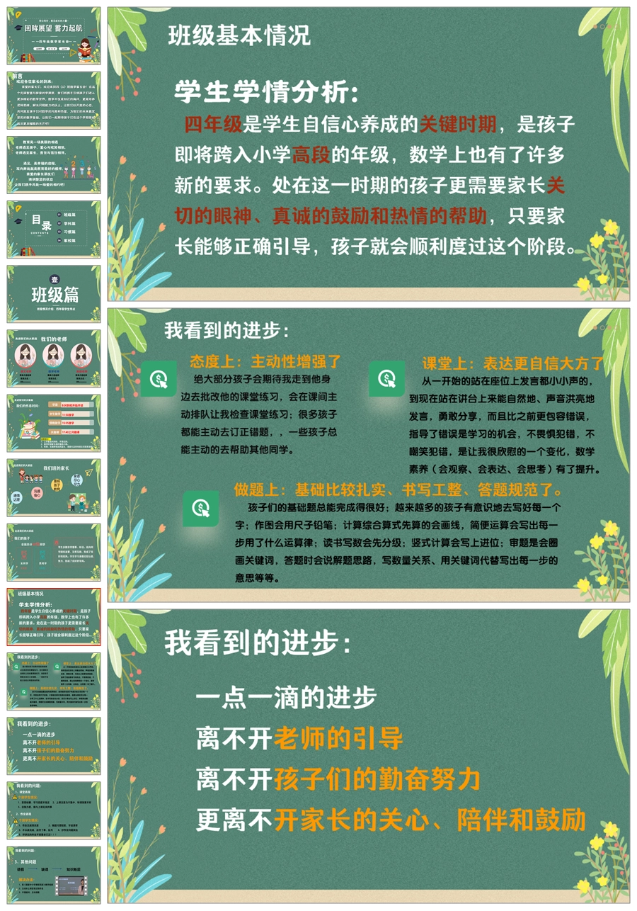 【5635】四年级数学家长会《回眸展望 蓄力起航》ppt课件+发言稿