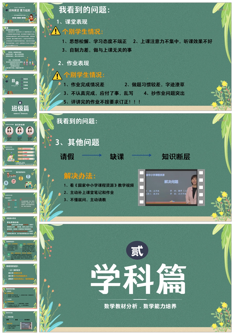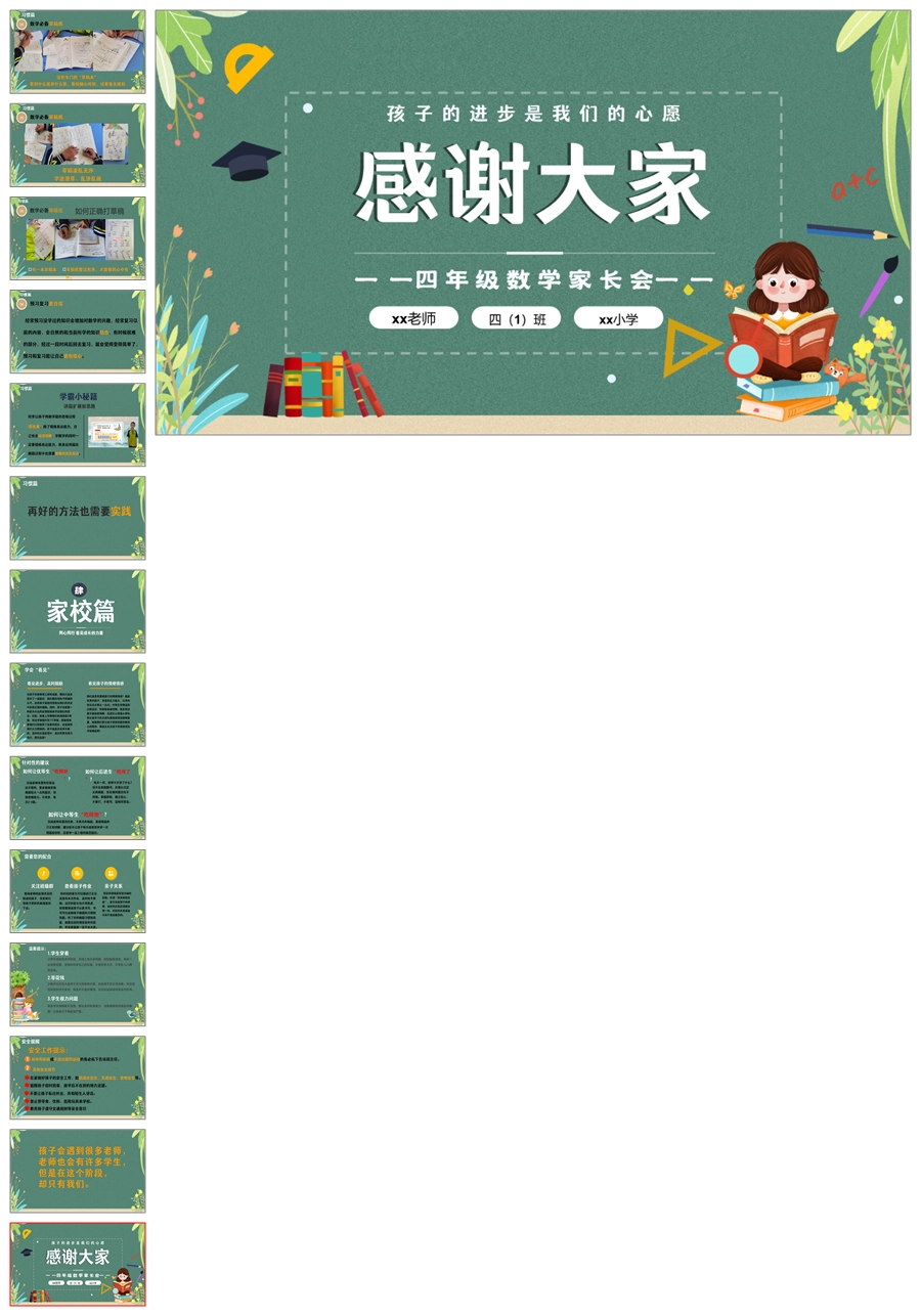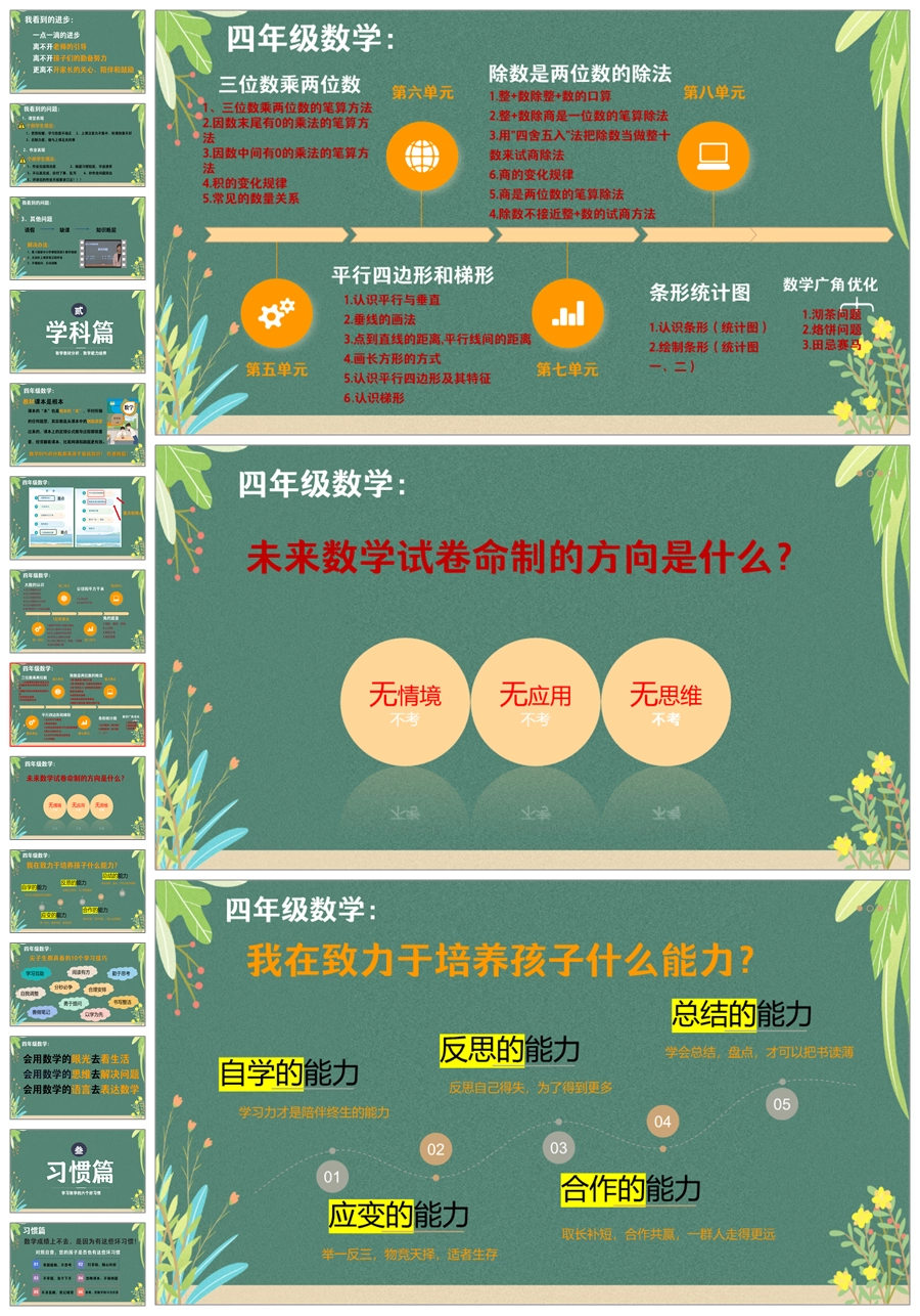 【5635】四年级数学家长会《回眸展望 蓄力起航》ppt课件+发言稿