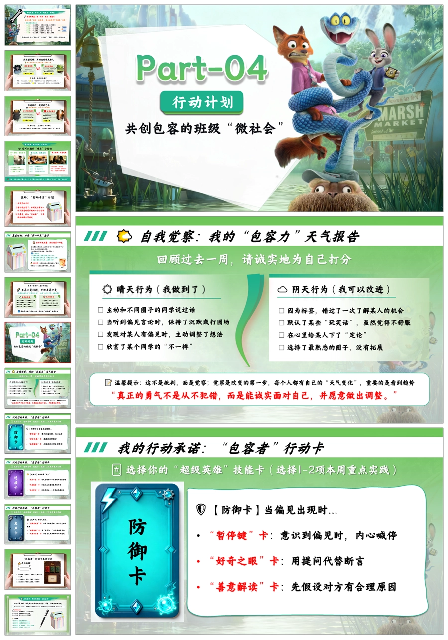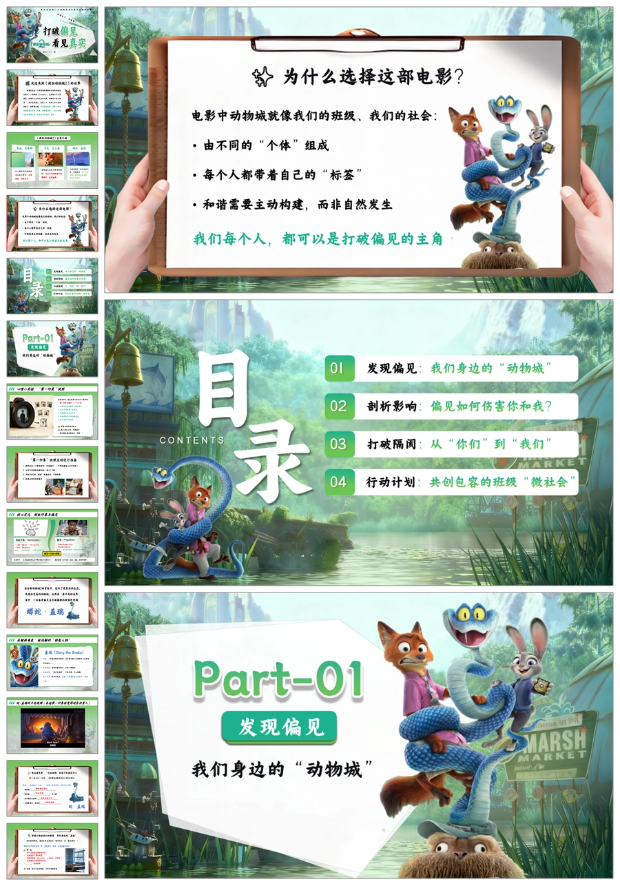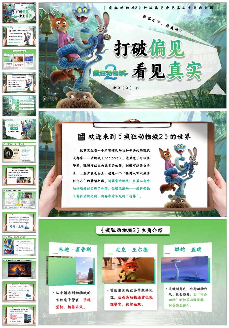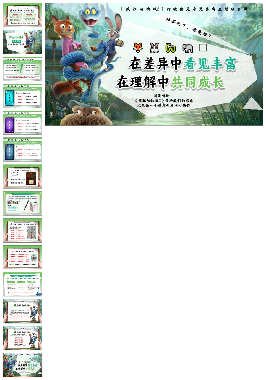 【5664】《疯狂动物城2打破偏见,看见真实》共建包容班级主题班会ppt课件+教案+发言稿+视频