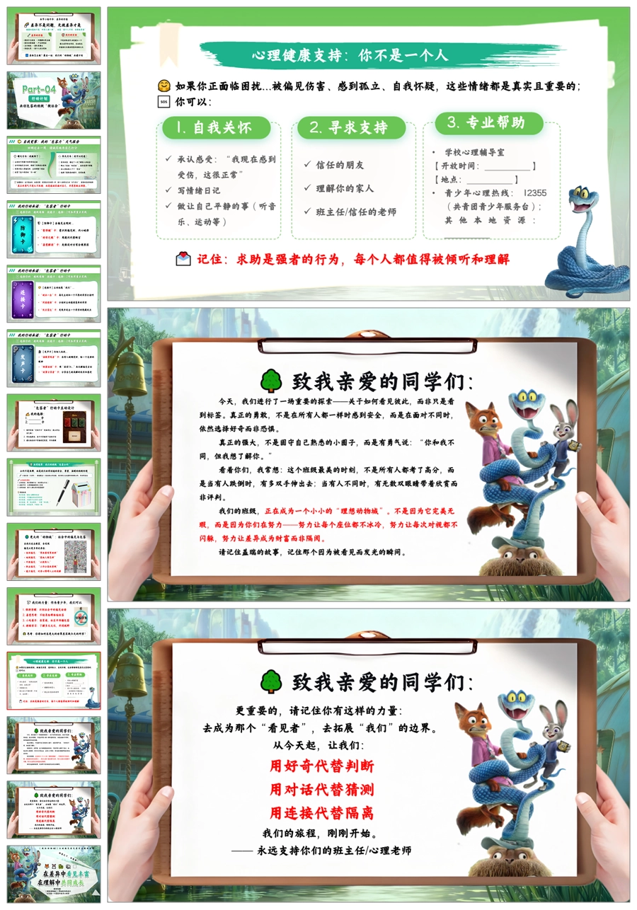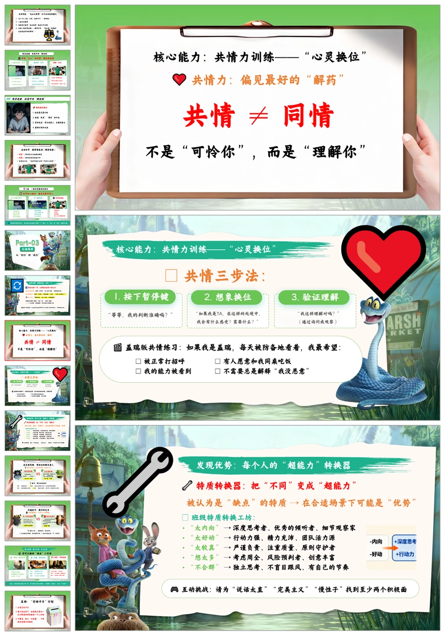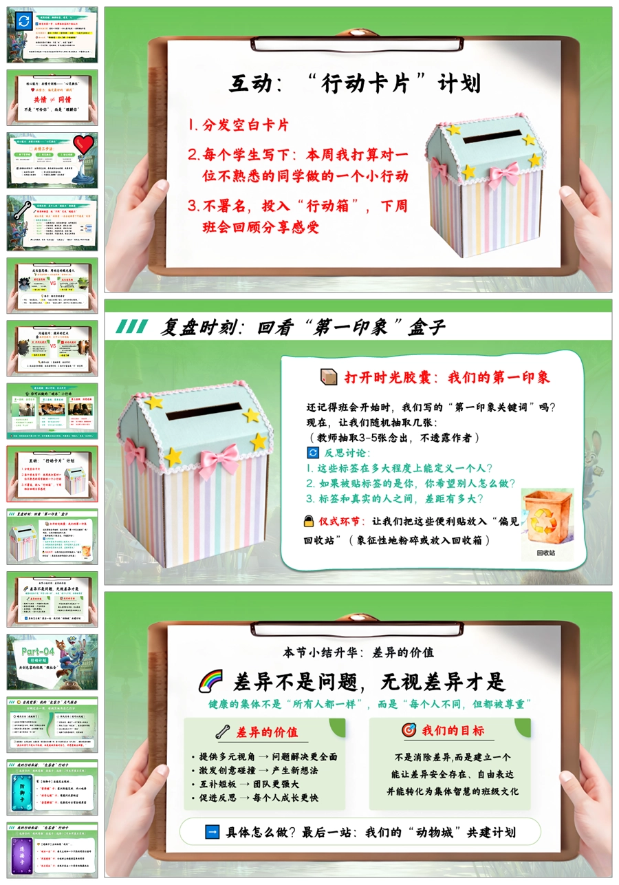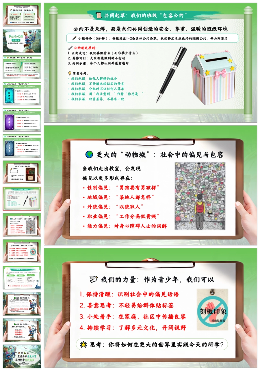 【5664】《疯狂动物城2打破偏见,看见真实》共建包容班级主题班会ppt课件+教案+发言稿+视频