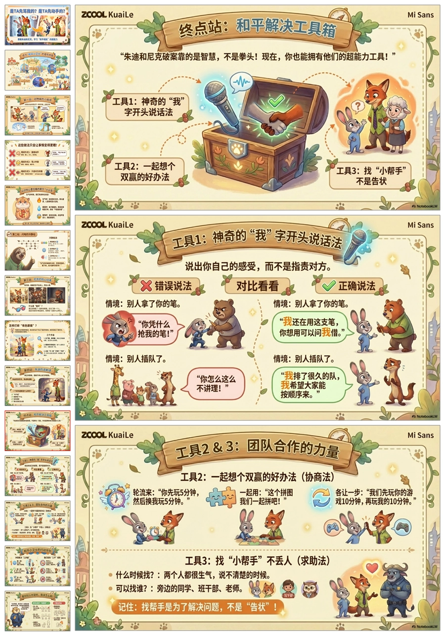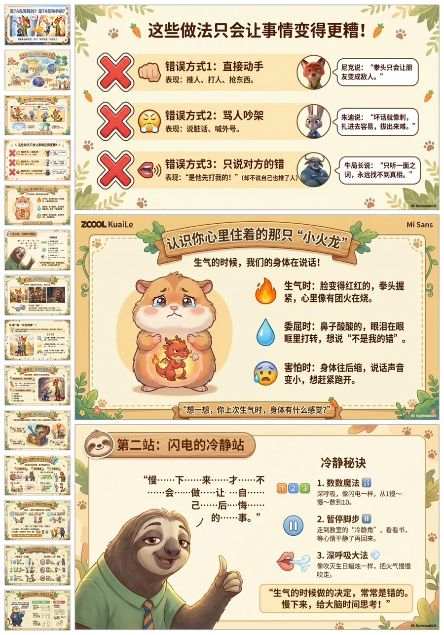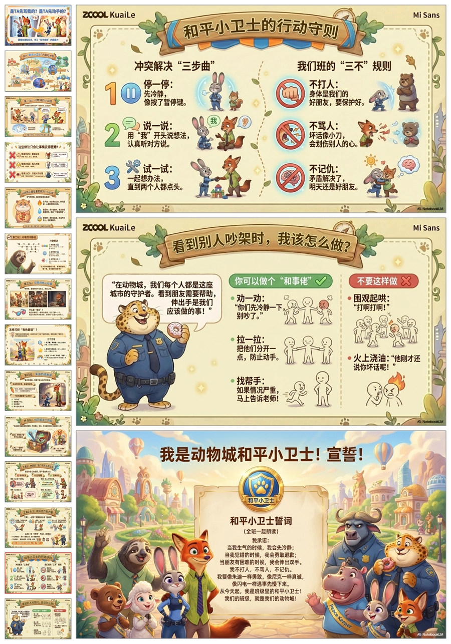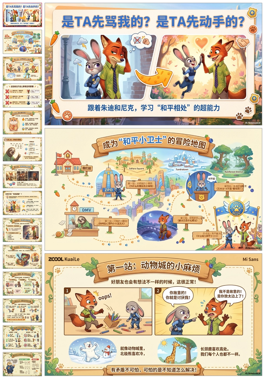 【5665】《疯狂动物城之是 TA 先骂我的 是 TA 先动手的》人际交往主题班会PPT课件+教案