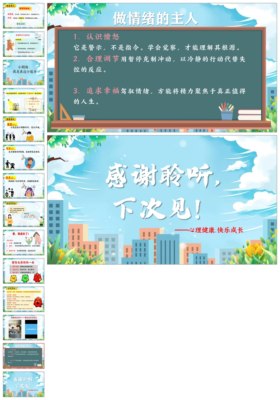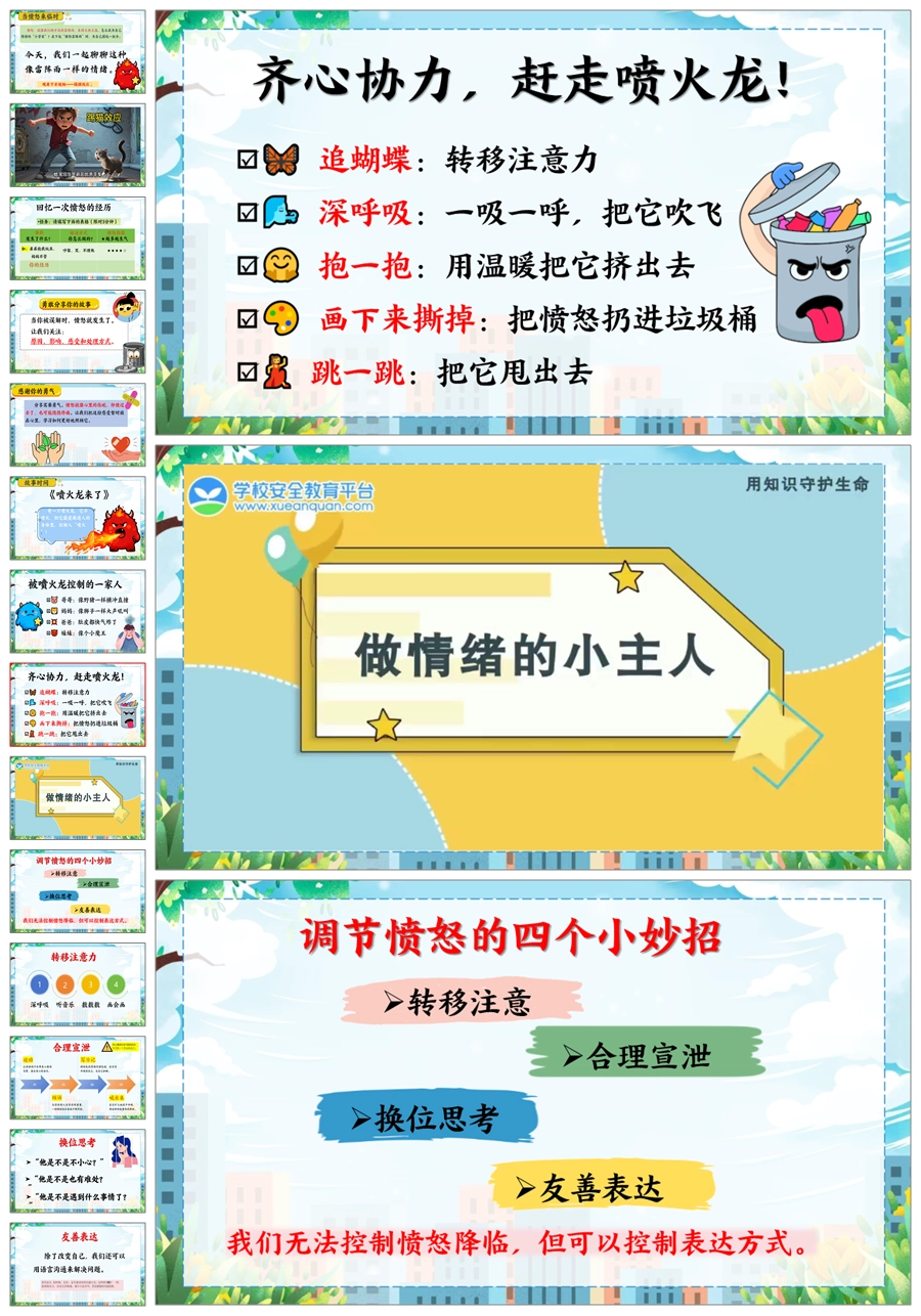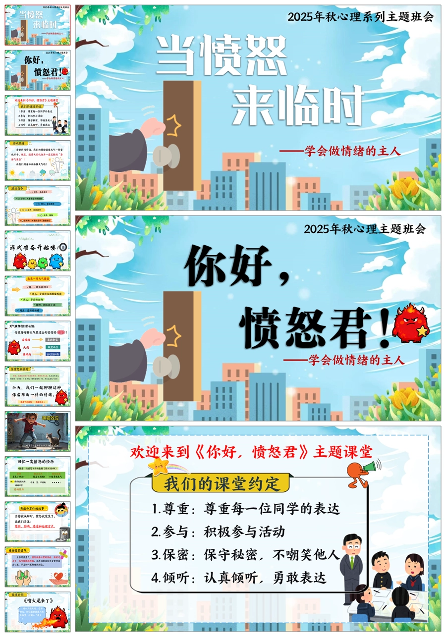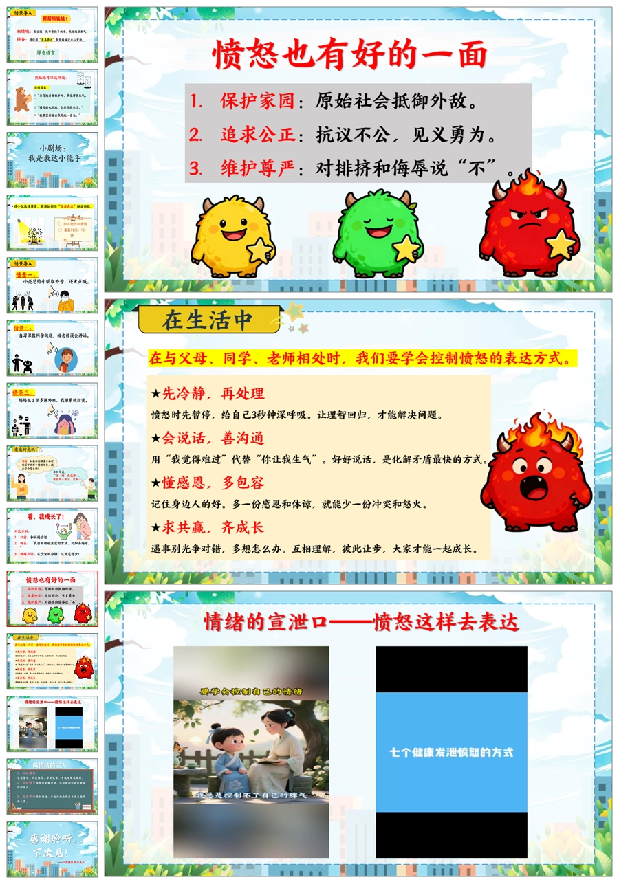 【5669】《你好,愤怒君》情绪管理心理健康主题班会PPT课件+教案+发言稿
