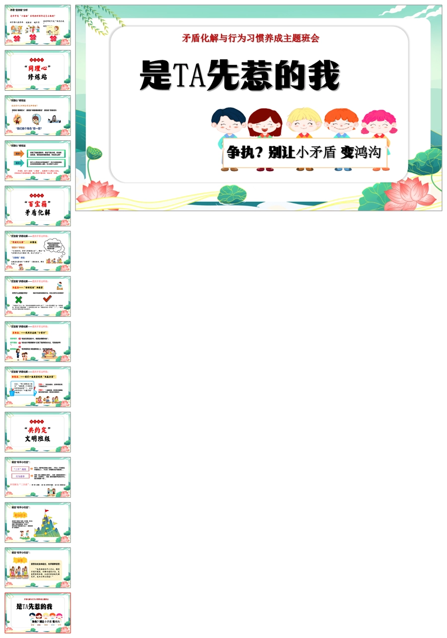 【5678】【通用】【交友教育】矛盾化解与行为习惯养成主题班会——是TA先惹的我ppt课件+教案