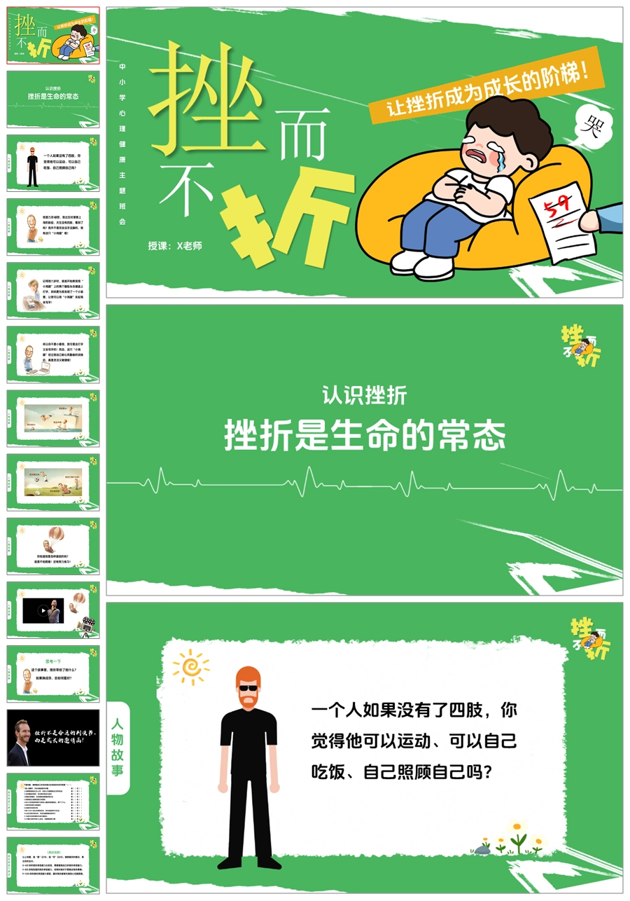【5680】【通用】【心理健康】初高中主题班会《挫而不折,让挫折成为成长的阶梯》ppt课件+教案