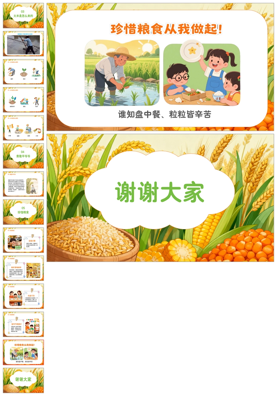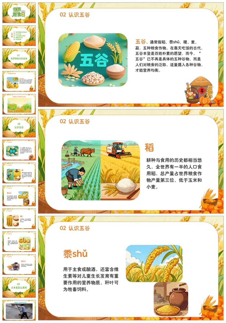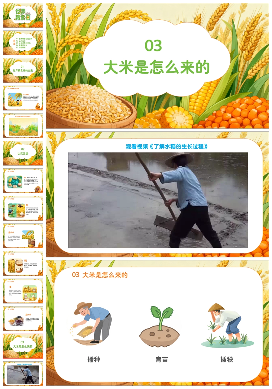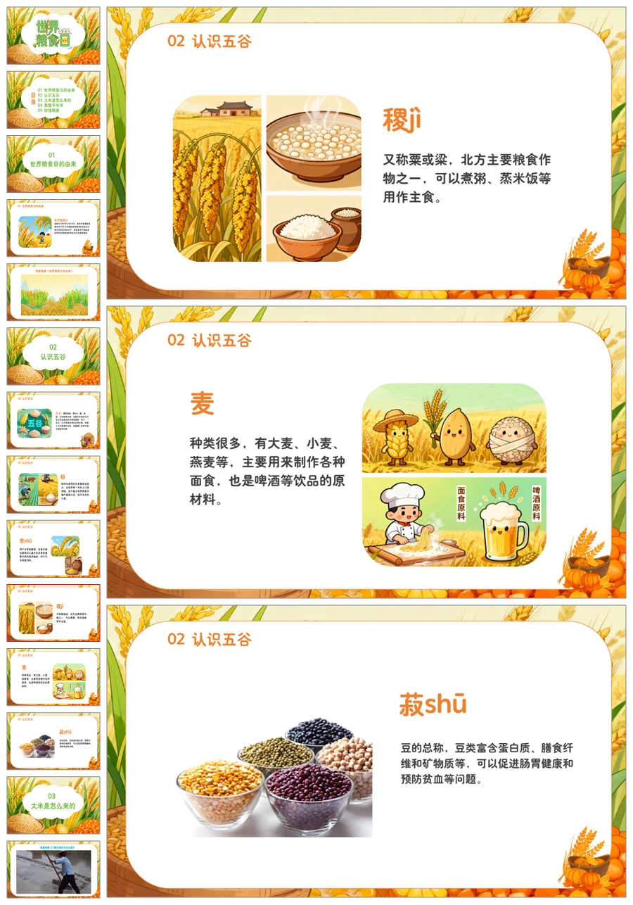 【5685】【通用】世界粮食日主题班会《认识五谷》ppt课件+教案