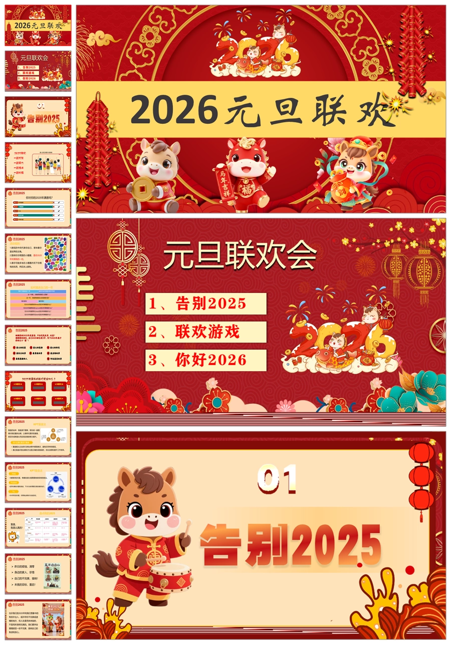 【5688】【元旦联欢会】马年元旦联欢主题班会ppt课件